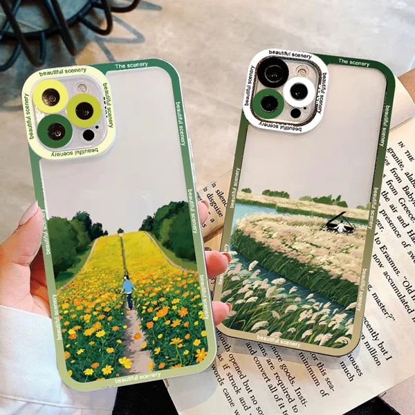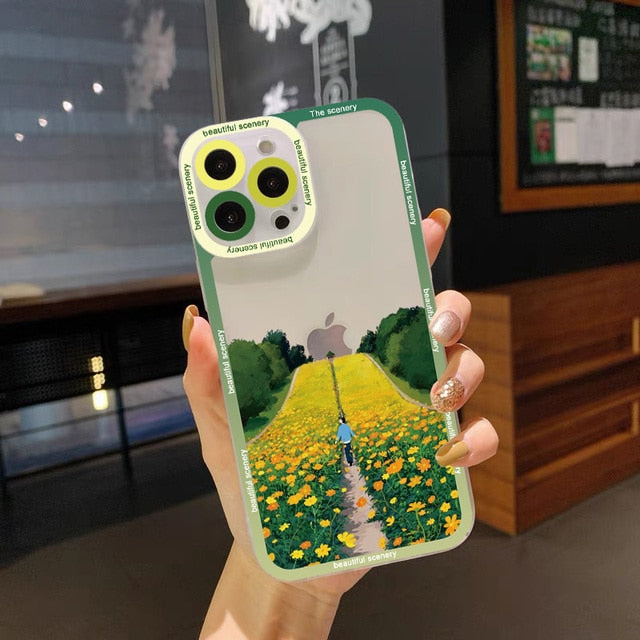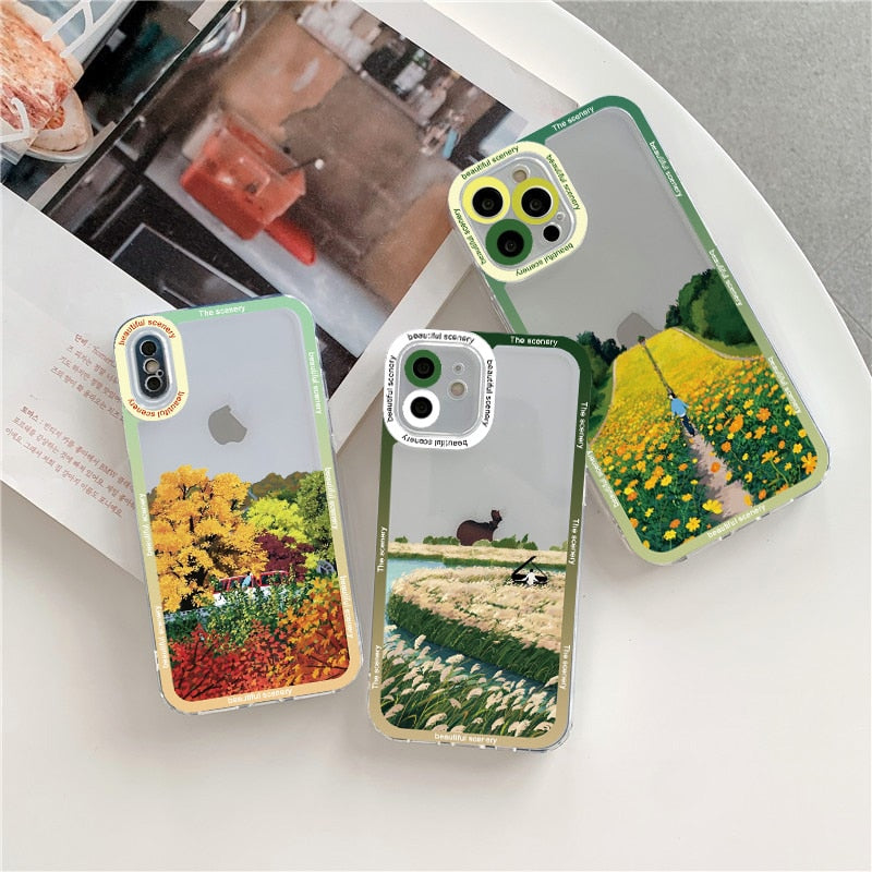 Cartoon Idyllic Scenery Shockproof Soft Cases For iPhone 14 13 12 series