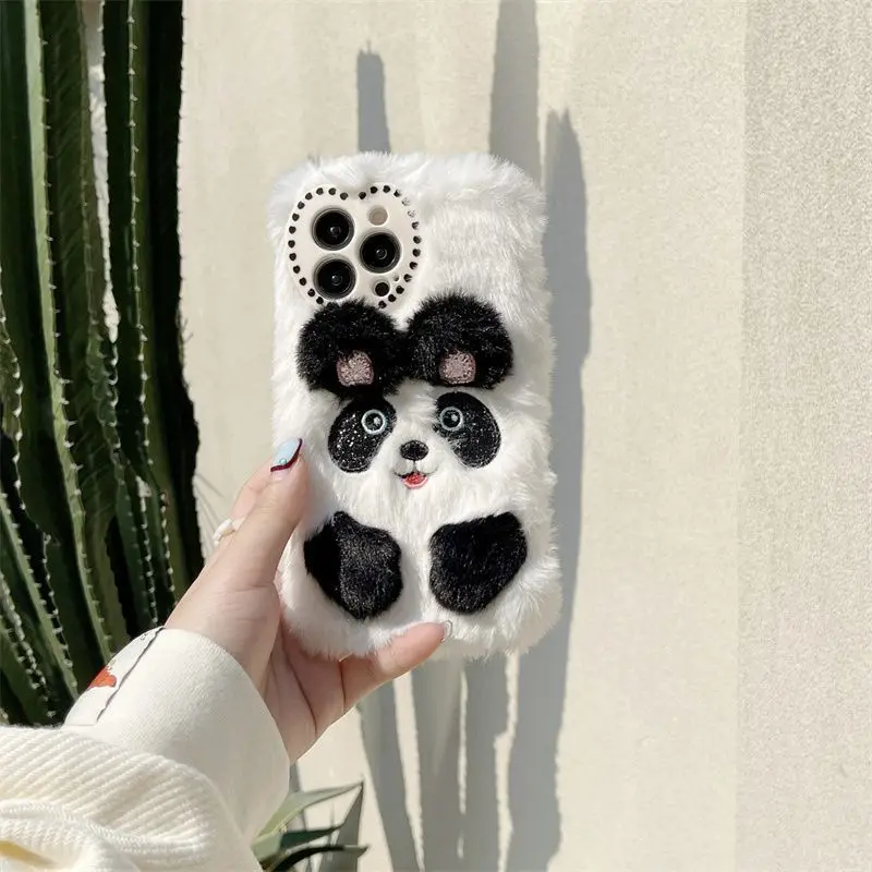 Cartoon Pluffy 3D Panda Case for iPhone 14 13 12 series