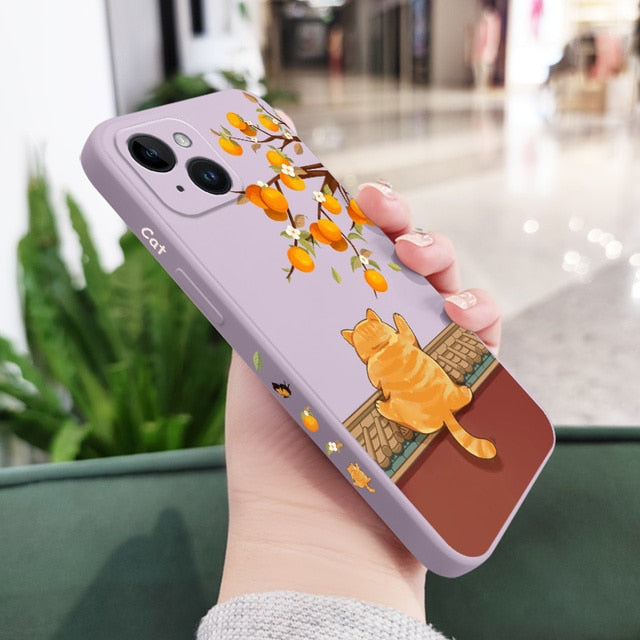 Climbing Cats Cute Funny Liquid Silicone Soft Case For iPhone 14 13 12 series