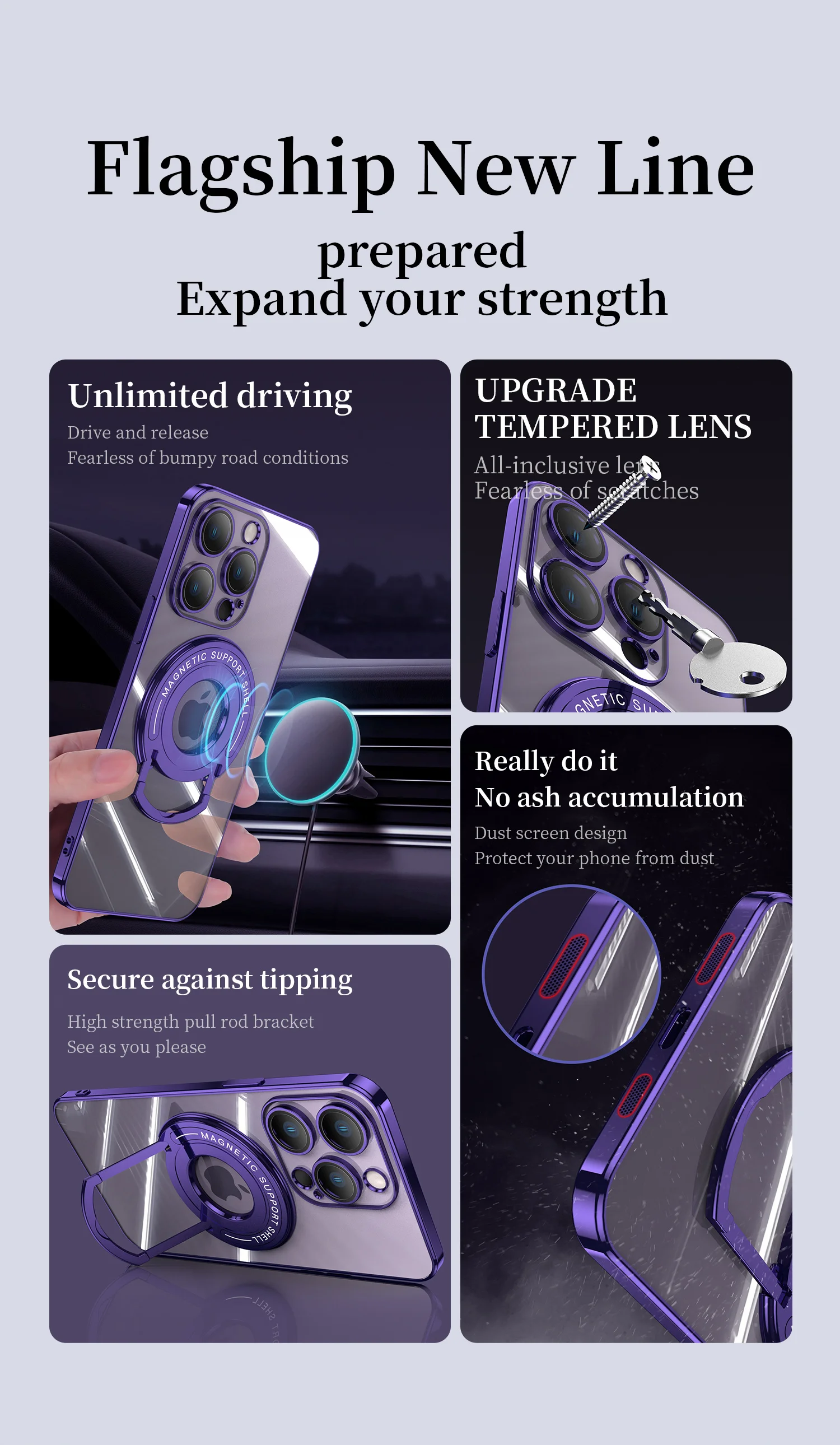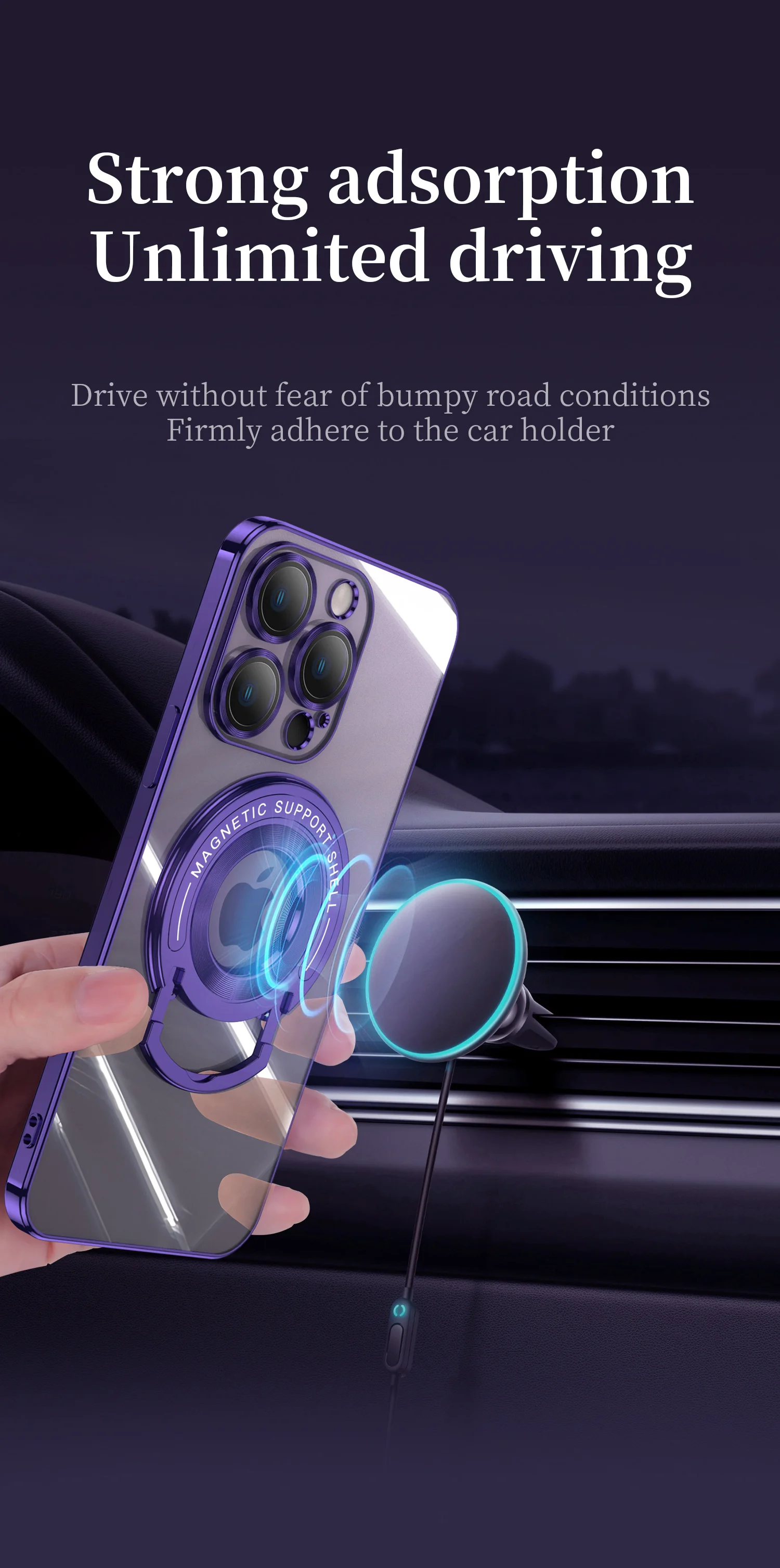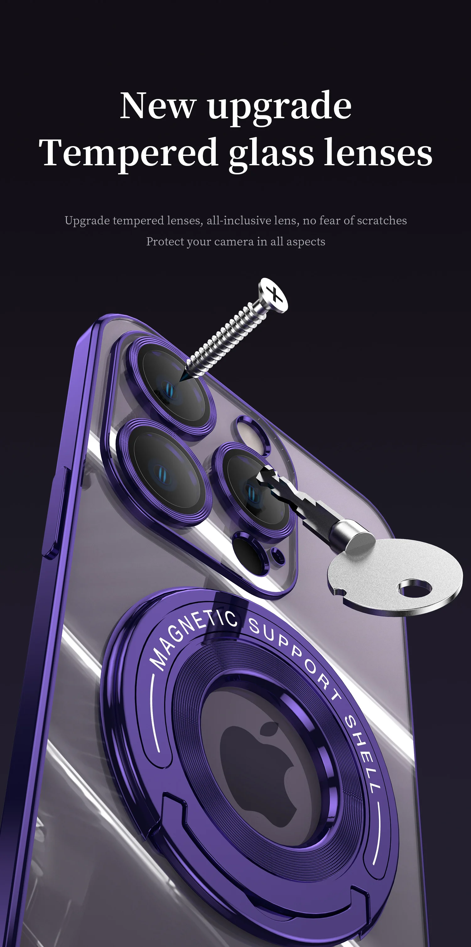 Colorful Electroplated Magnetic Ring Bracket Transparent Shockproof Case For iPhone 14 13 12 series