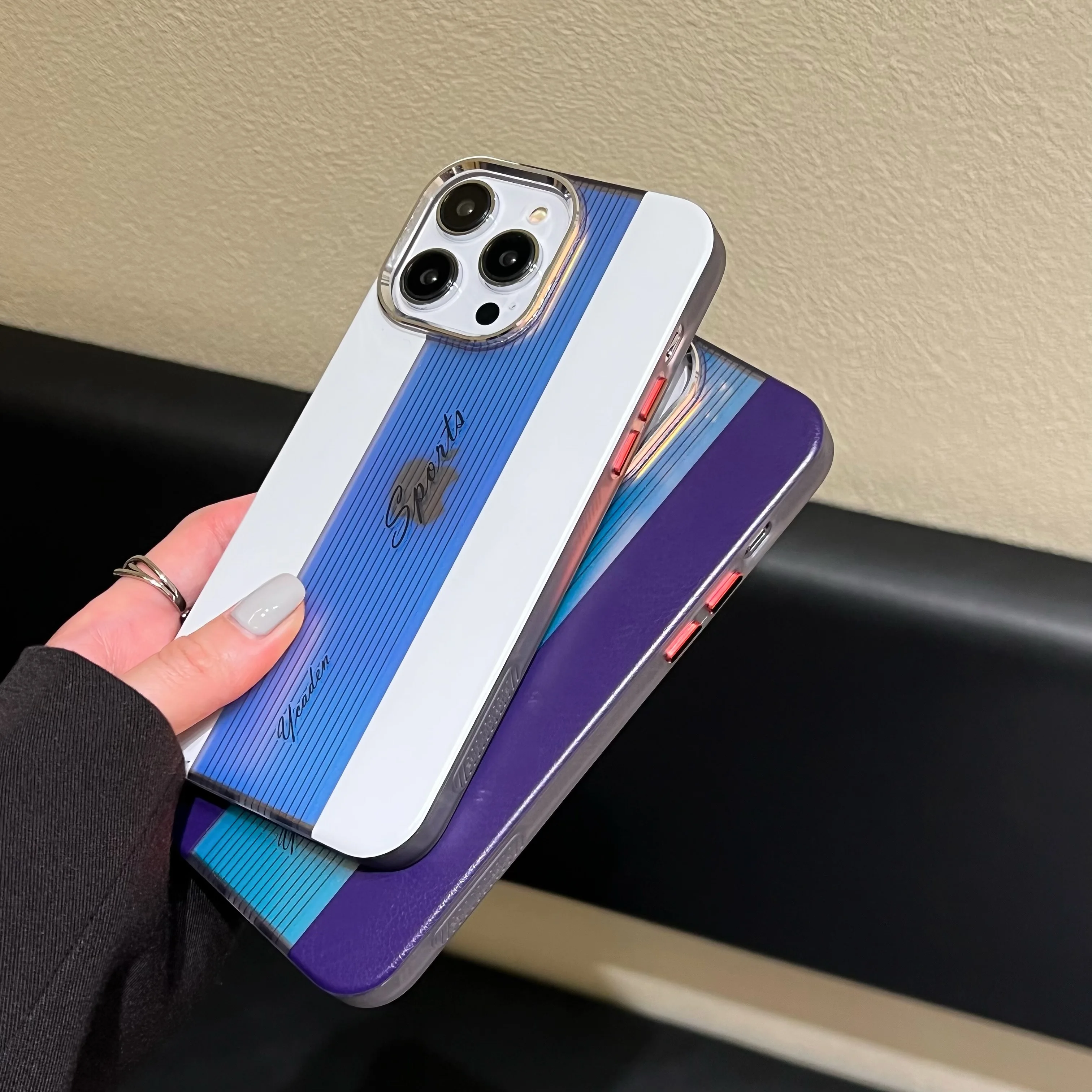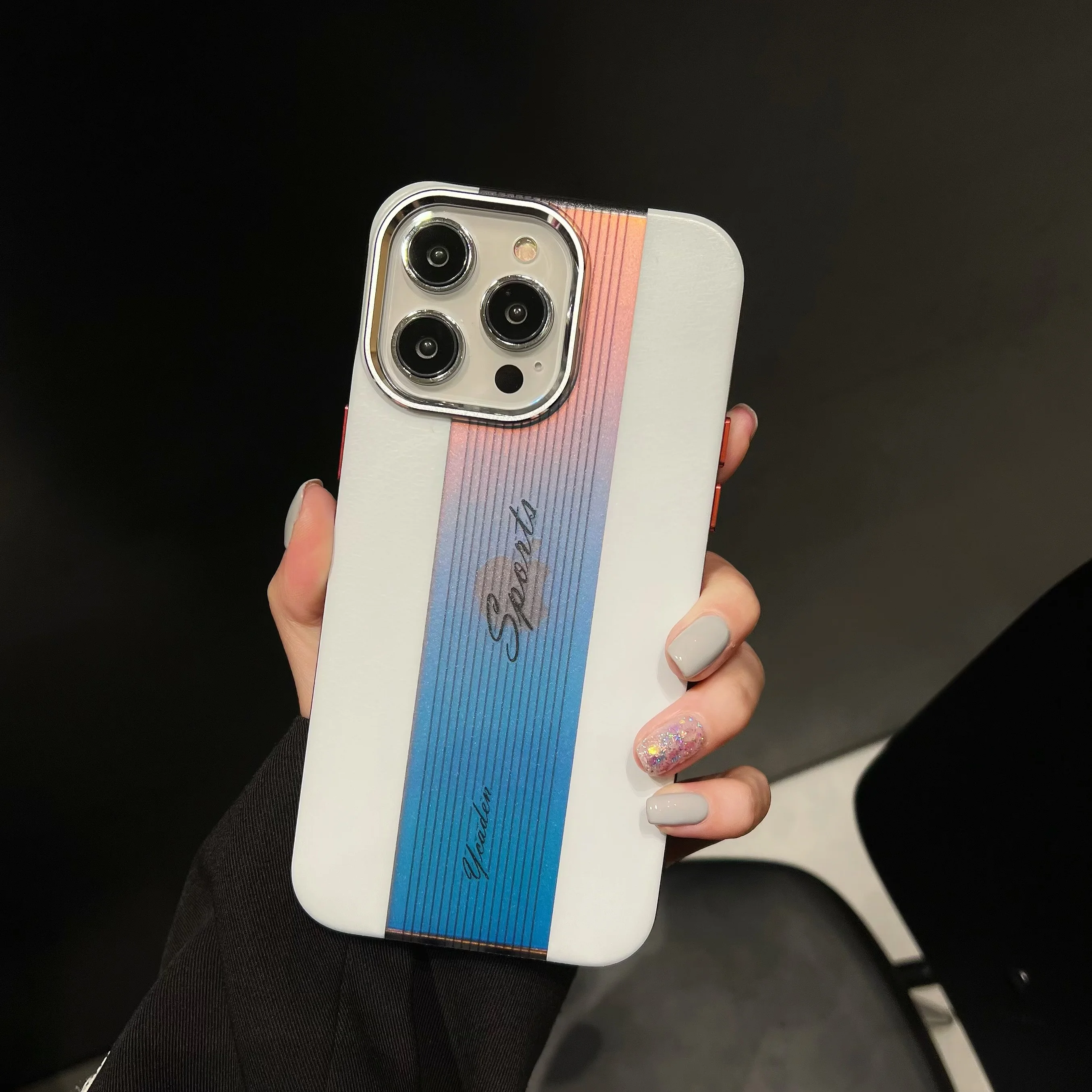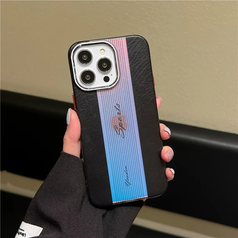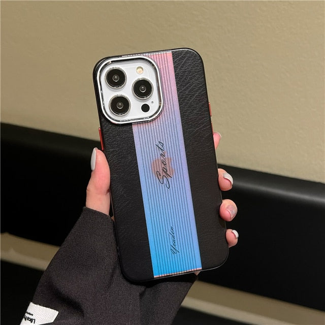 Colorful Laser Leather Texture Metal Lens Ring Matte Case For iPhone 14 13 12 series