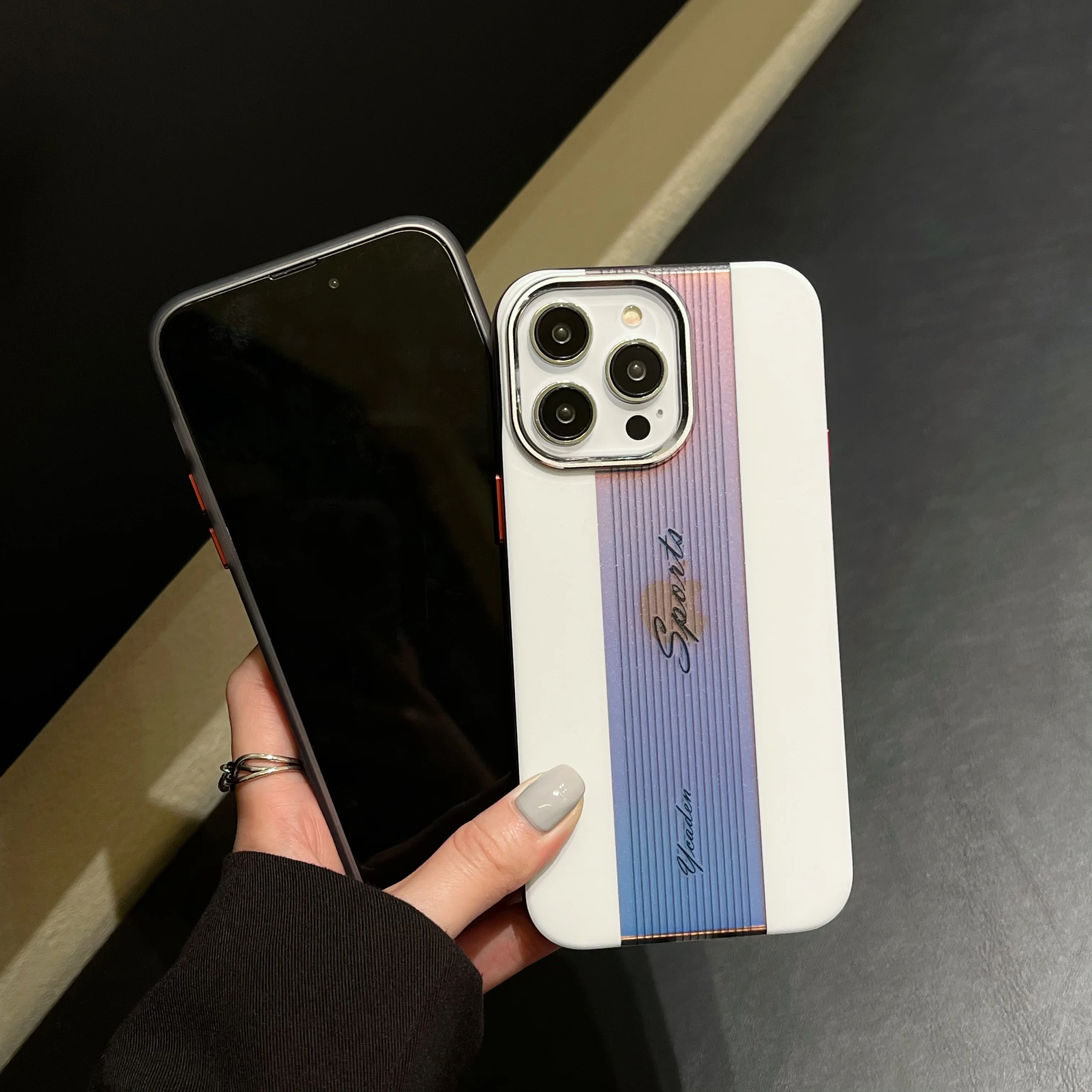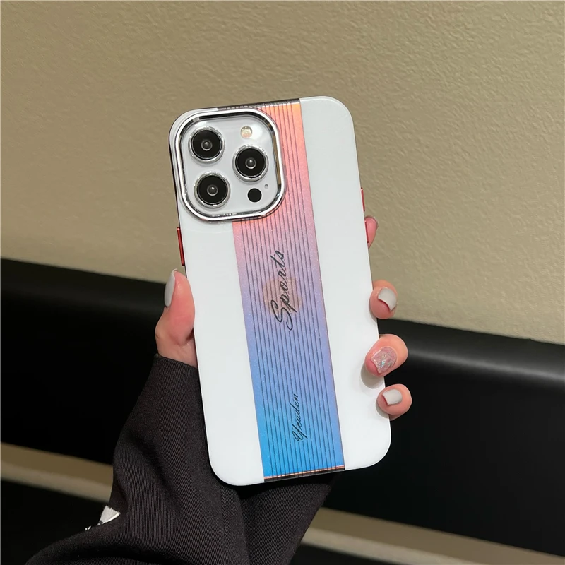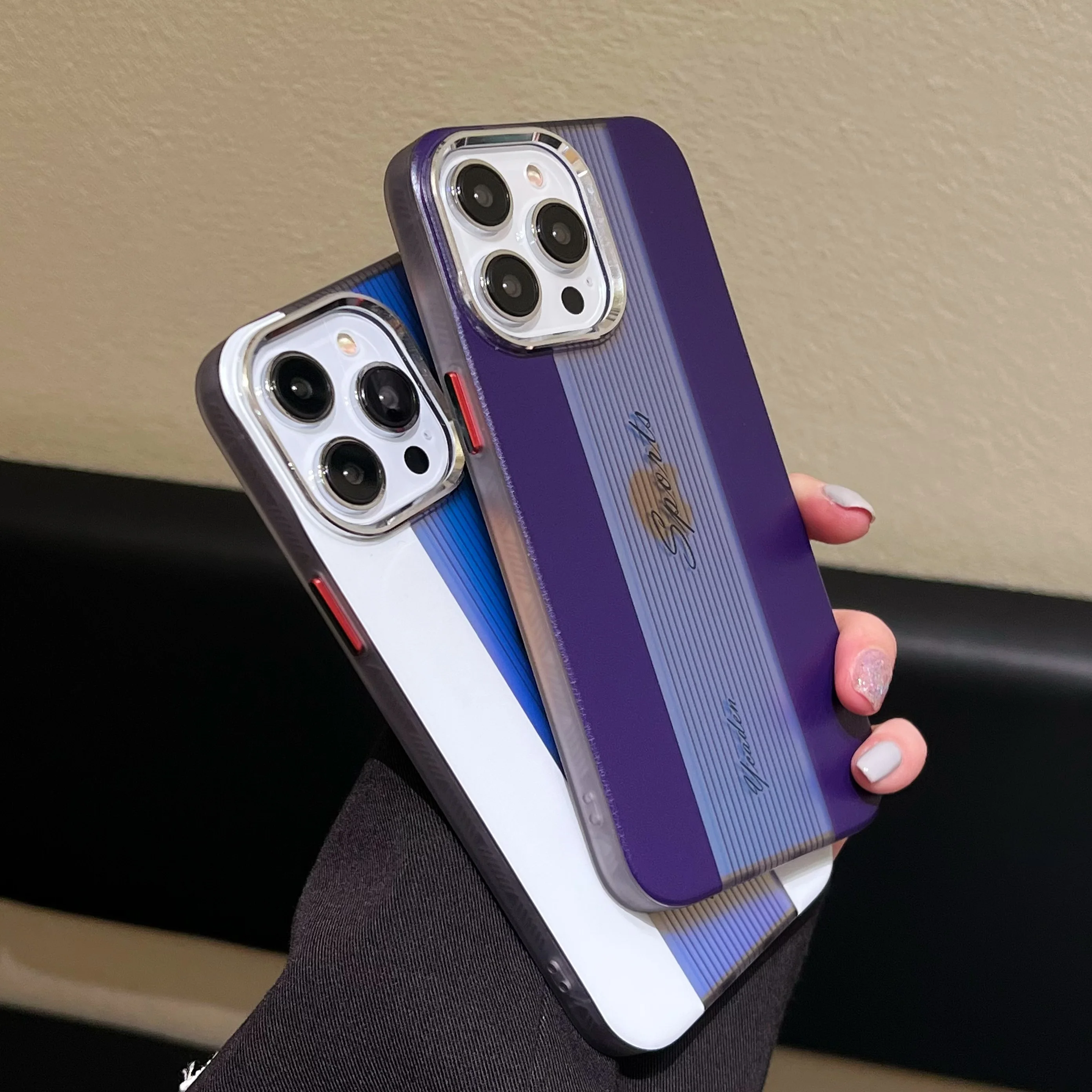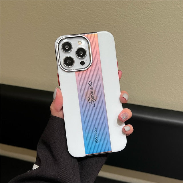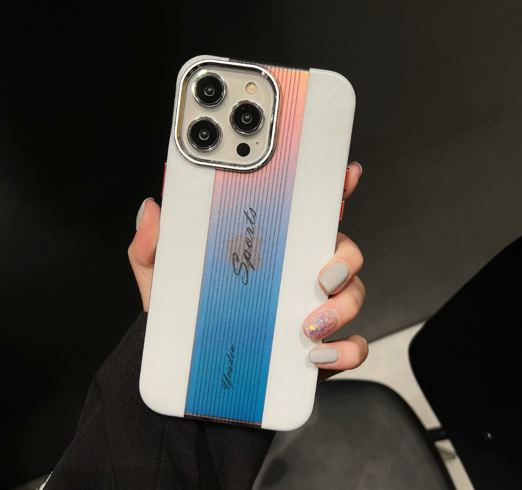 Colorful Laser Leather Texture Metal Lens Ring Matte Case For iPhone 14 13 12 series