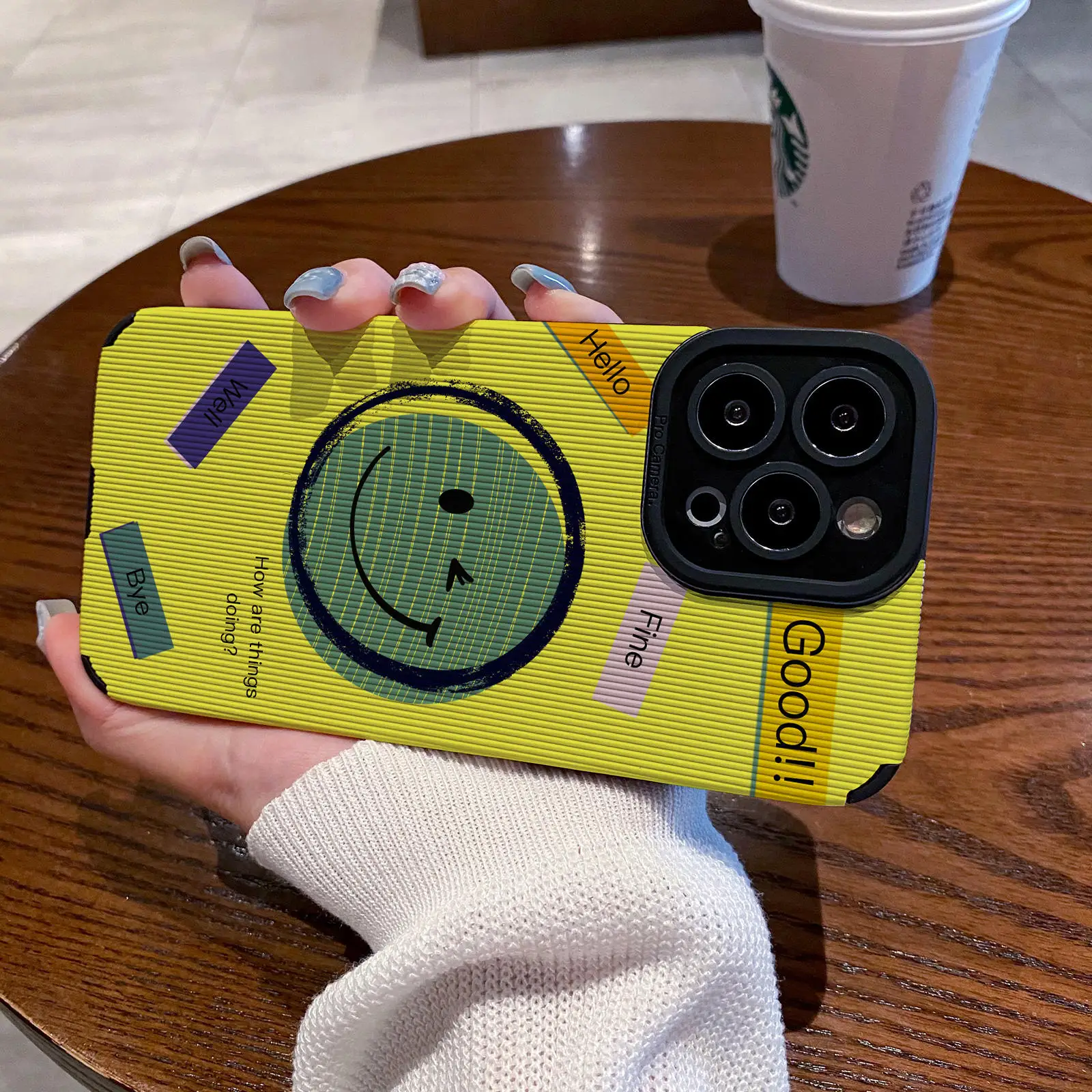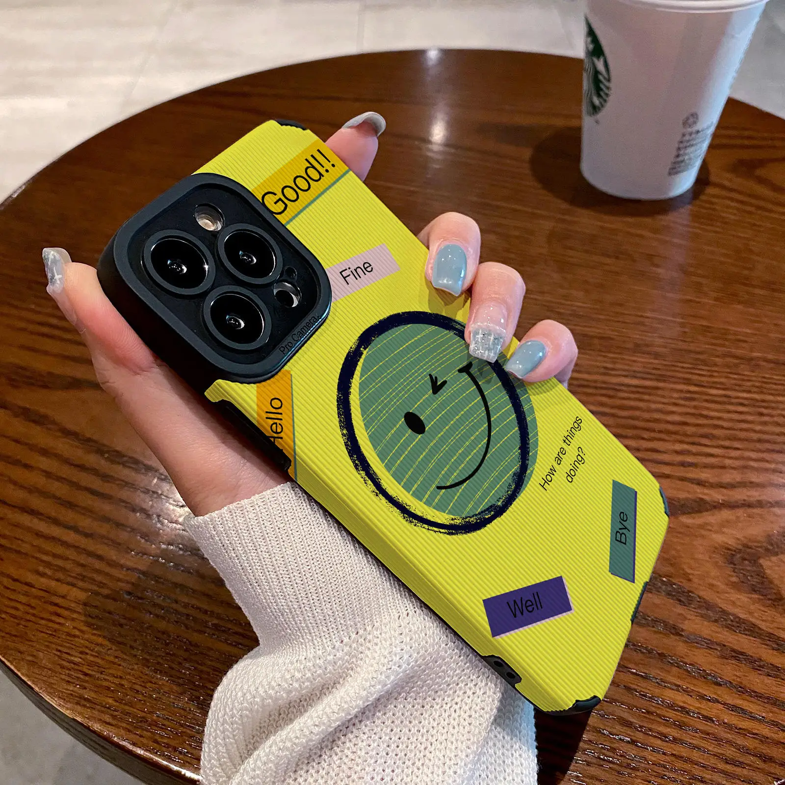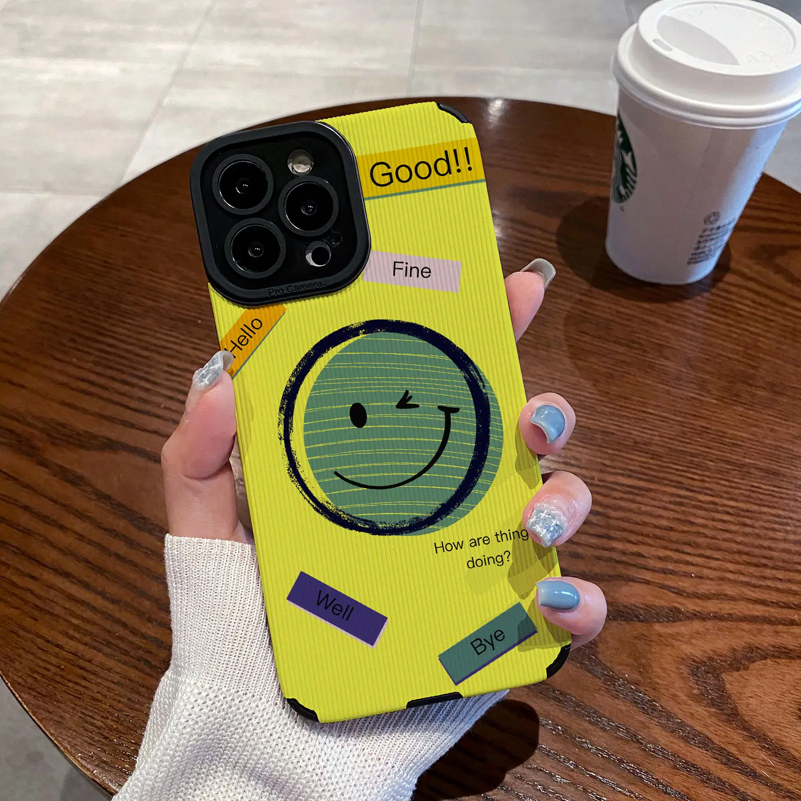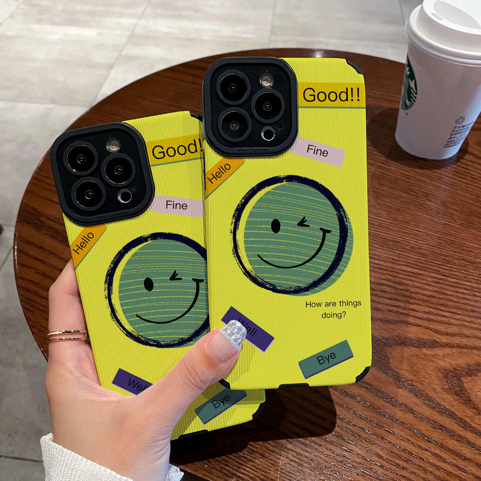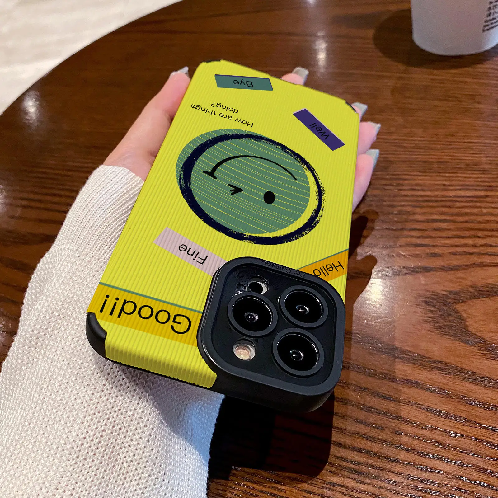 Cool Smiling Face Yellow Slogan Soft TPU Case For iPhone 14 13 12 series