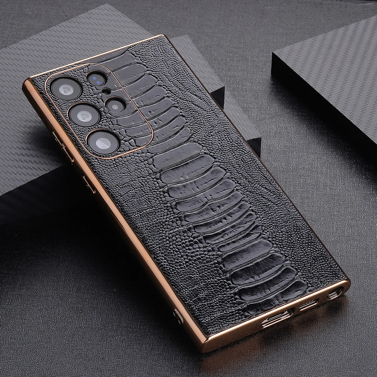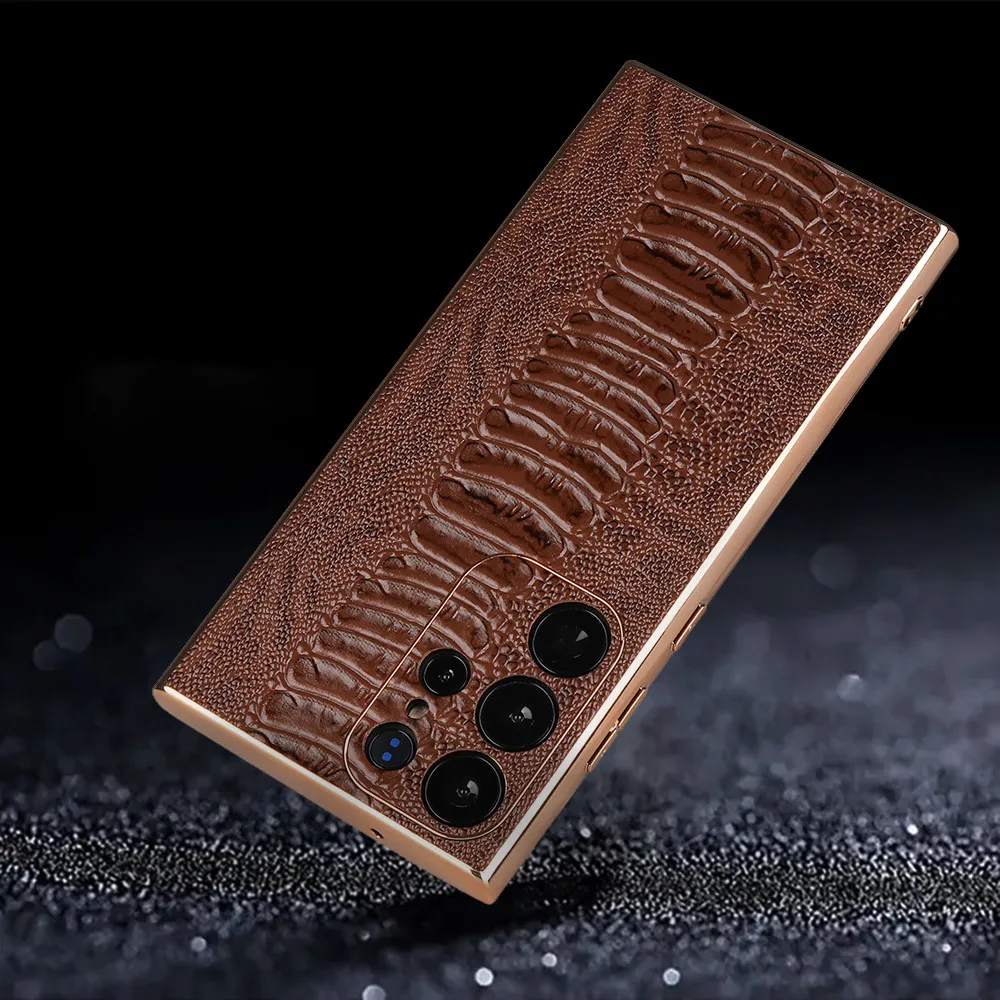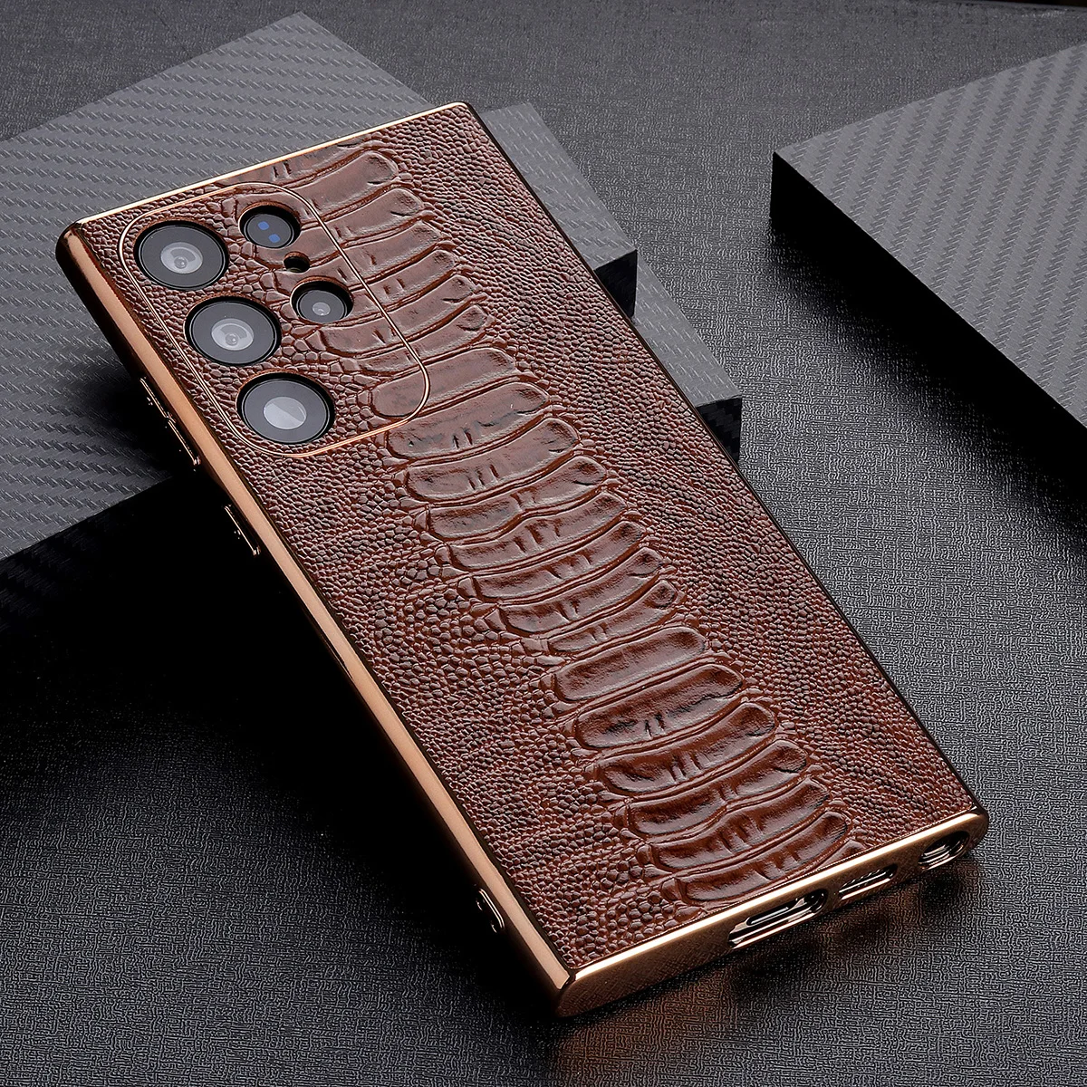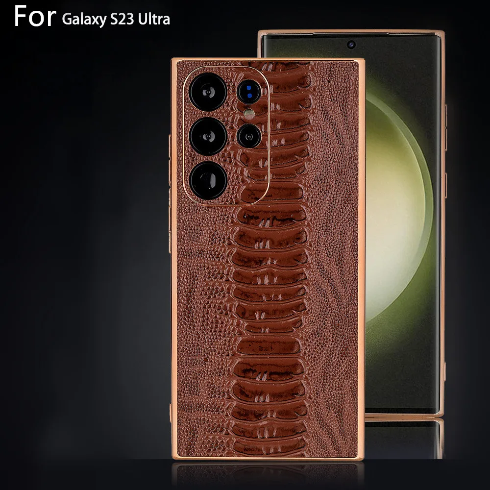 Cowhide Leather Glossy Frame Armor Case for Samsung Galaxy S23 S22 Ultra Plus