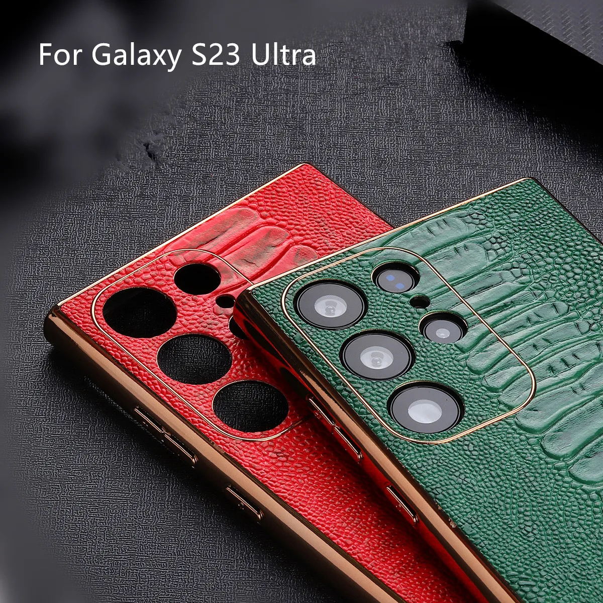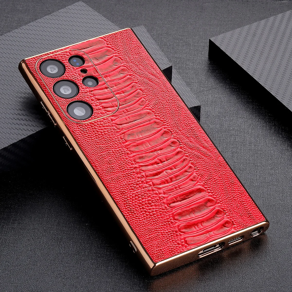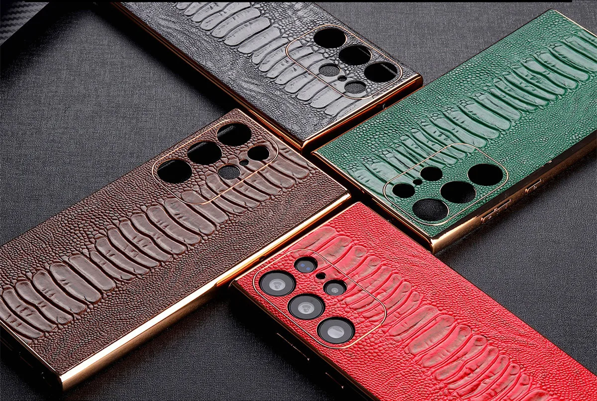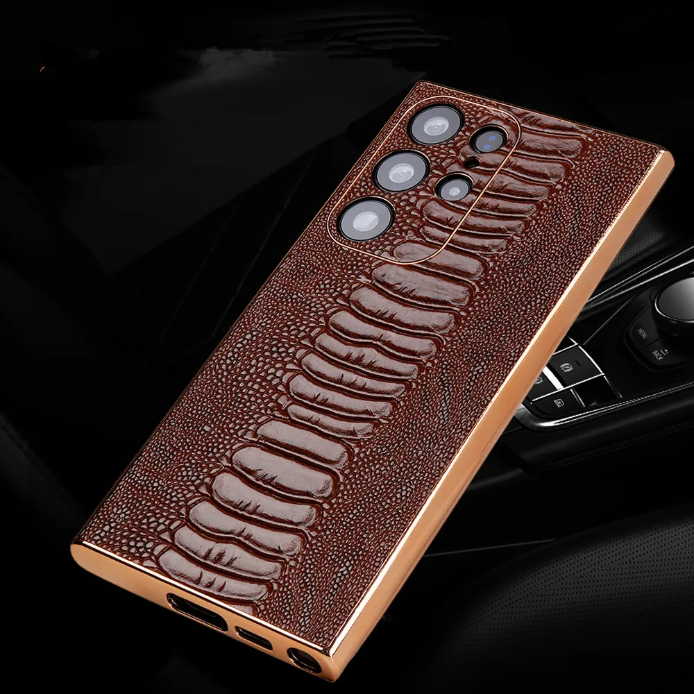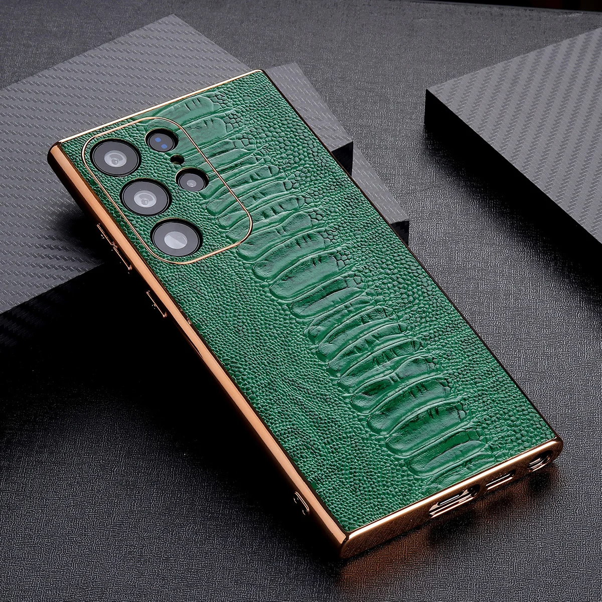 Cowhide Leather Glossy Frame Armor Case for Samsung Galaxy S23 S22 Ultra Plus