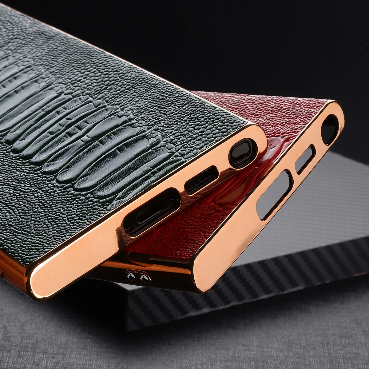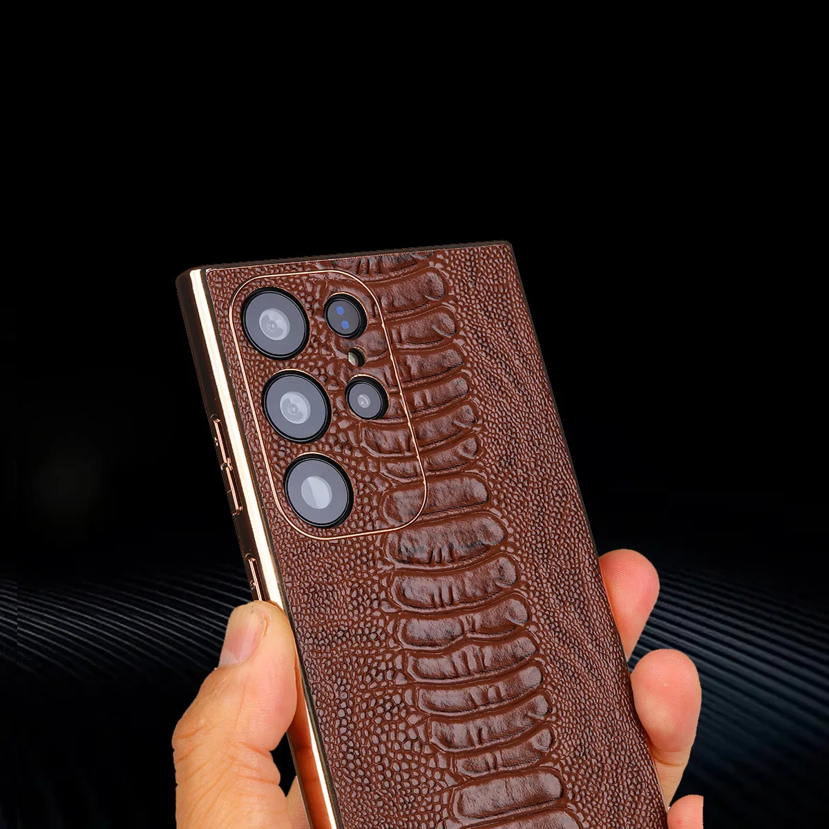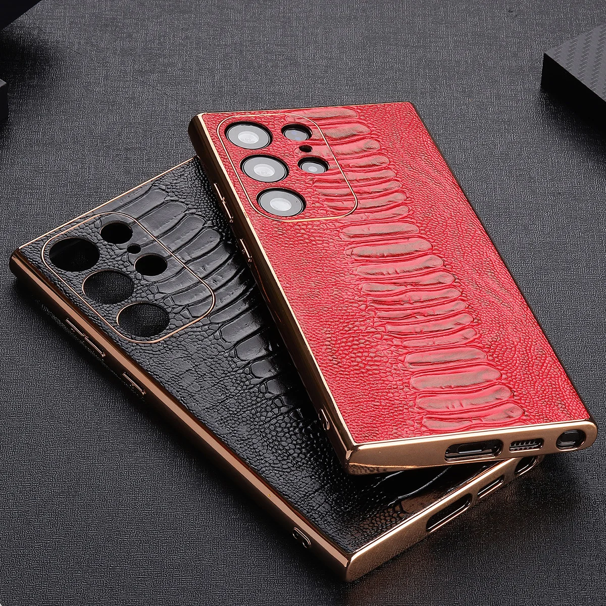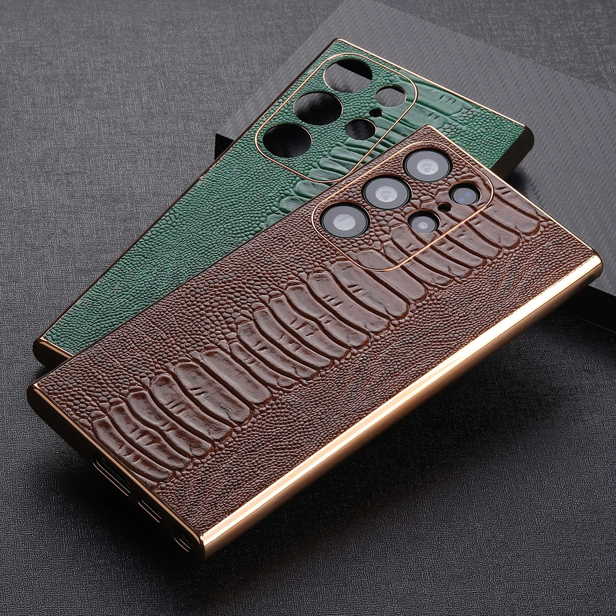 Cowhide Leather Glossy Frame Armor Case for Samsung Galaxy S23 S22 Ultra Plus