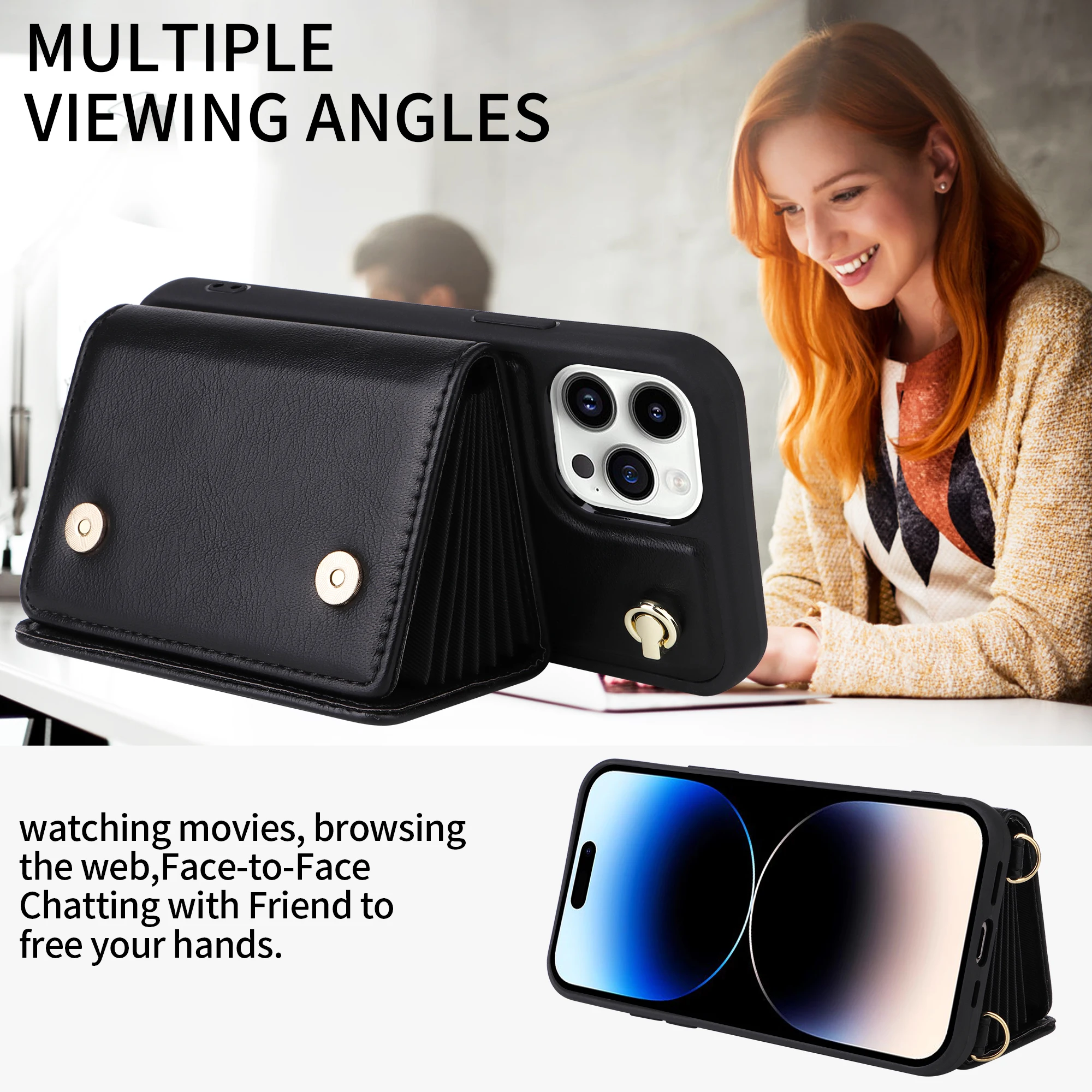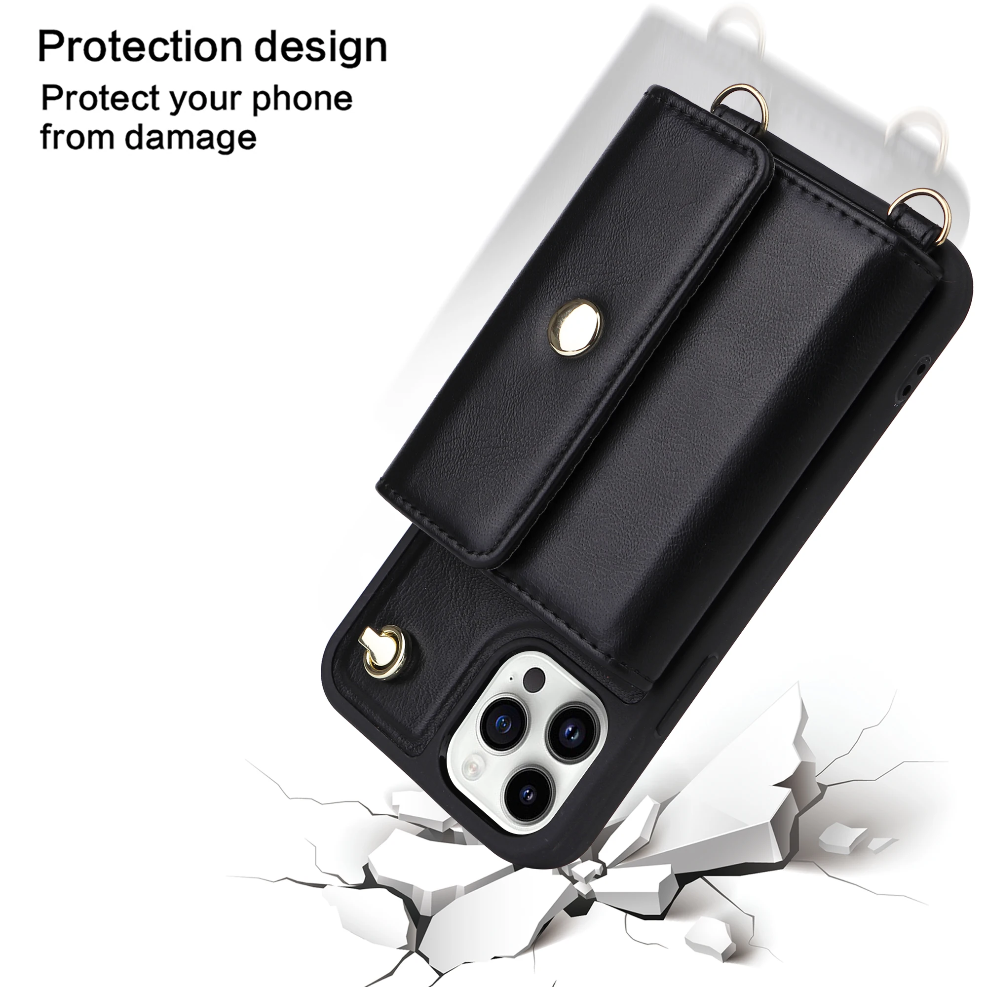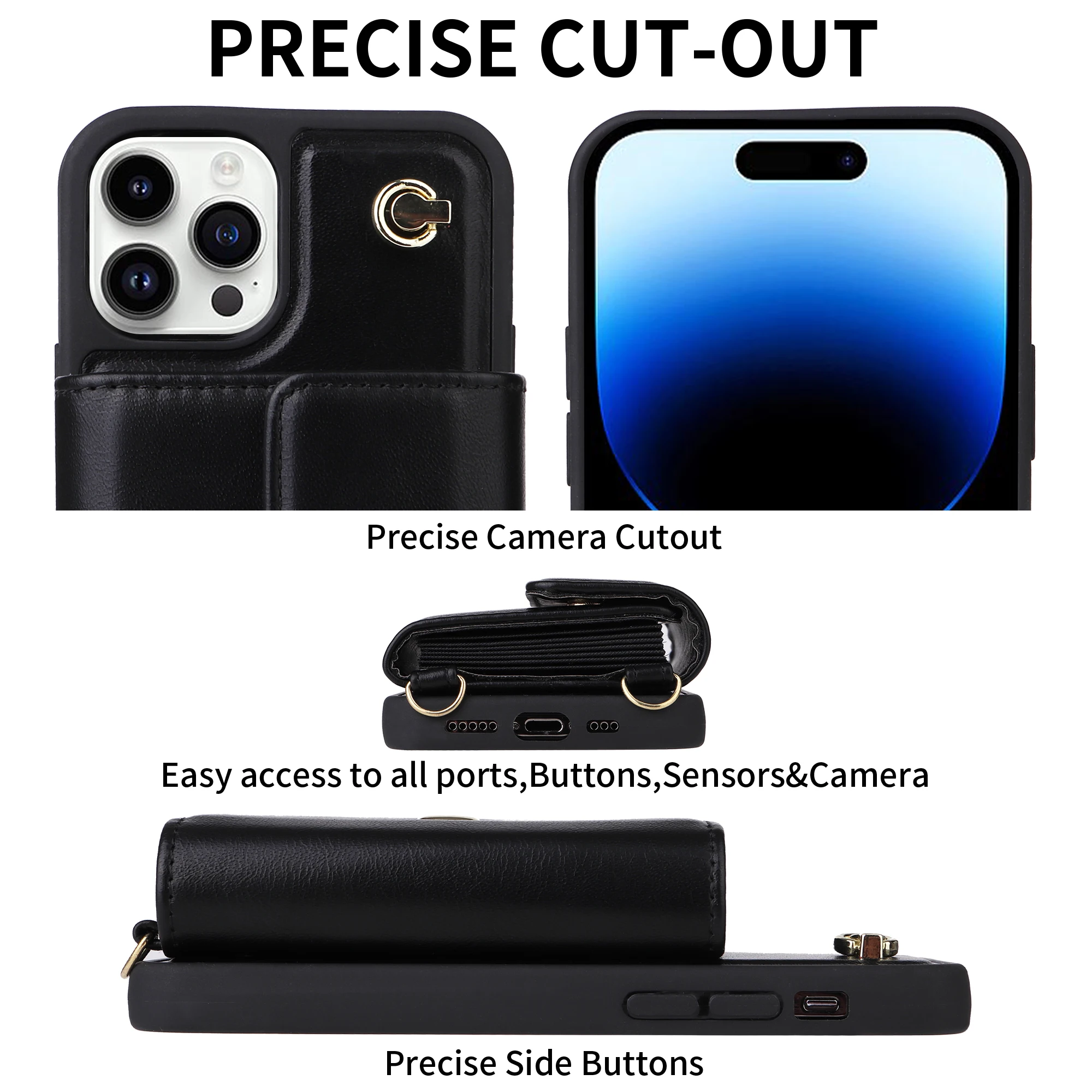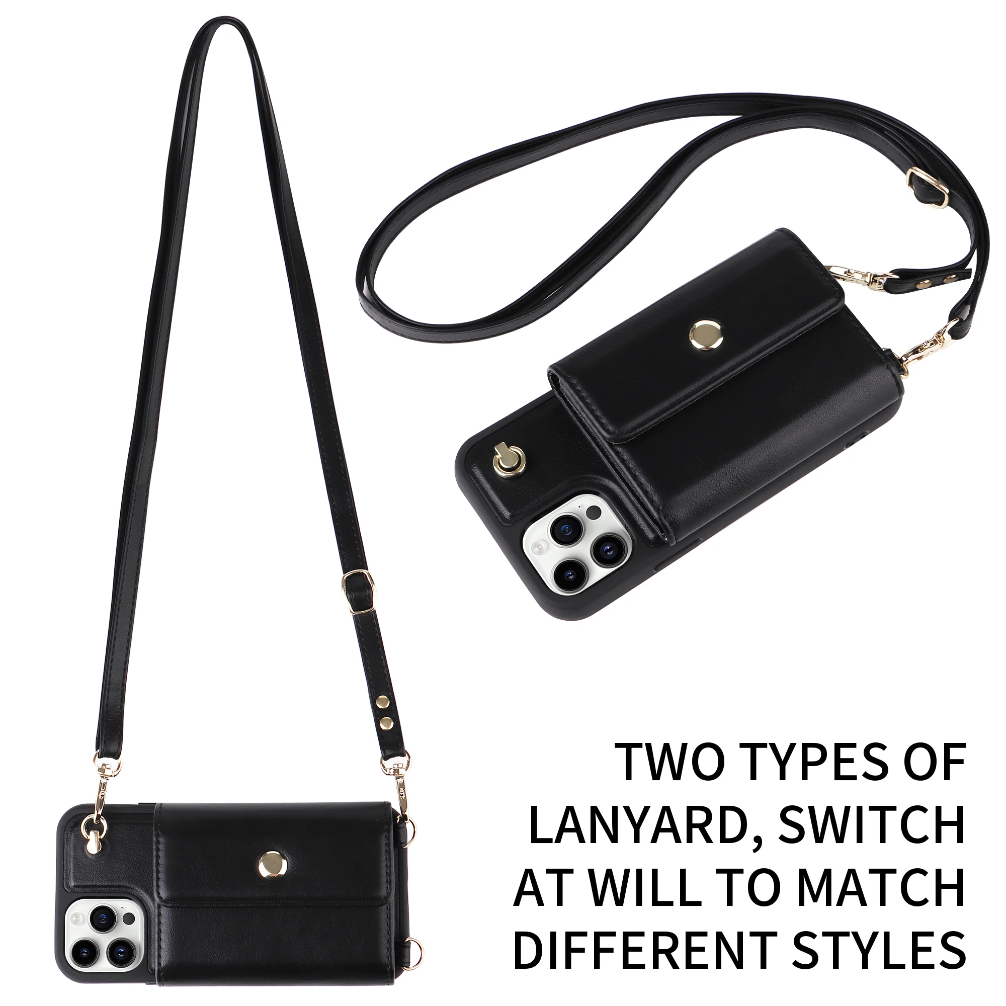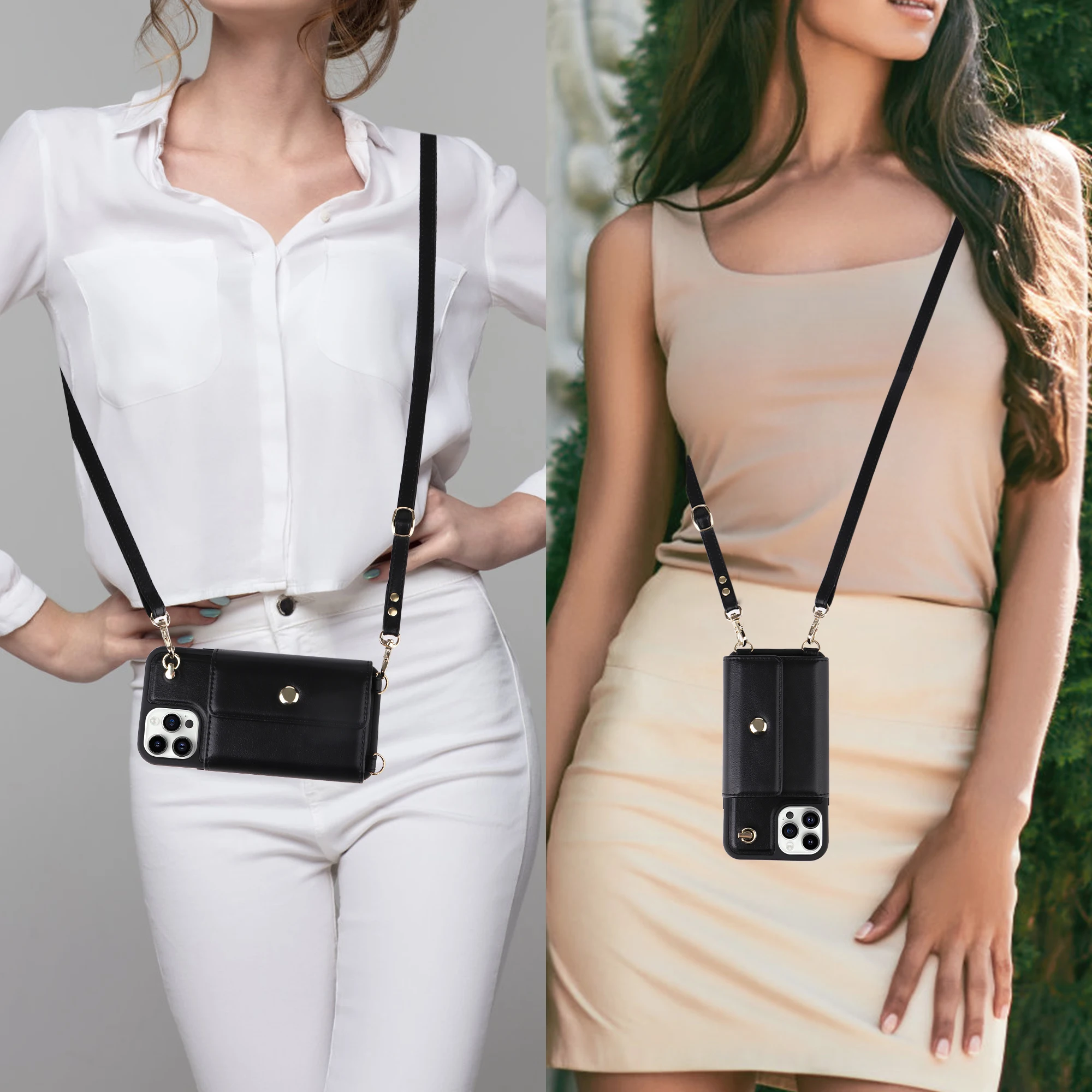 Crossbody Cards Slot Wallet Leather Case Lanyard Long Strap Holder for iPhone 14 13 12 series