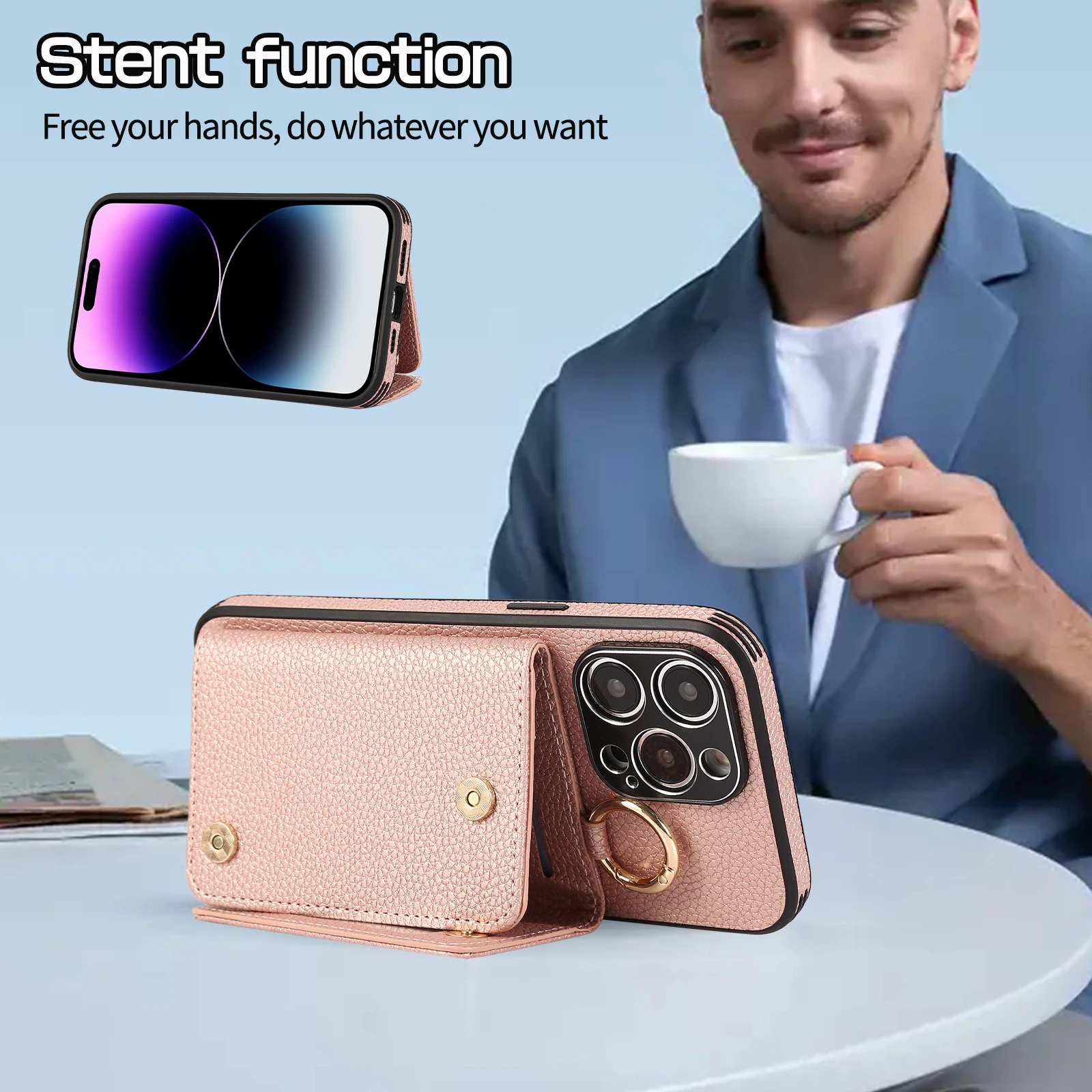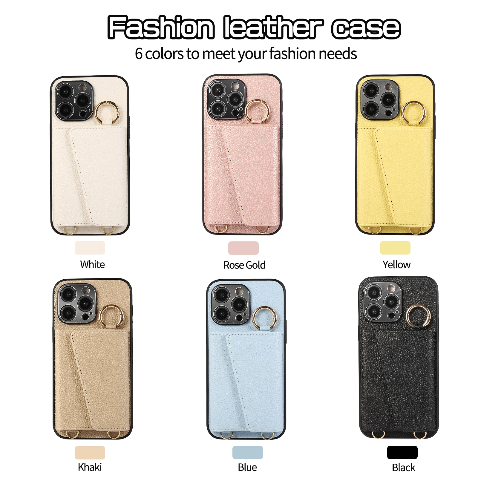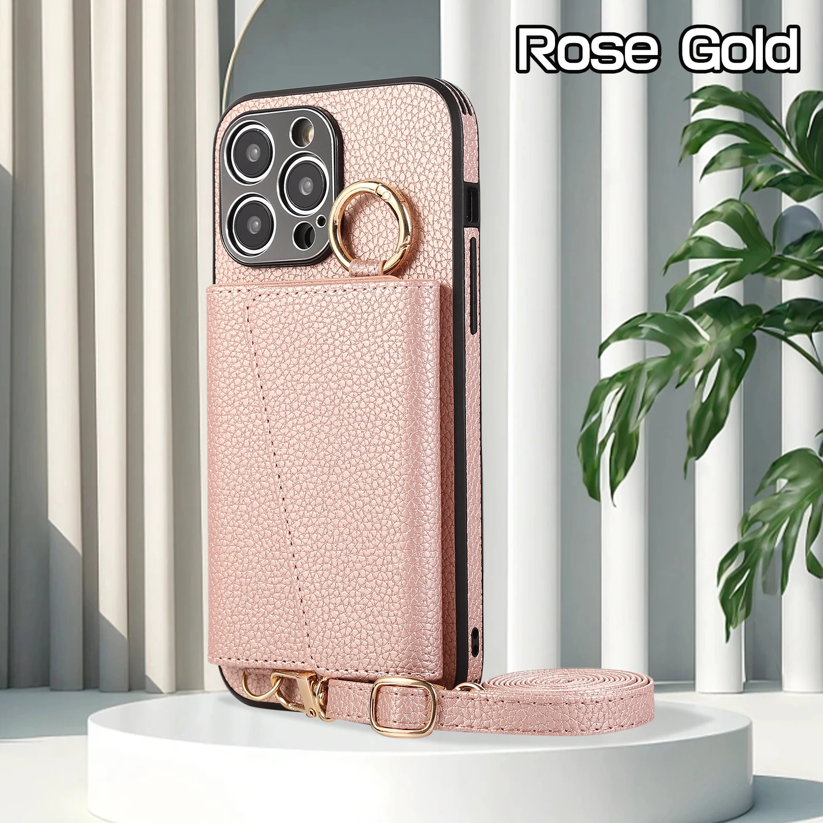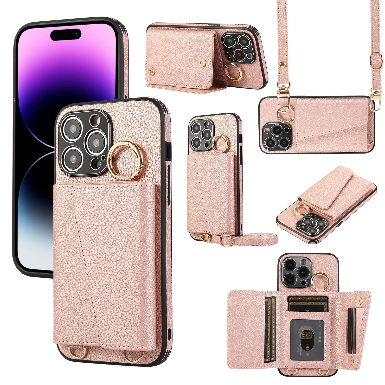 Crossbody Leather Wallet Card Slots Lanyard Strap Mirror Ring Holder Case for iPhone 14 13 12 series