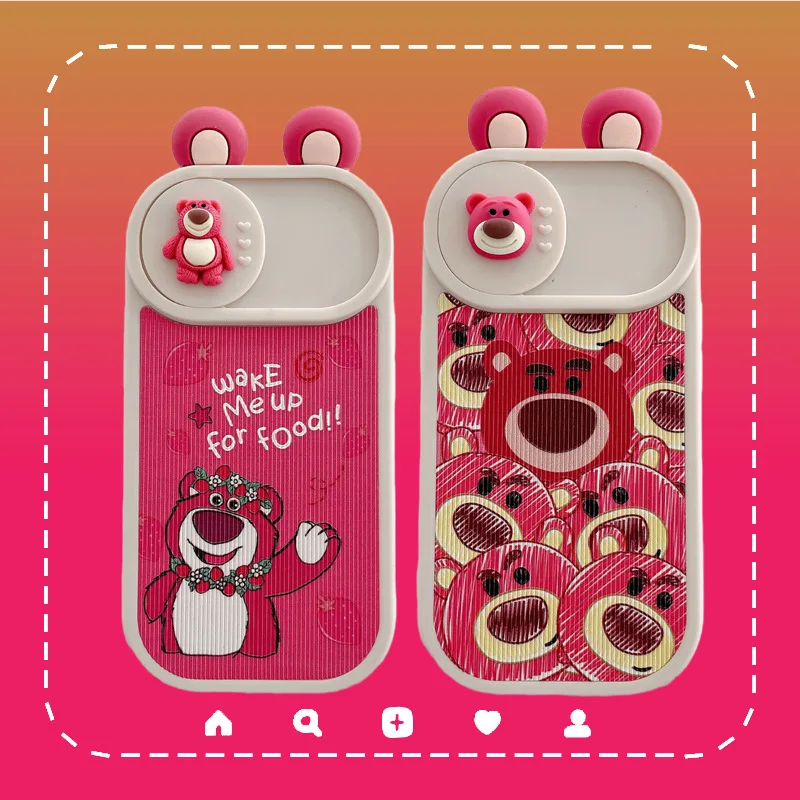 Cue Pink Bear Cartoon Cases With Wake Me For Food Slogan For iPhone 14 13 12 series