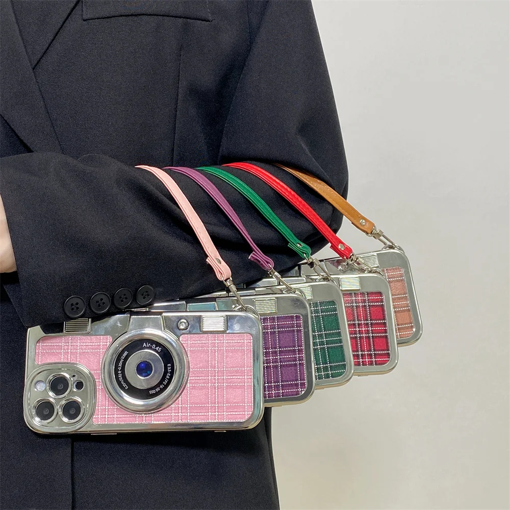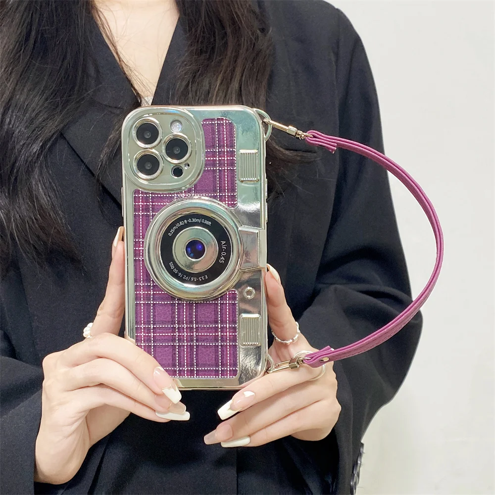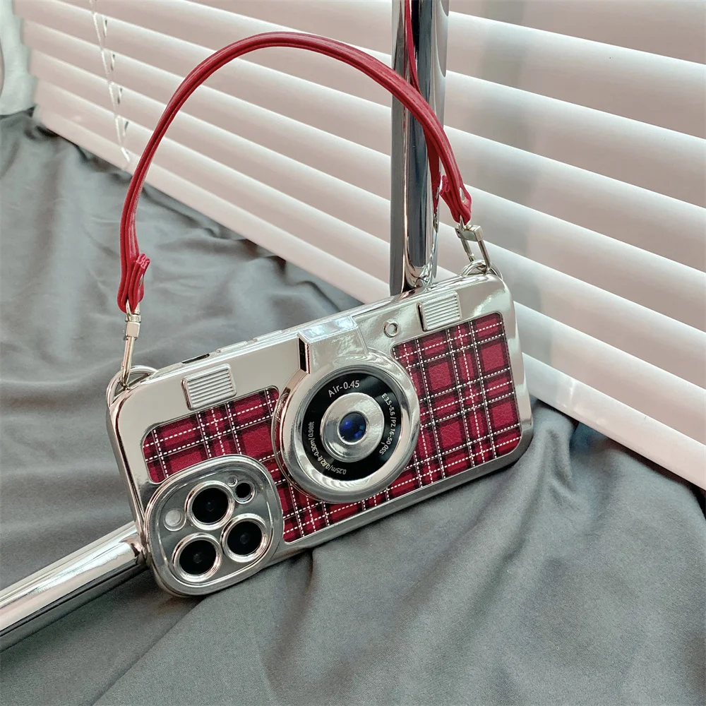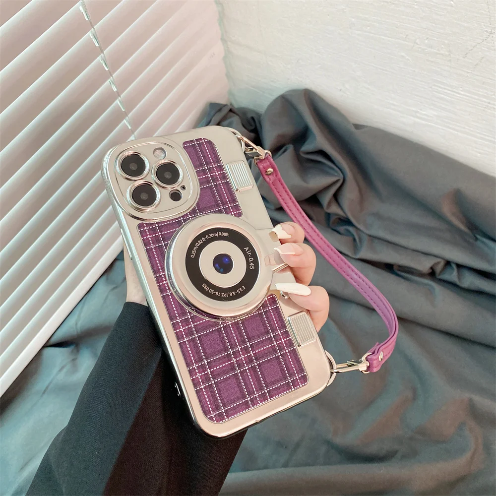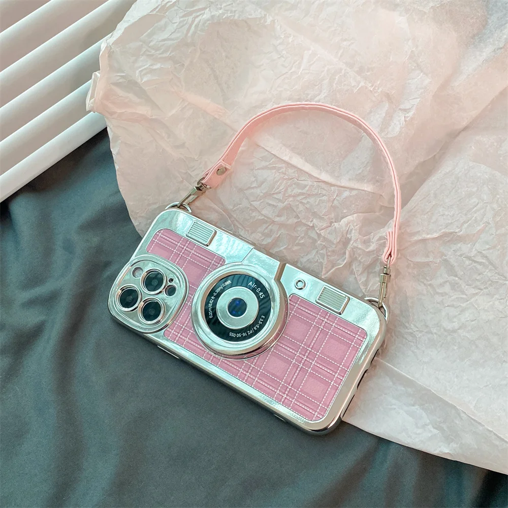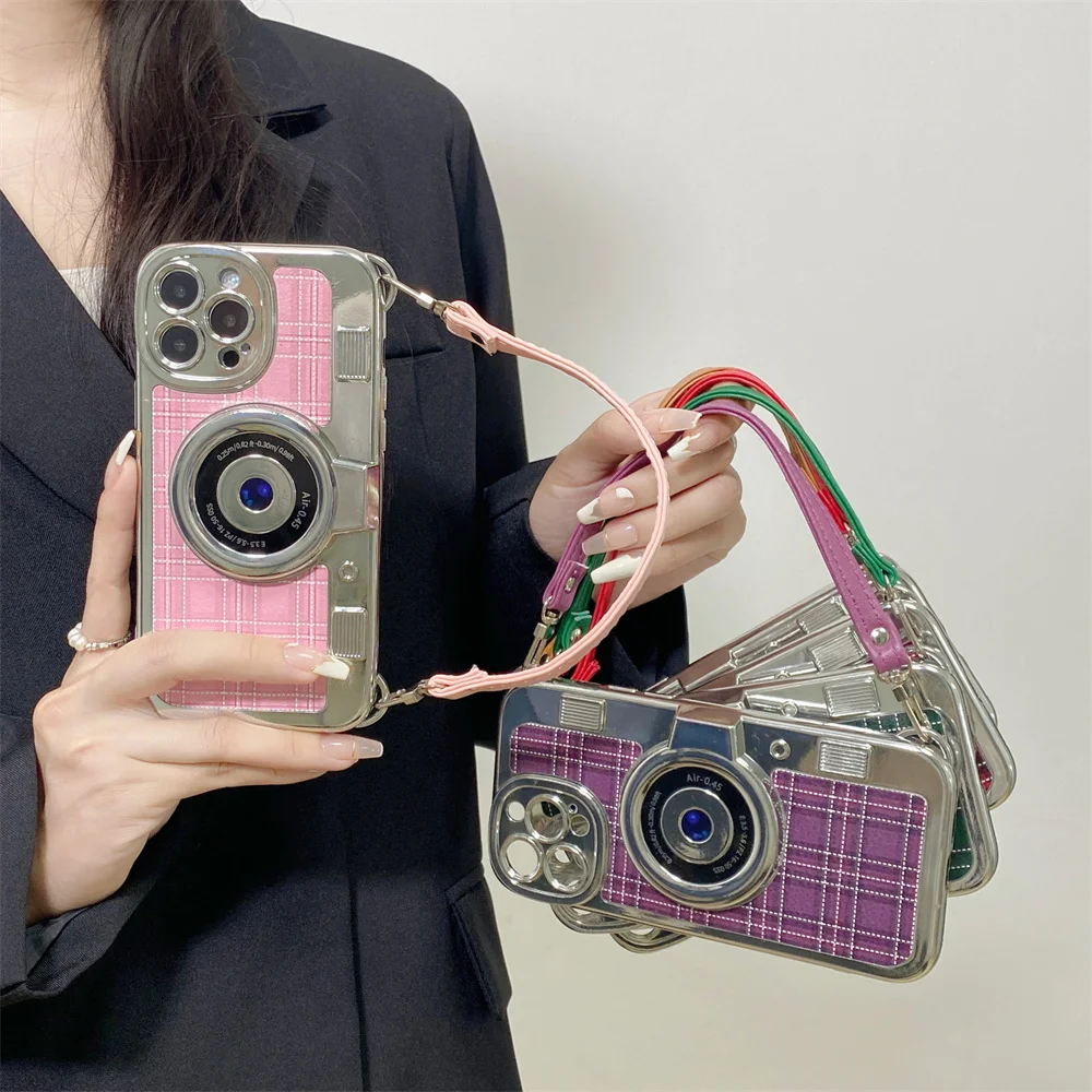 Cute 3D Camera Cartoon Lanyard Case For iPhone 14 13 12 series