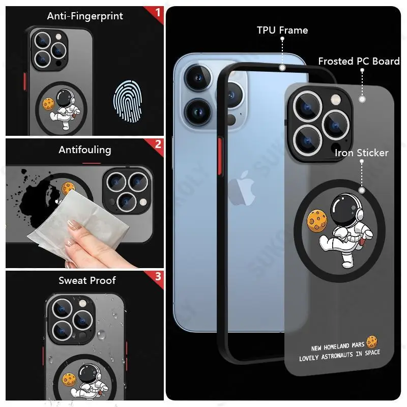 Cute Astronaut Magsafe Magnetic Wireless Charging ShockProof Case For iPhone 14 13 12 series