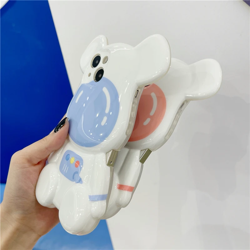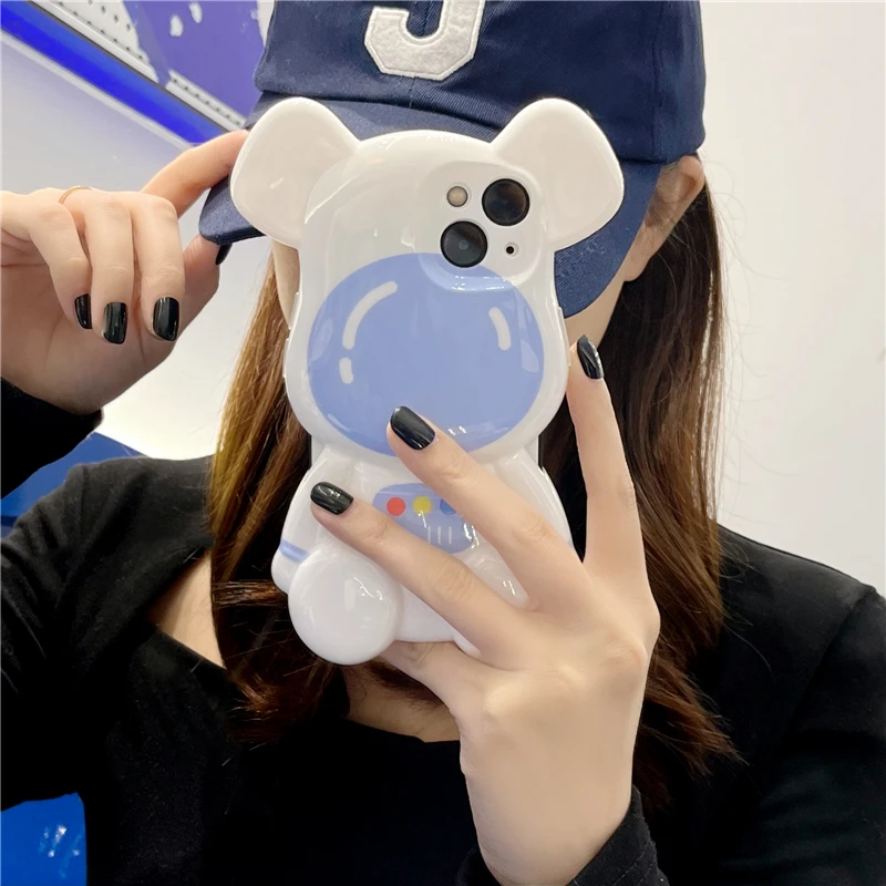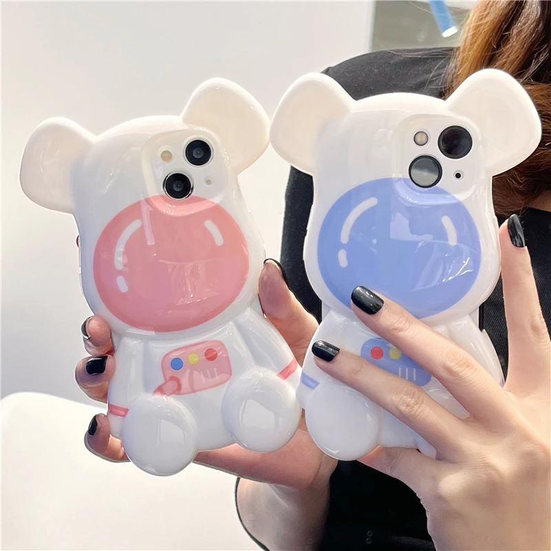 Cute Cartoon 3D Astronaut Bear Camera Protection Case for iPhone 13 12 11 Pro Max