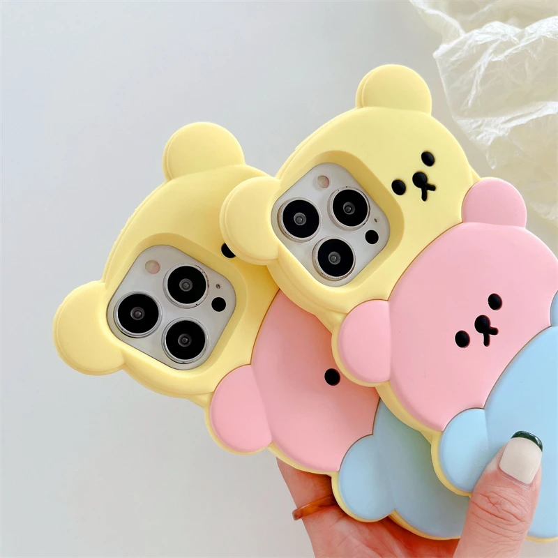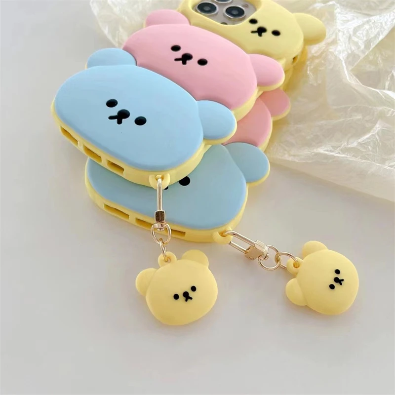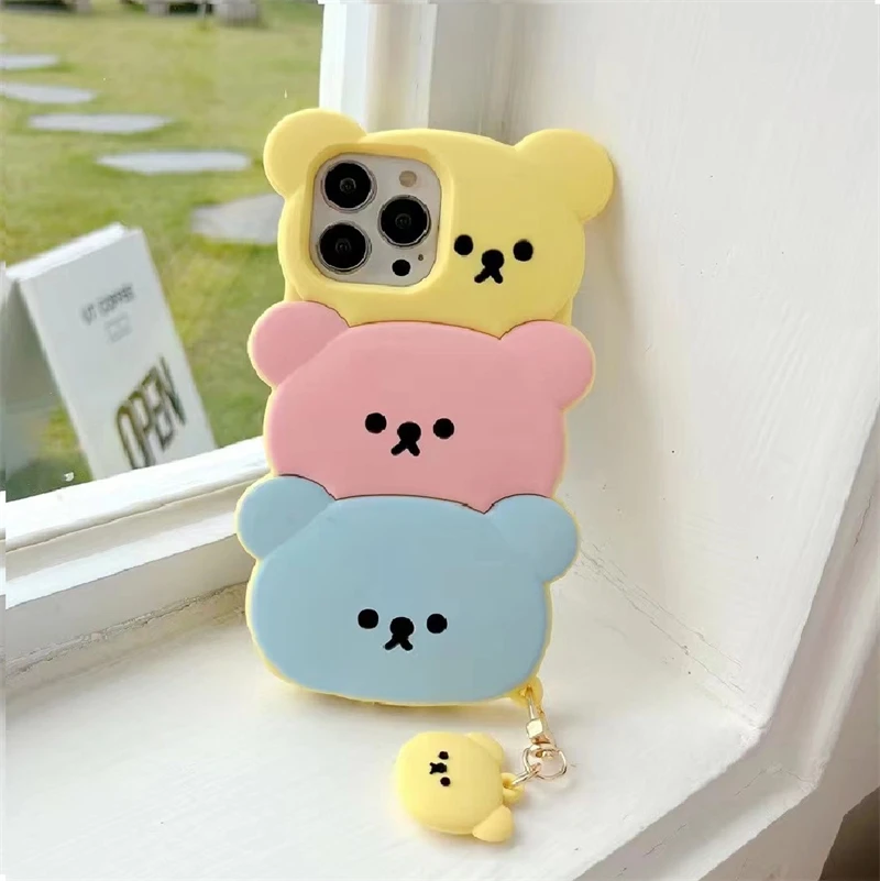 Cute Cartoon Bear Soft Silicone Case with Keychain for iPhone 14 13 12 series