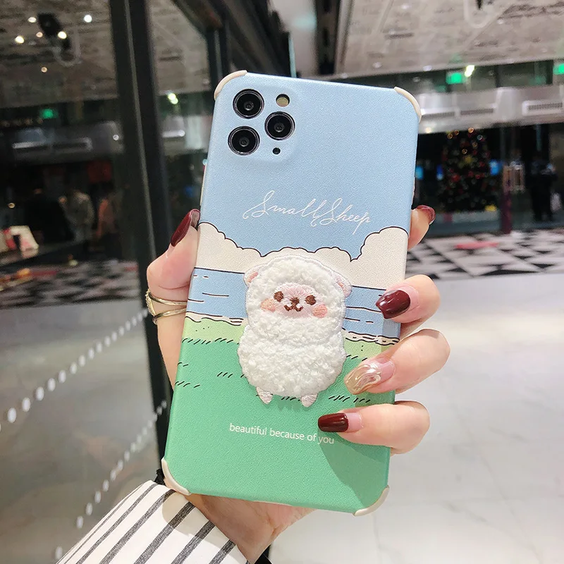 Cute Embroidery Sheep Leather Case for iPhone 13 12 11 Pro Max Mini