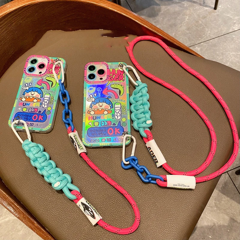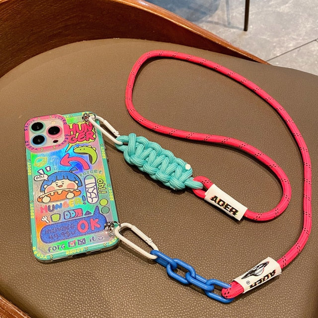 Cute Graffiti Crossbody Lanyard Soft Silicone Case For iPhone 14 13 12 series
