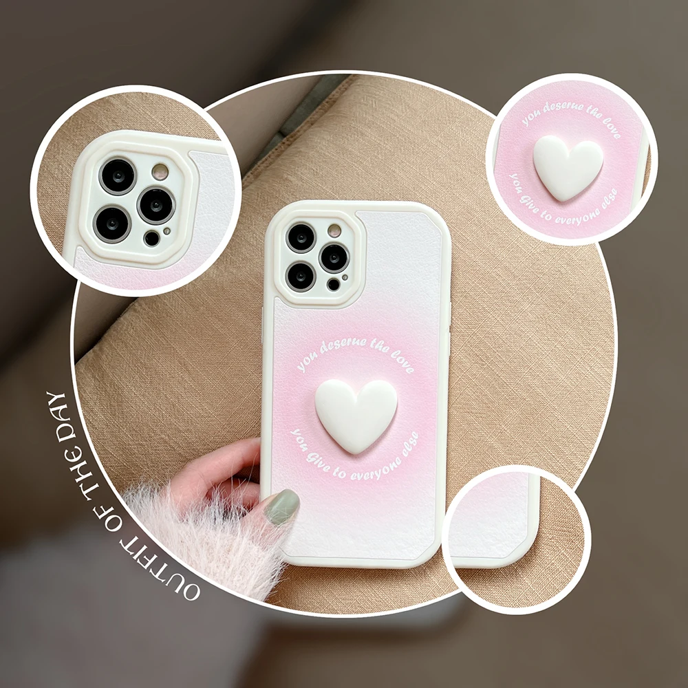 Cute Pink Heart Leather Case for IPhone 13 12 11 Pro Max