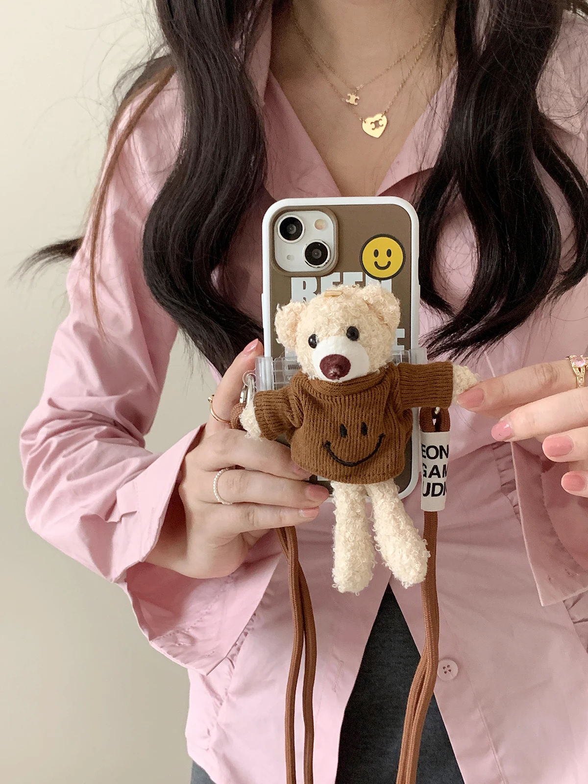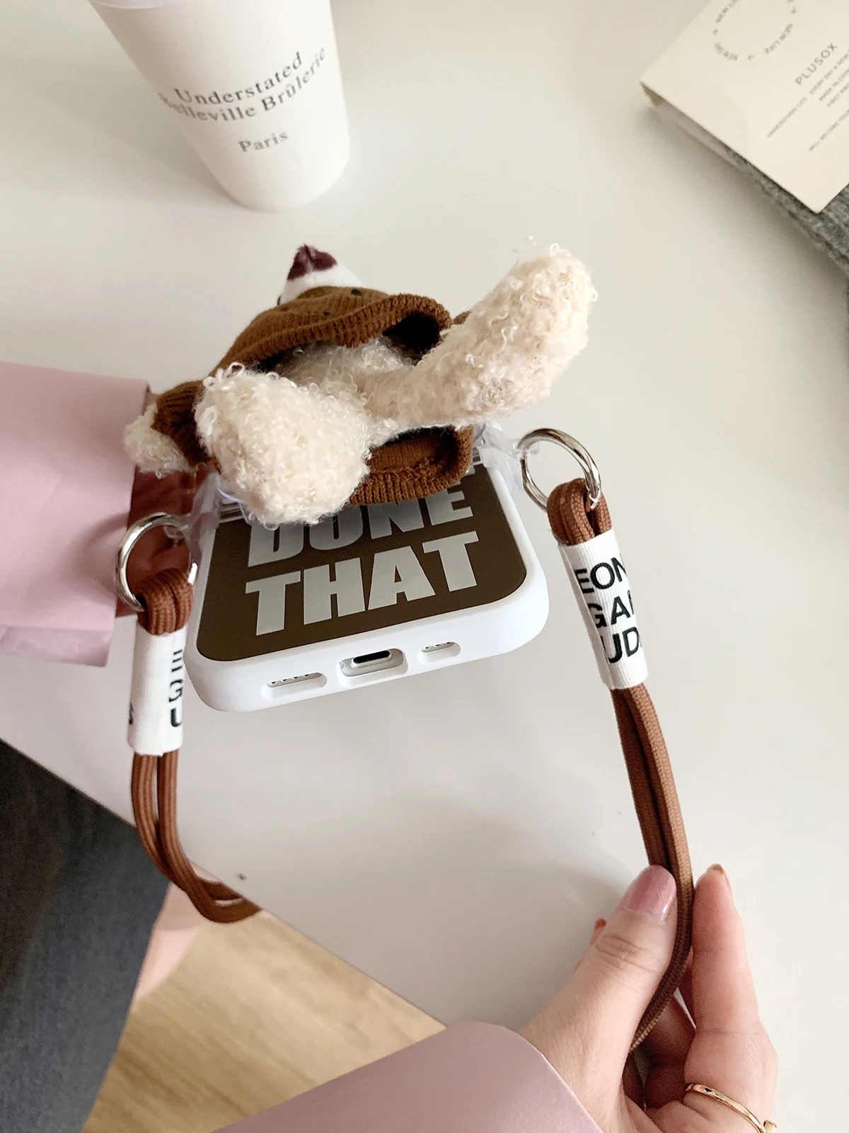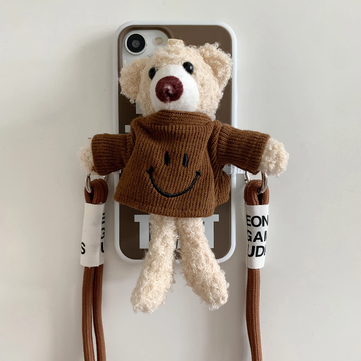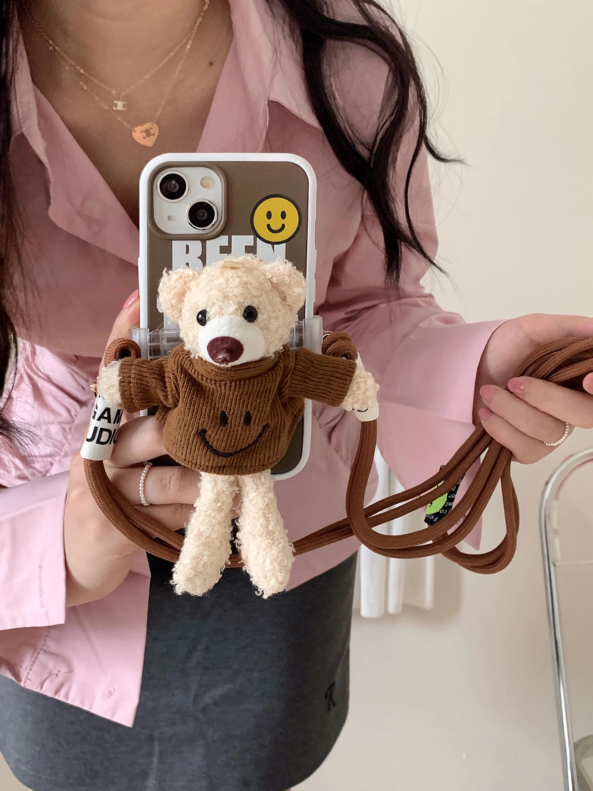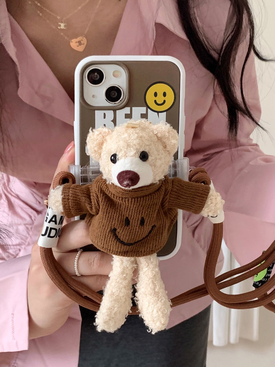 Cute Plush 3D Bear 2-in-1 Removable Silicone Case With Lanyard Strap Crossbody For iPhone 14 13 12 series