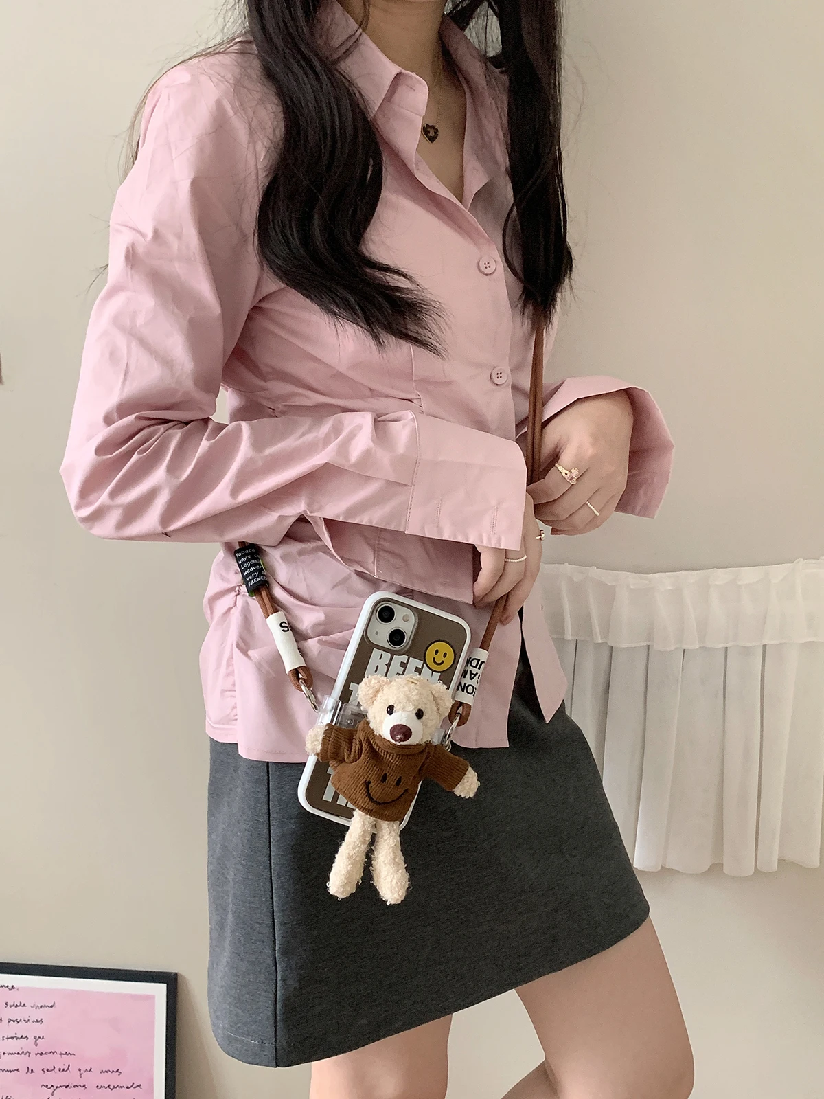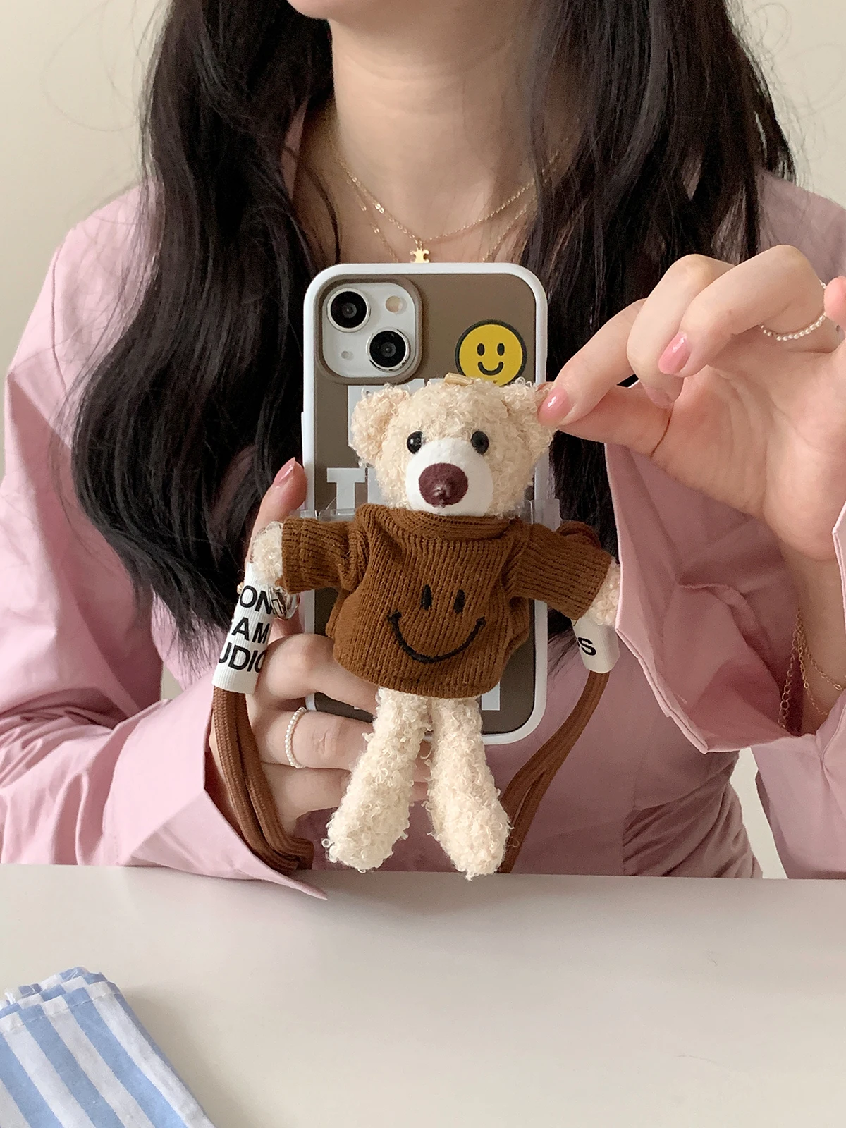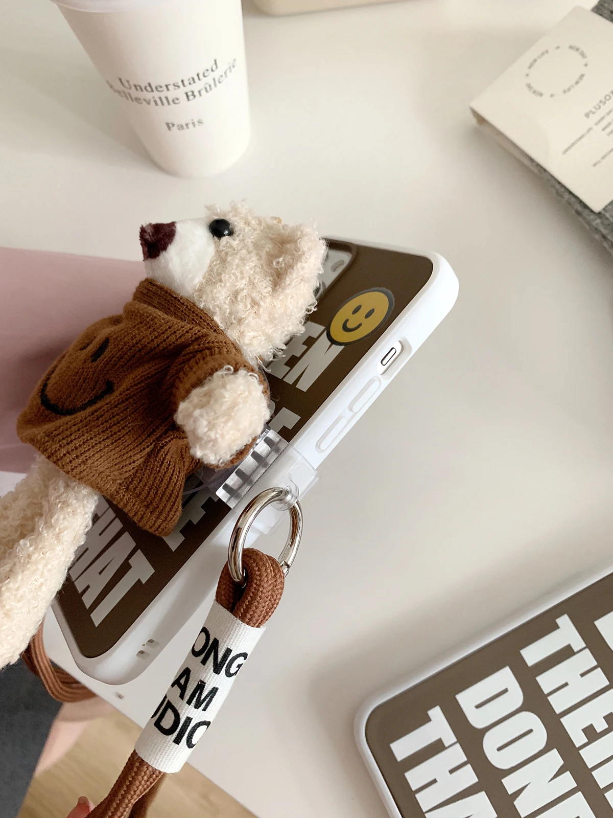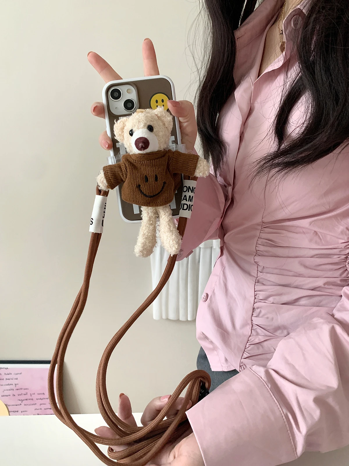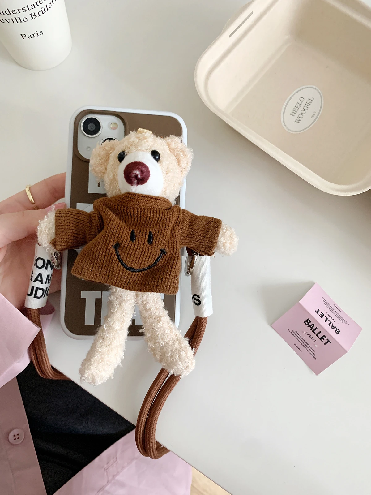 Cute Plush 3D Bear 2-in-1 Removable Silicone Case With Lanyard Strap Crossbody For iPhone 14 13 12 series