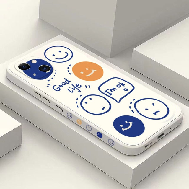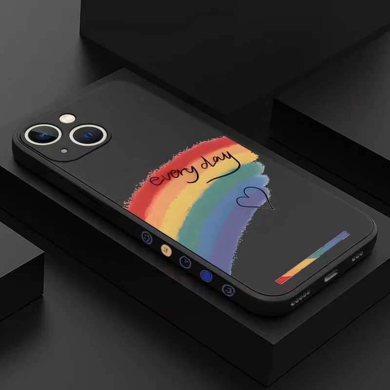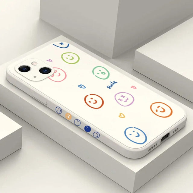 Cute Rainbow Smile Face Shockproof Soft Silicone Case For iPhone 14 13 12 series