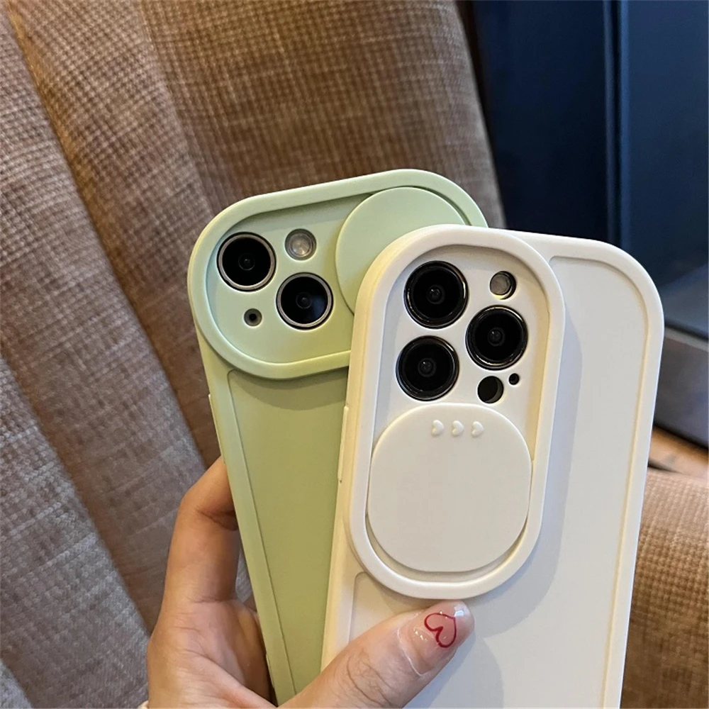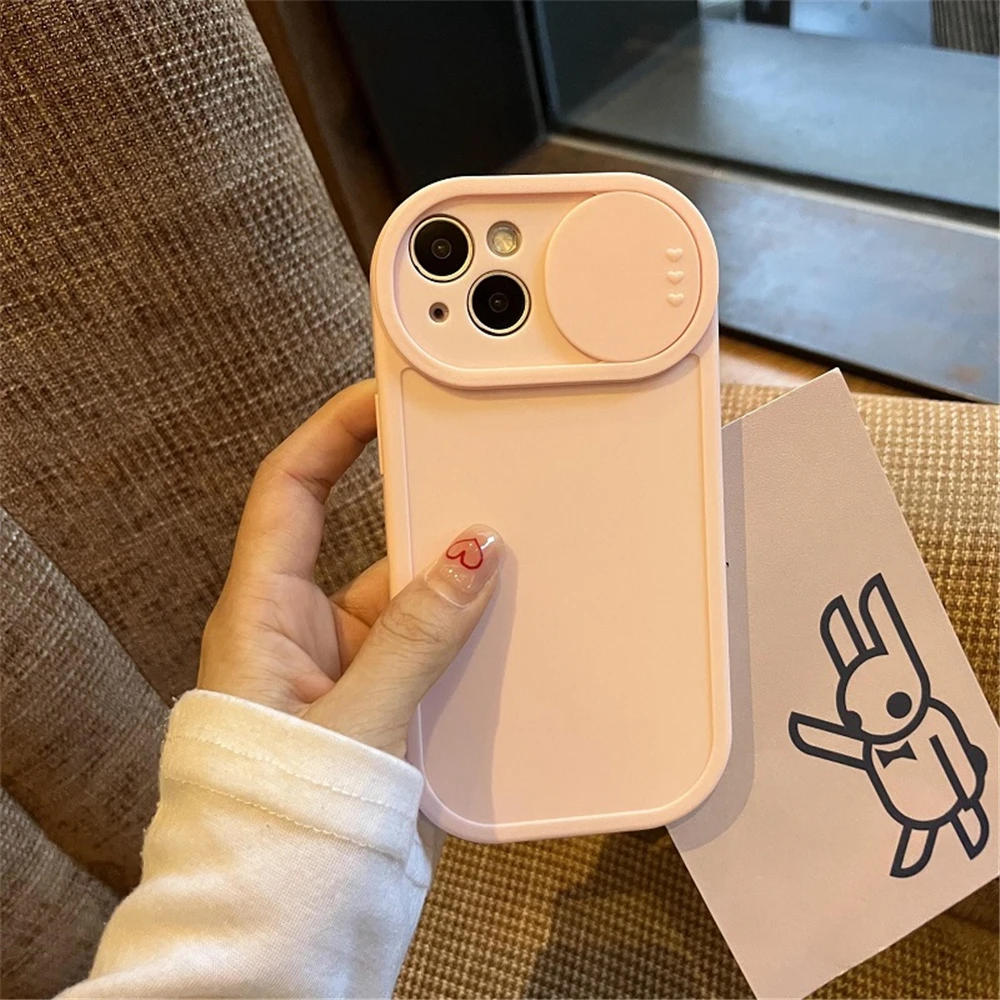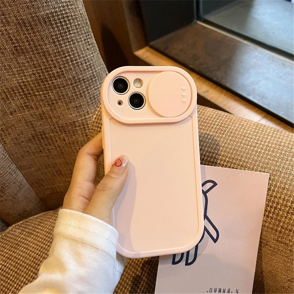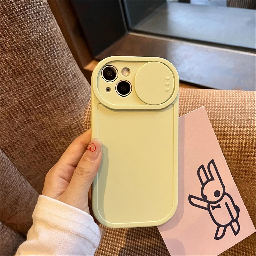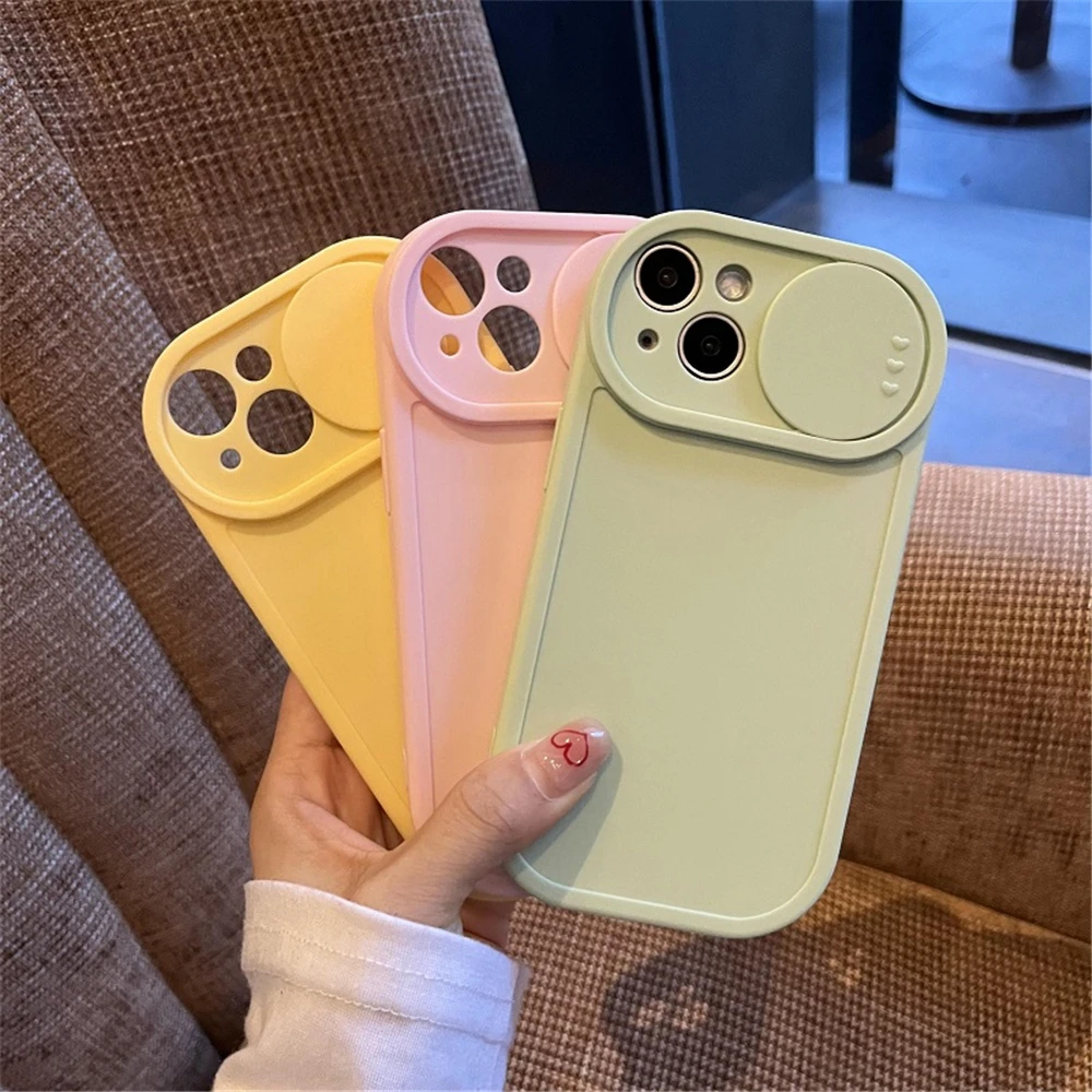 Cute Slide Camera Lens Protection Candy Color Case for iPhone 14 13 12 series