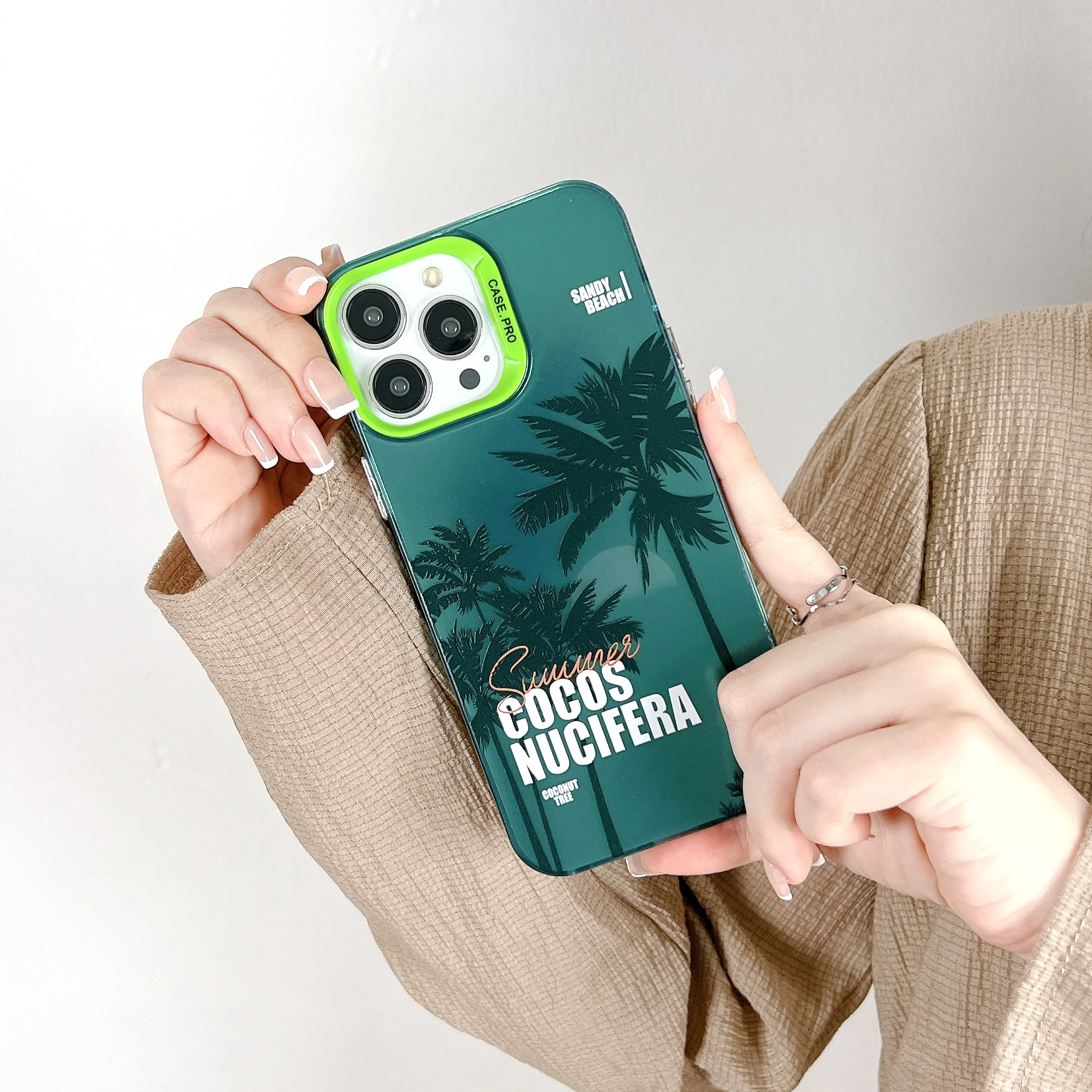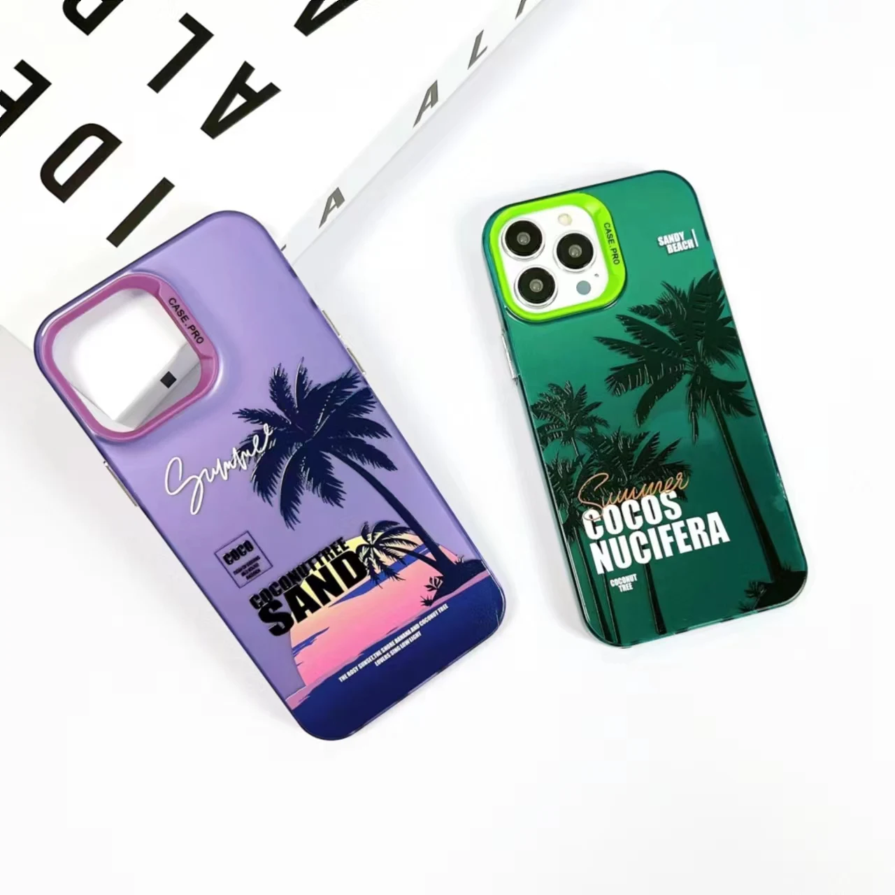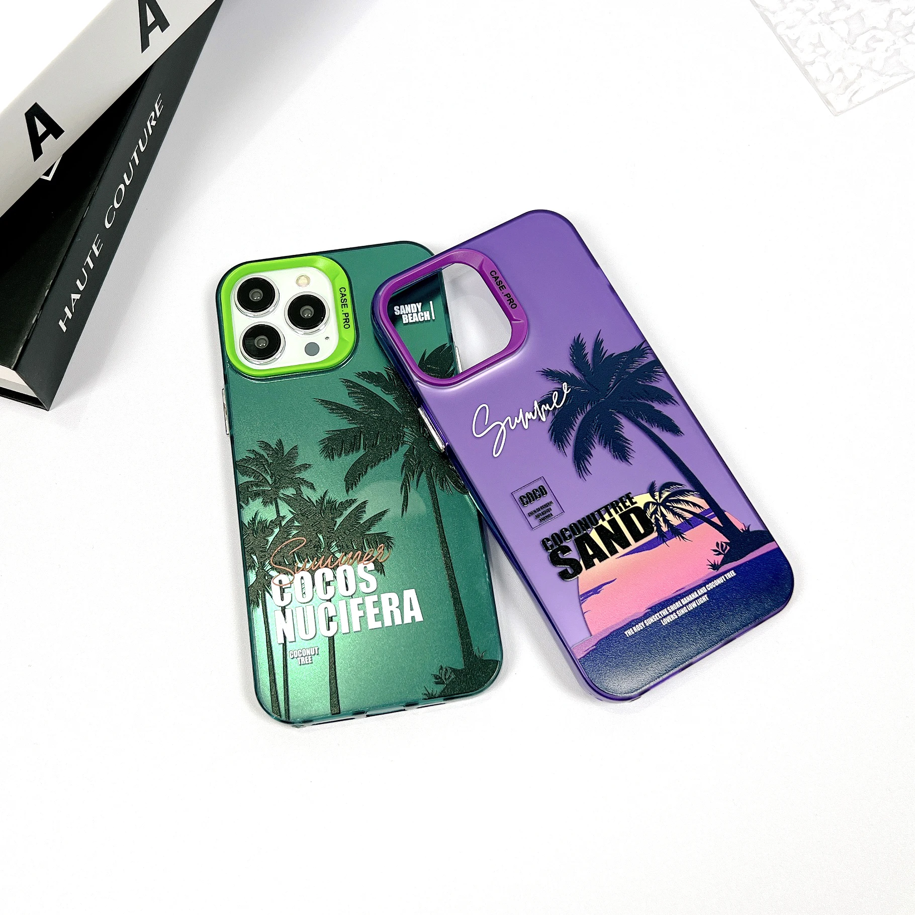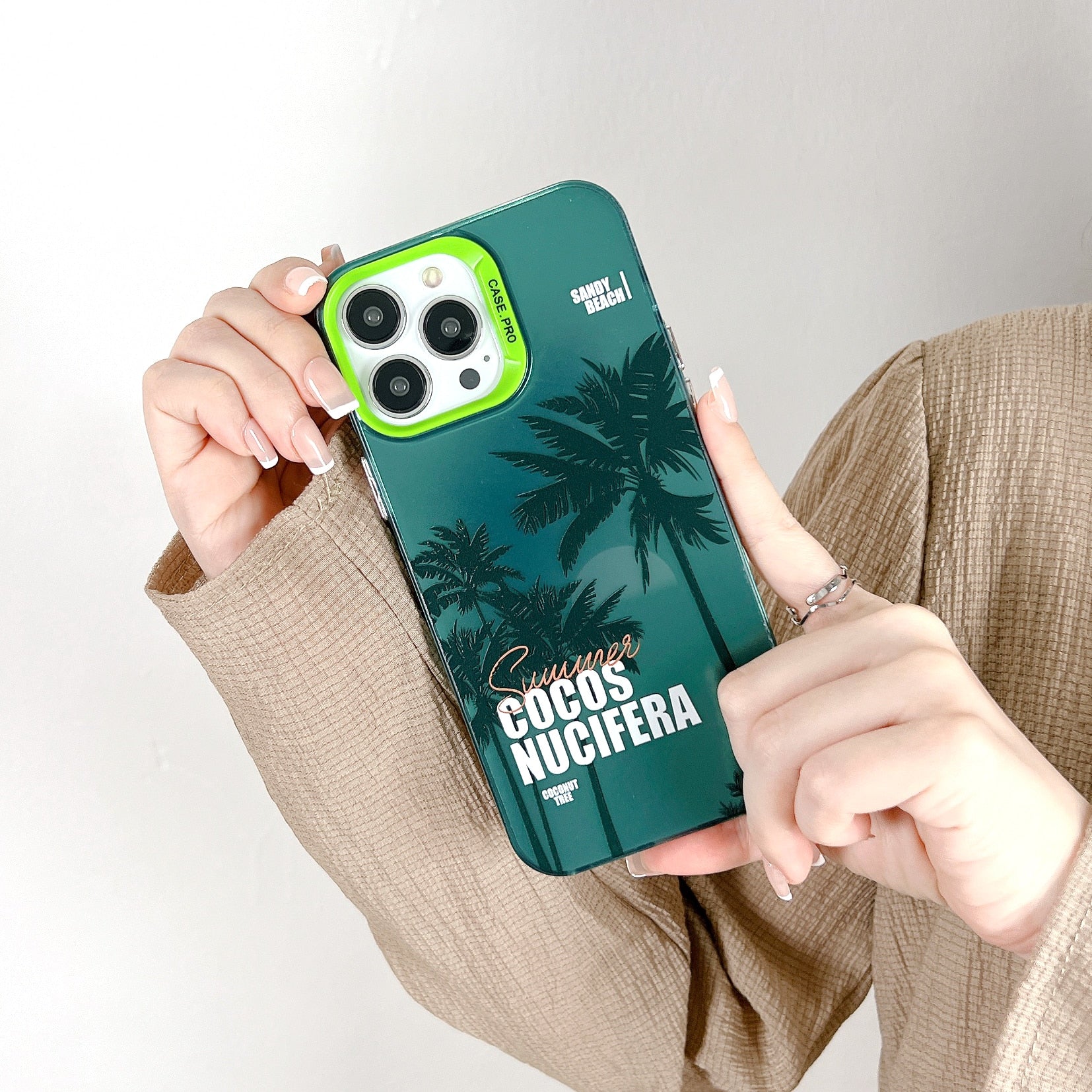 Double Layer Colourful Silver Coconut Tree Case for iPhone 14 13 12 series