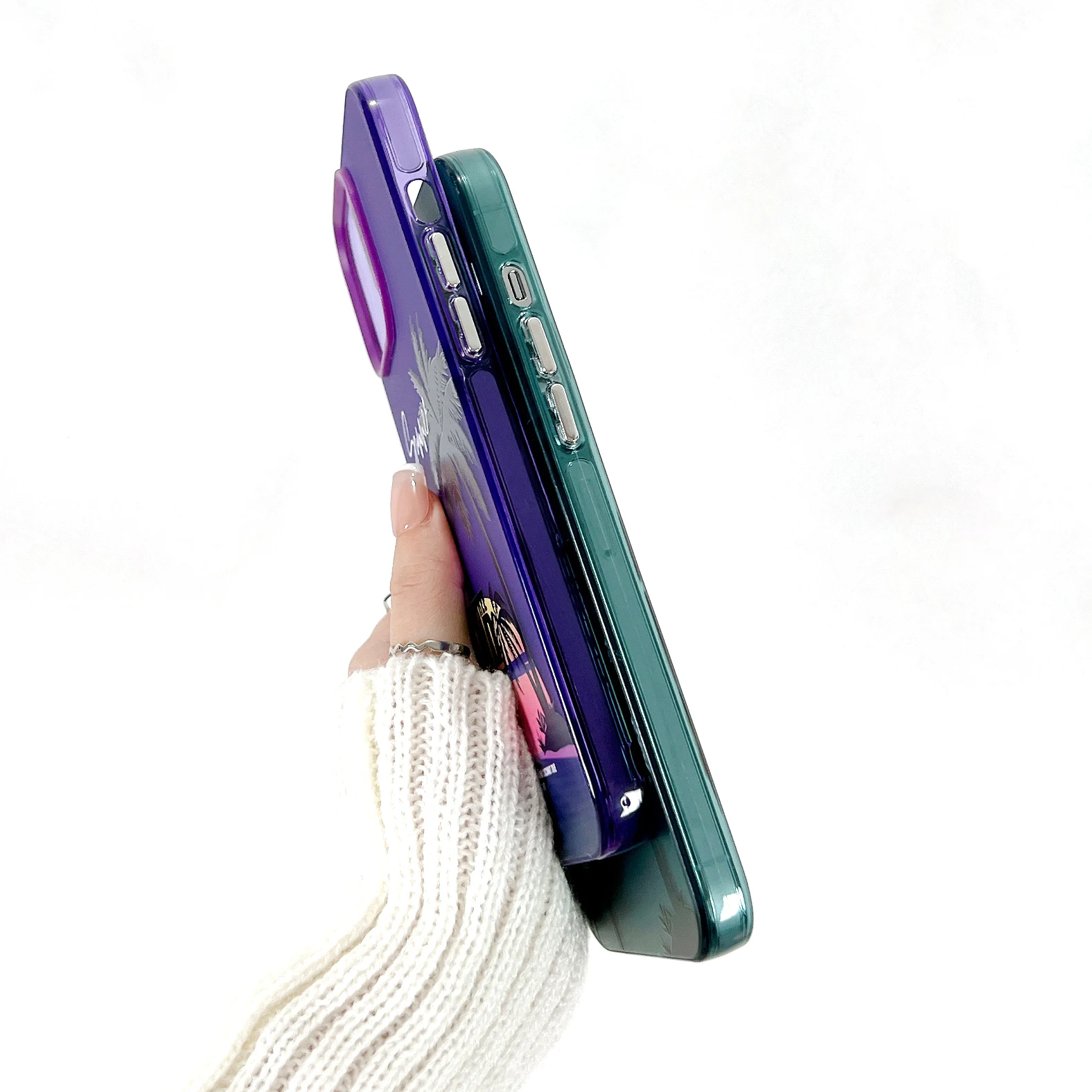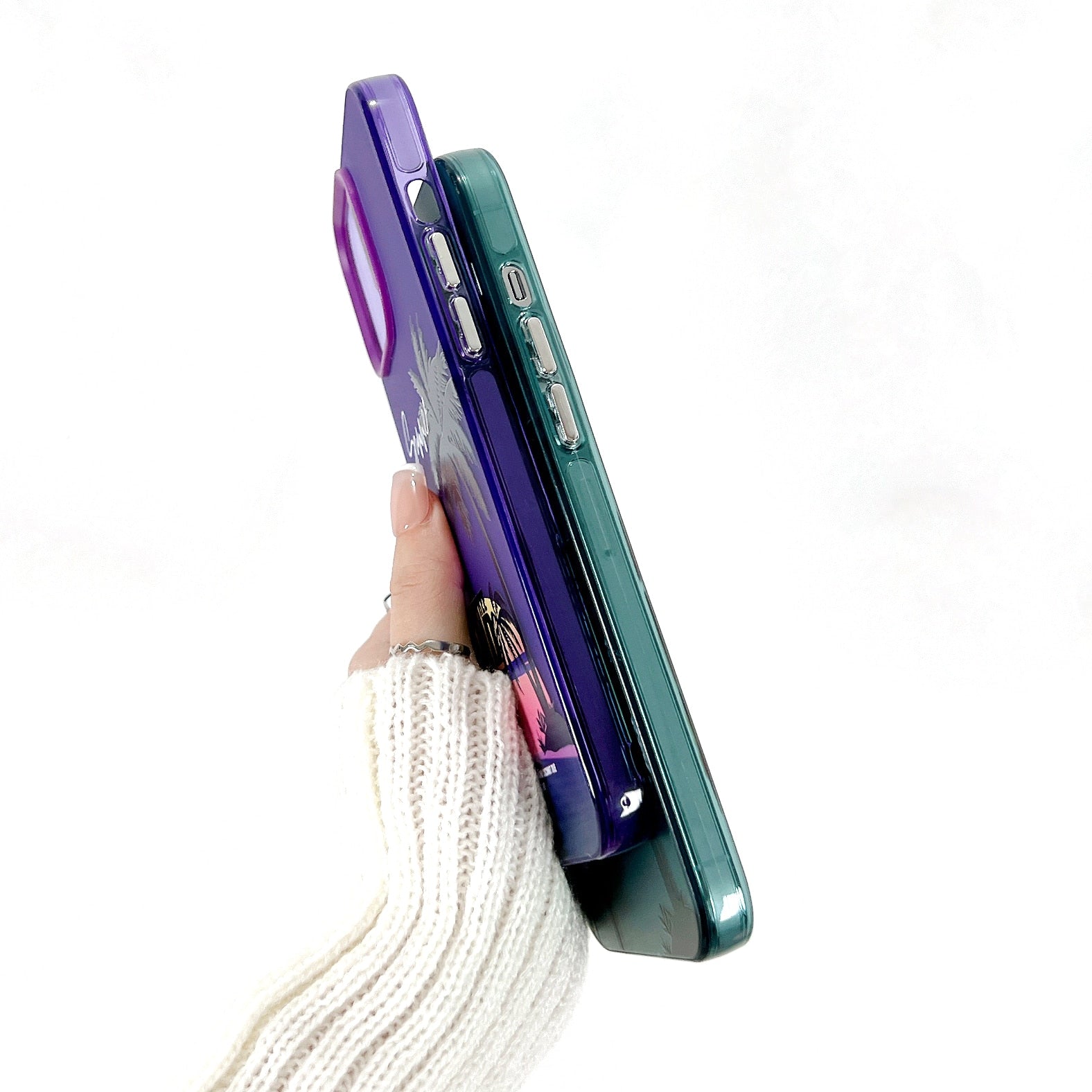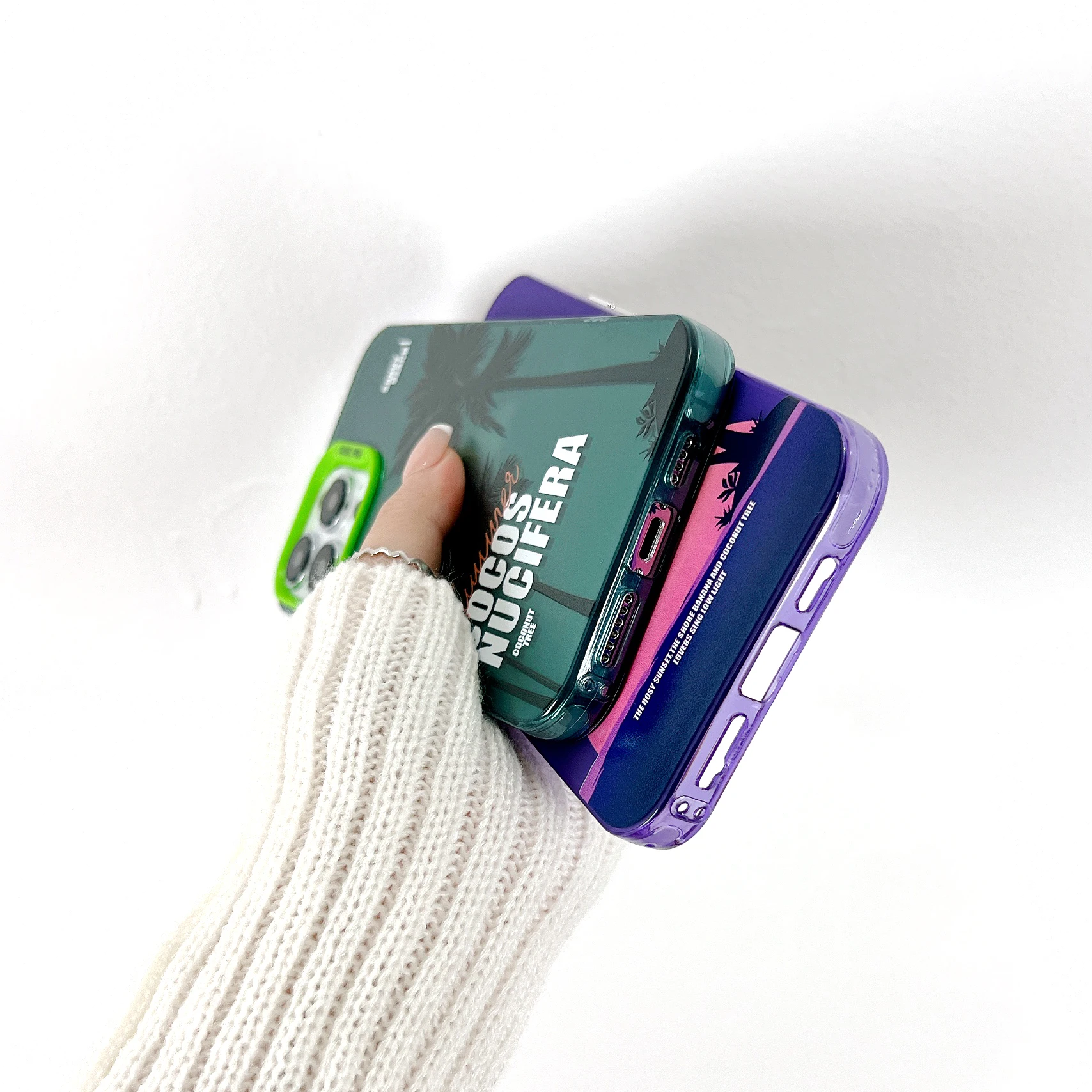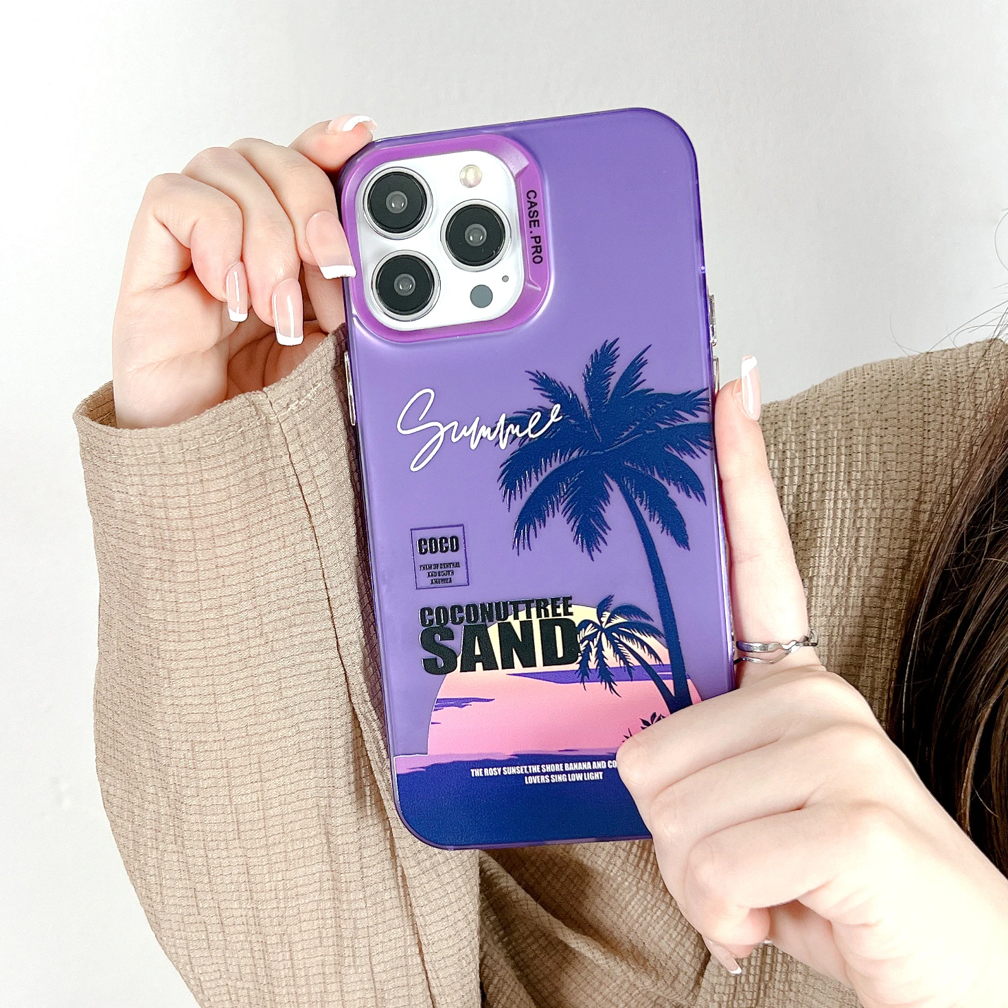 Double Layer Colourful Silver Coconut Tree Case for iPhone 14 13 12 series
