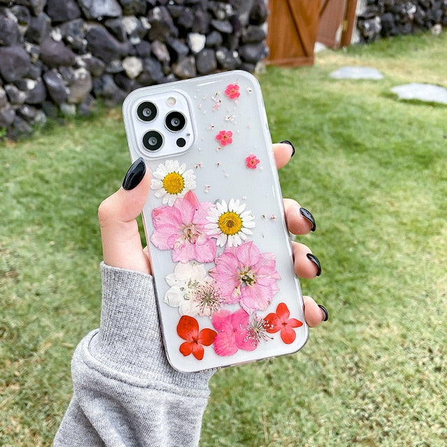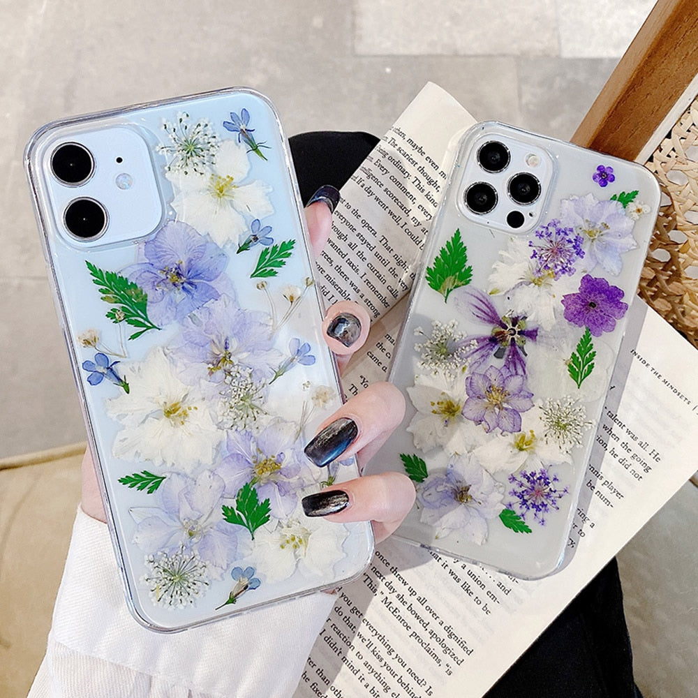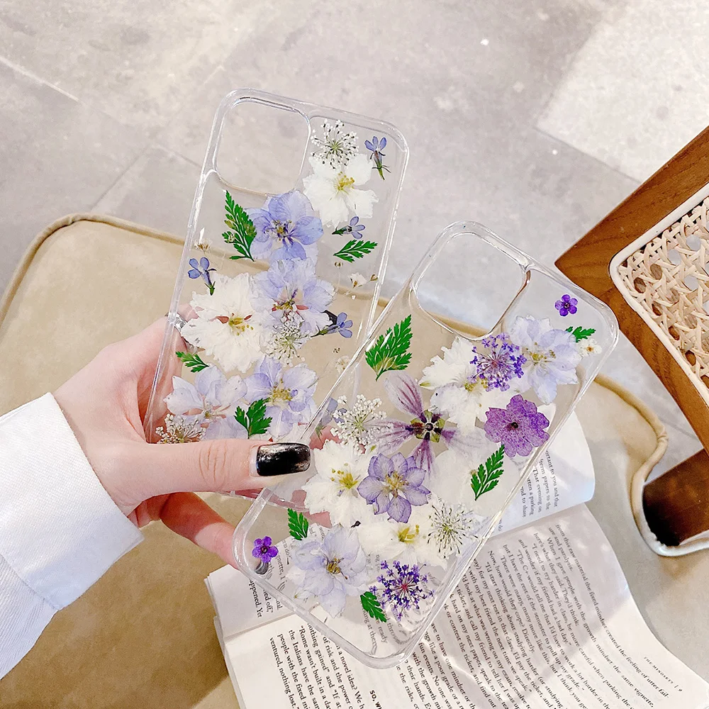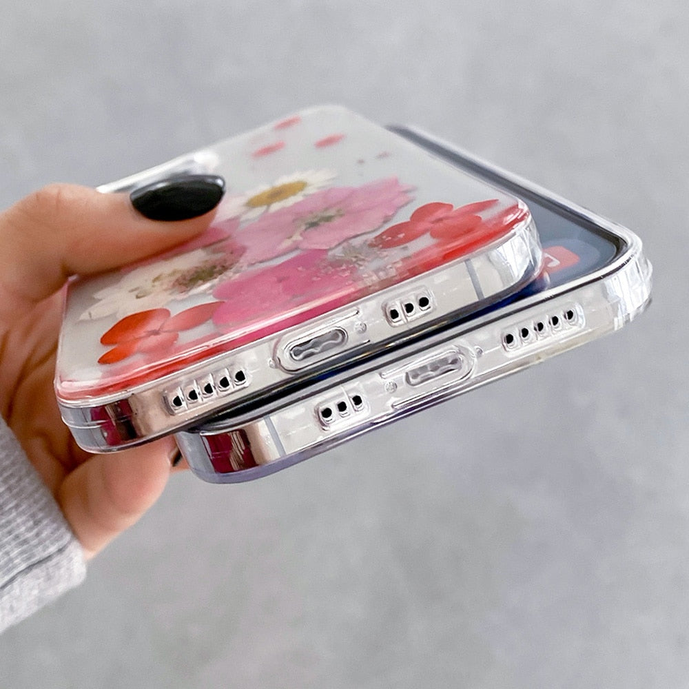 Dried Flower Beautiful Transparent Shockproof Case For iPhone 14 13 12 series