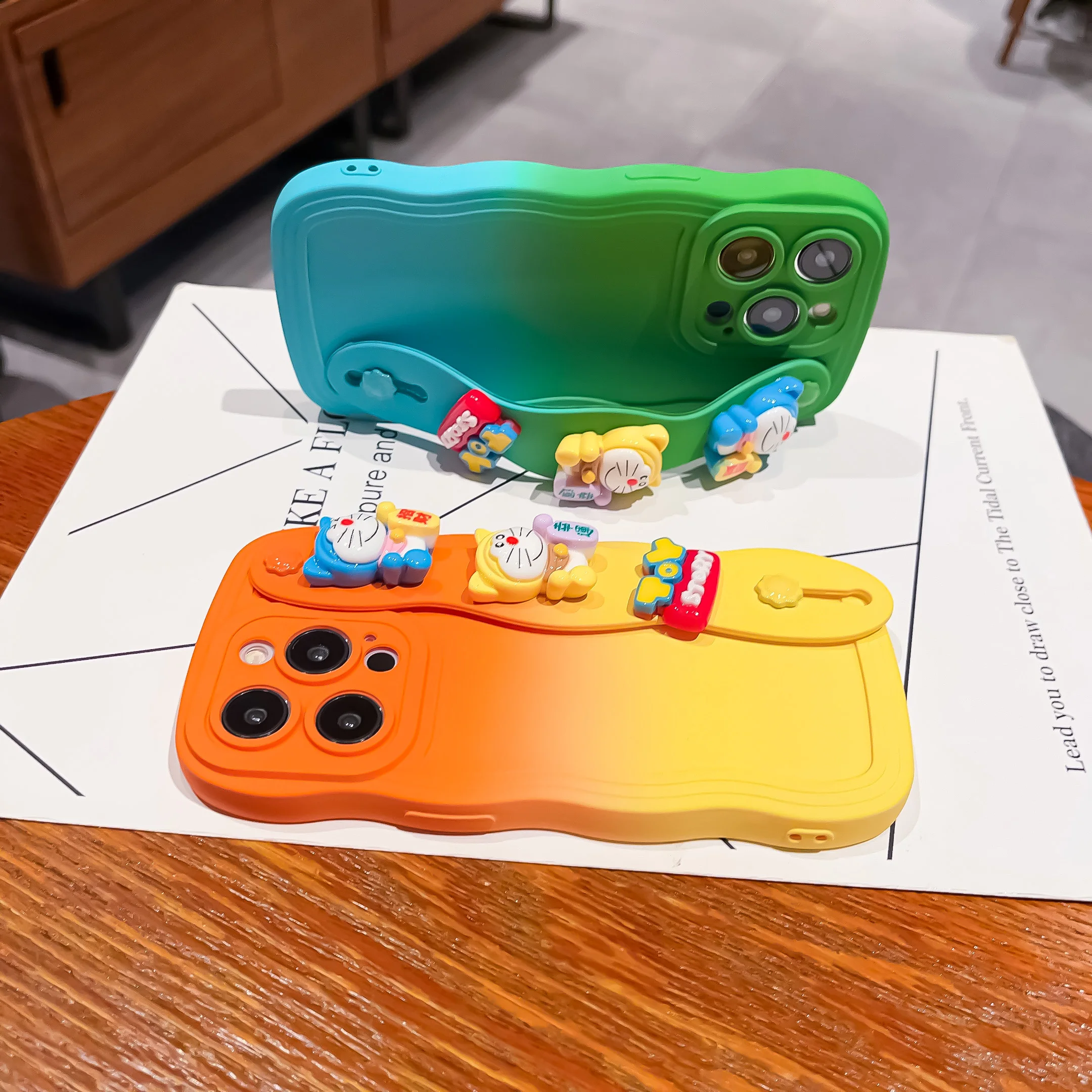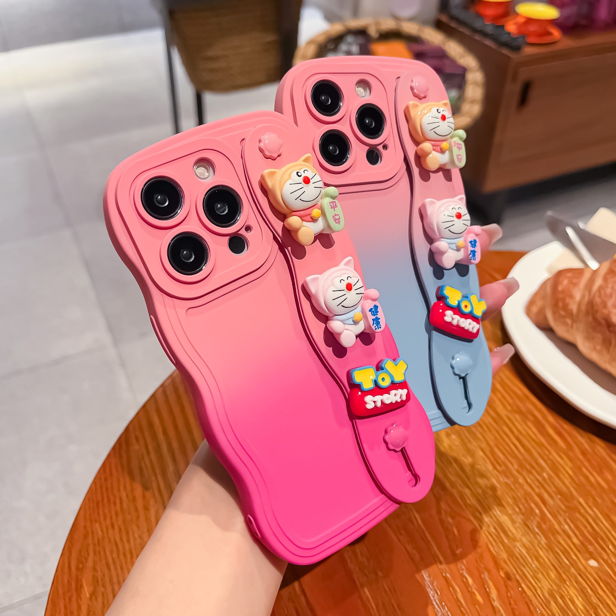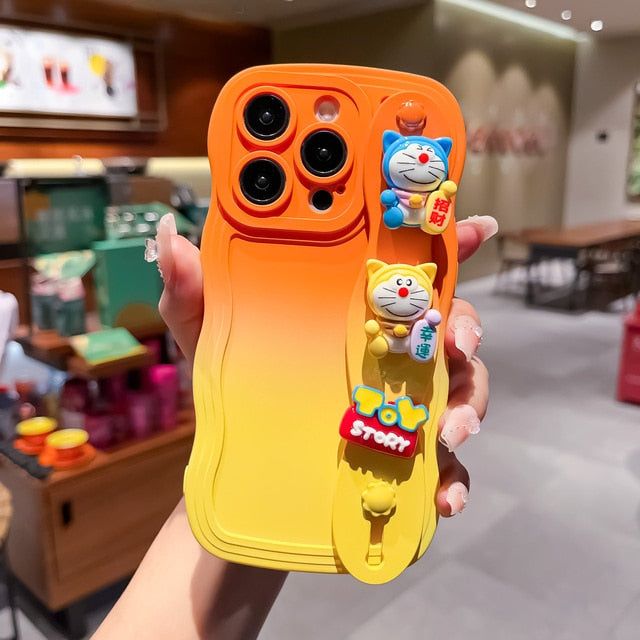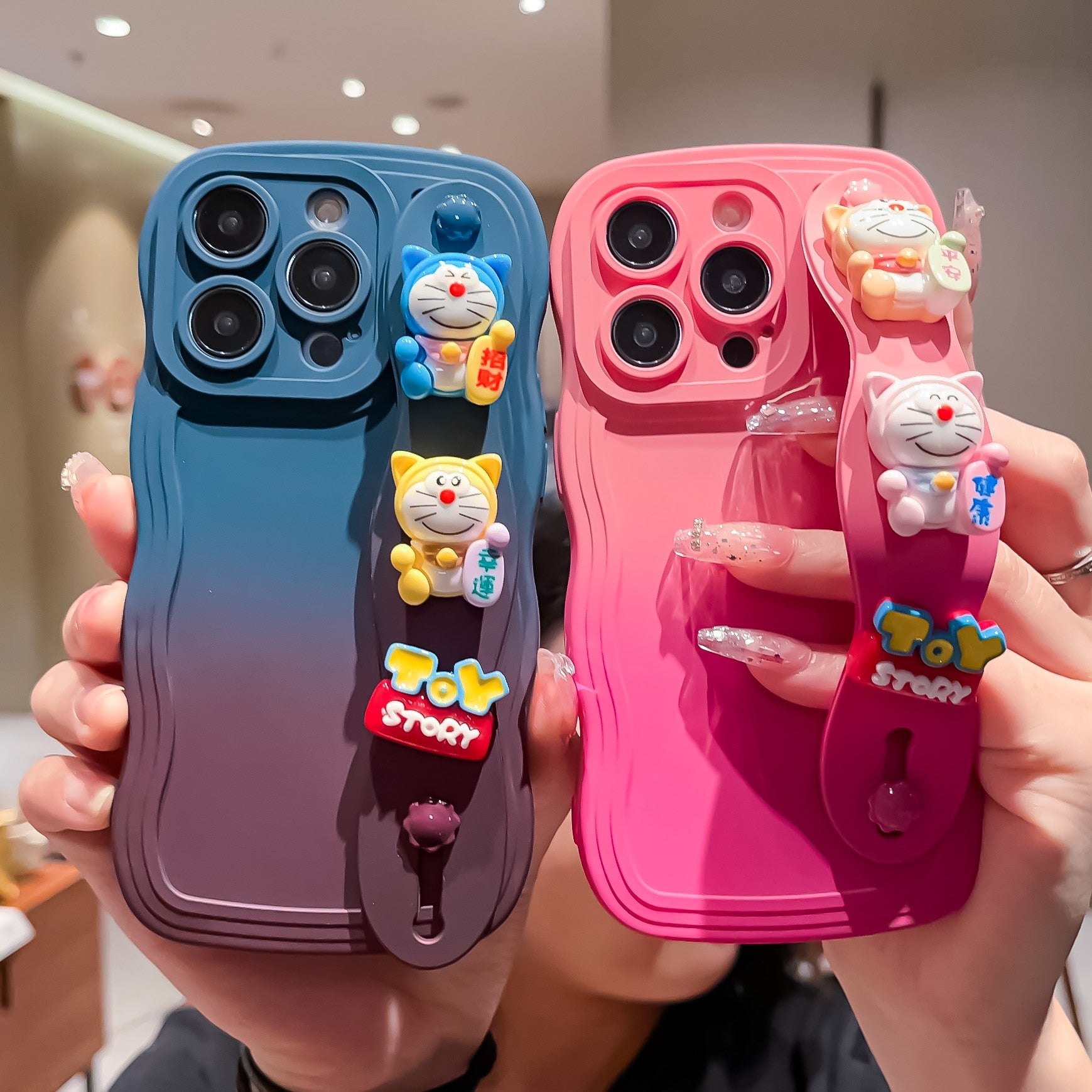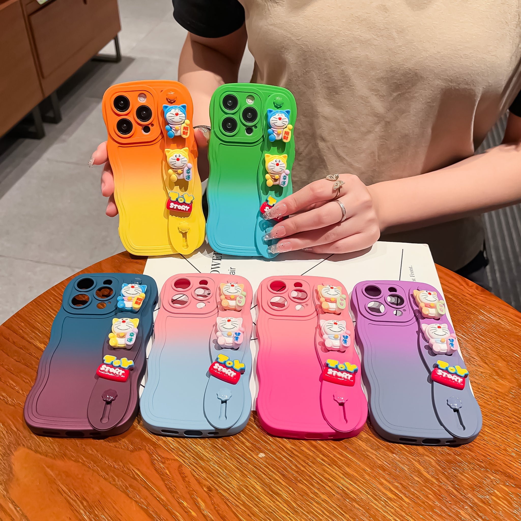 Dual Colour Gradient Wave Case With Wristband For iPhone 14 13 12 series
