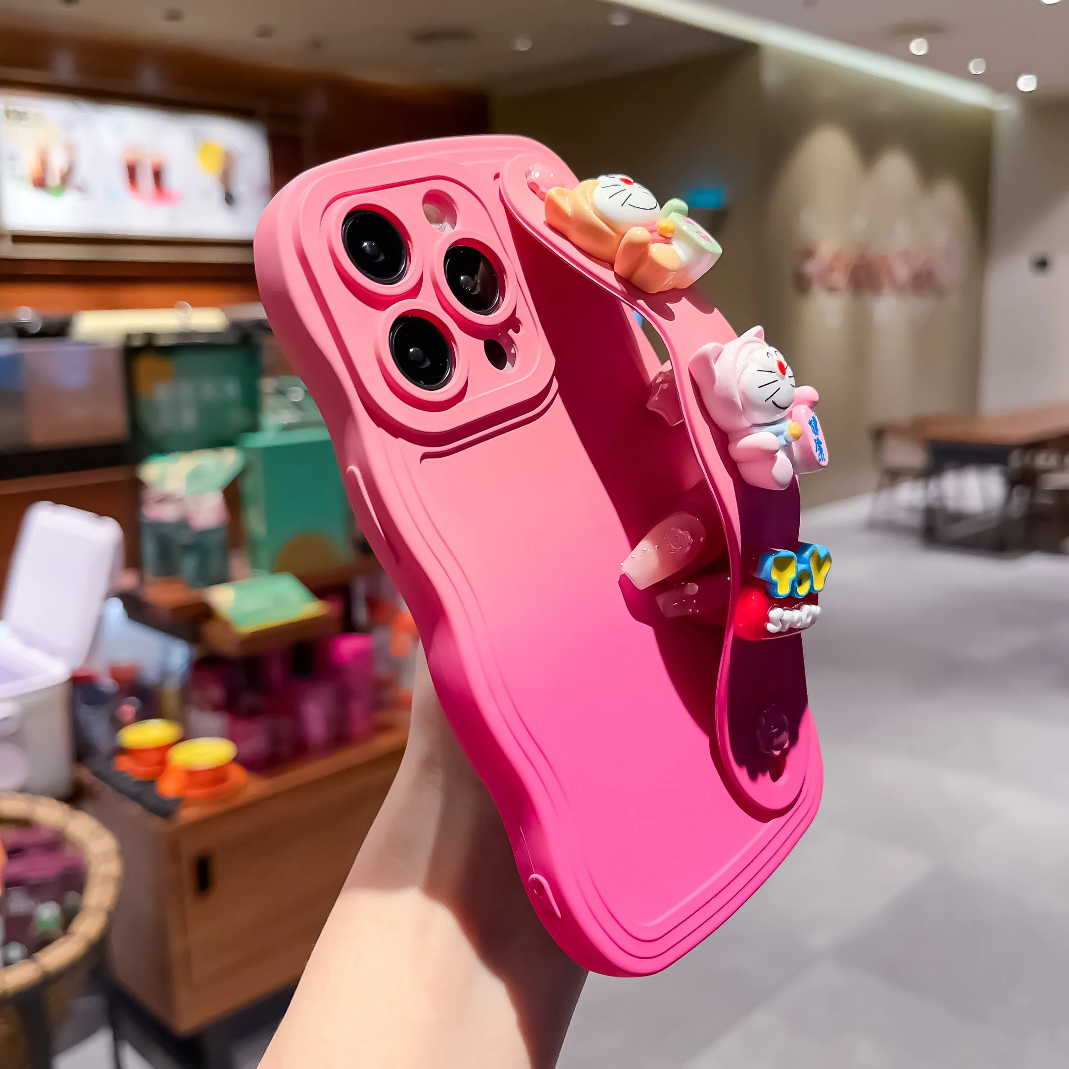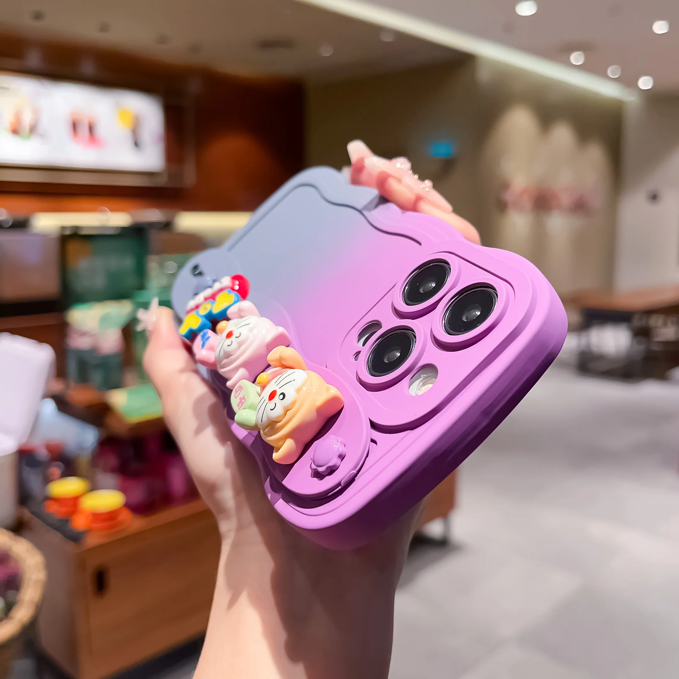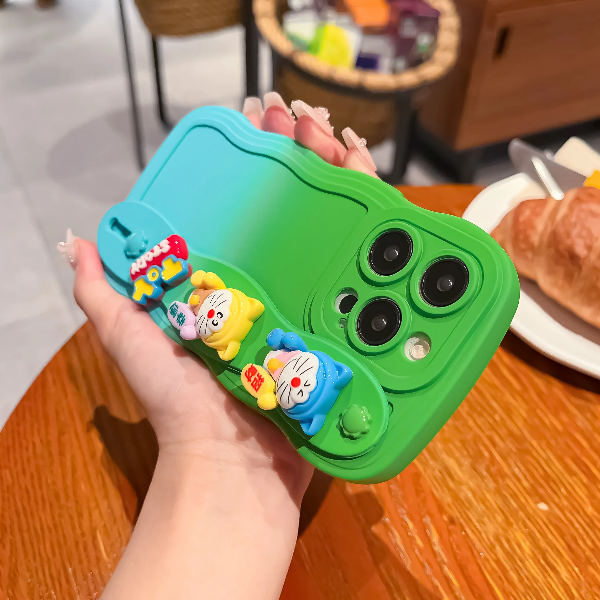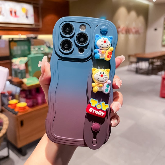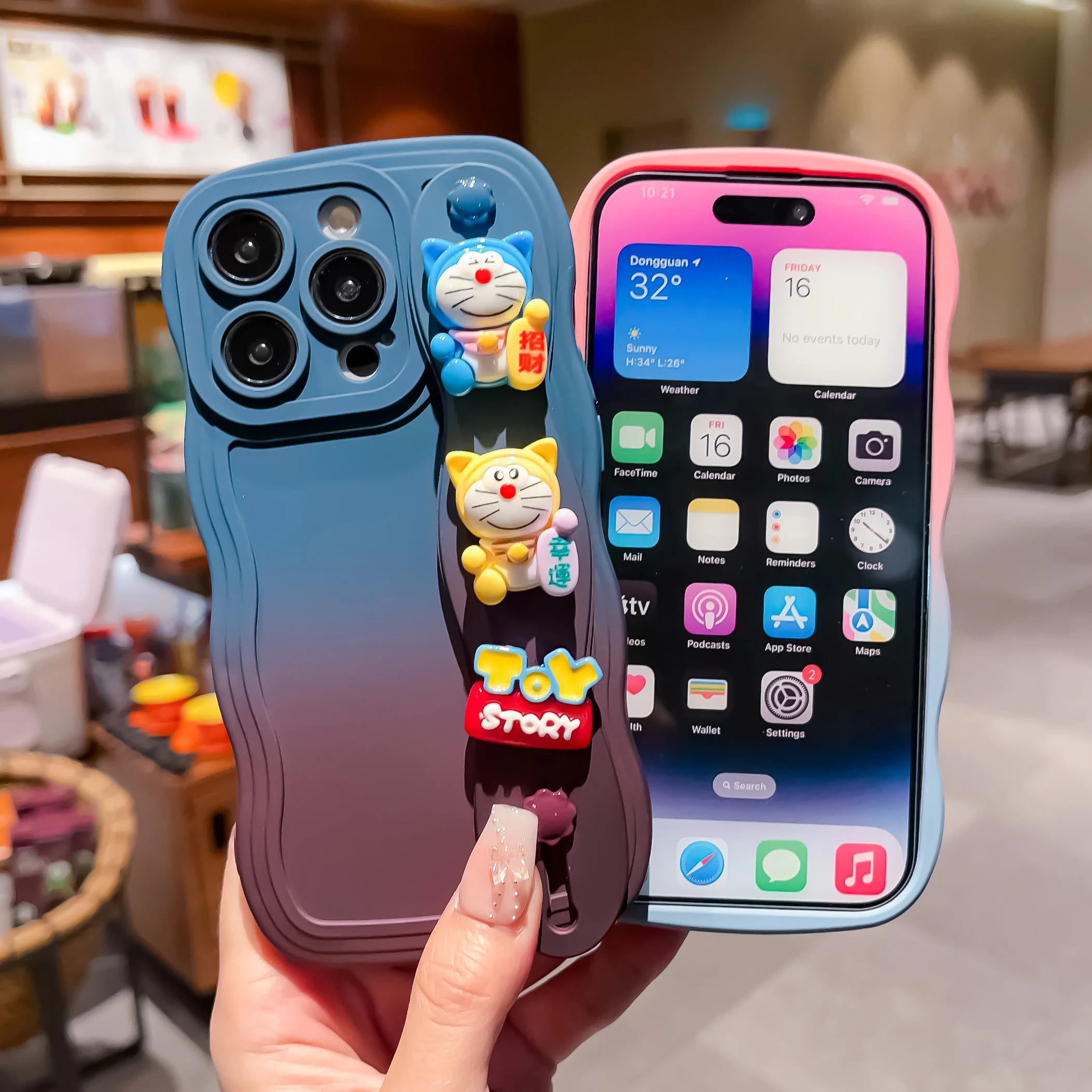Dual Colour Gradient Wave Case With Wristband For iPhone 14 13 12 series