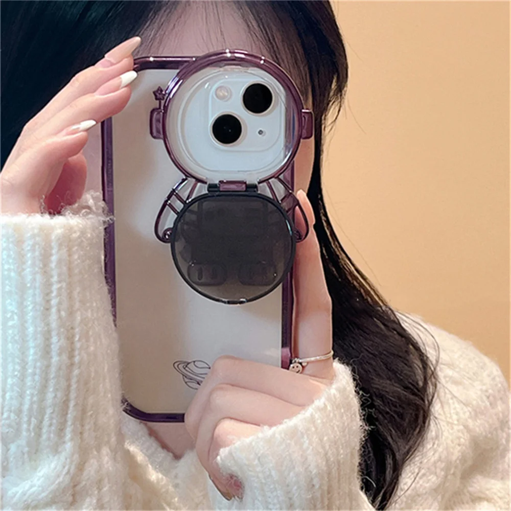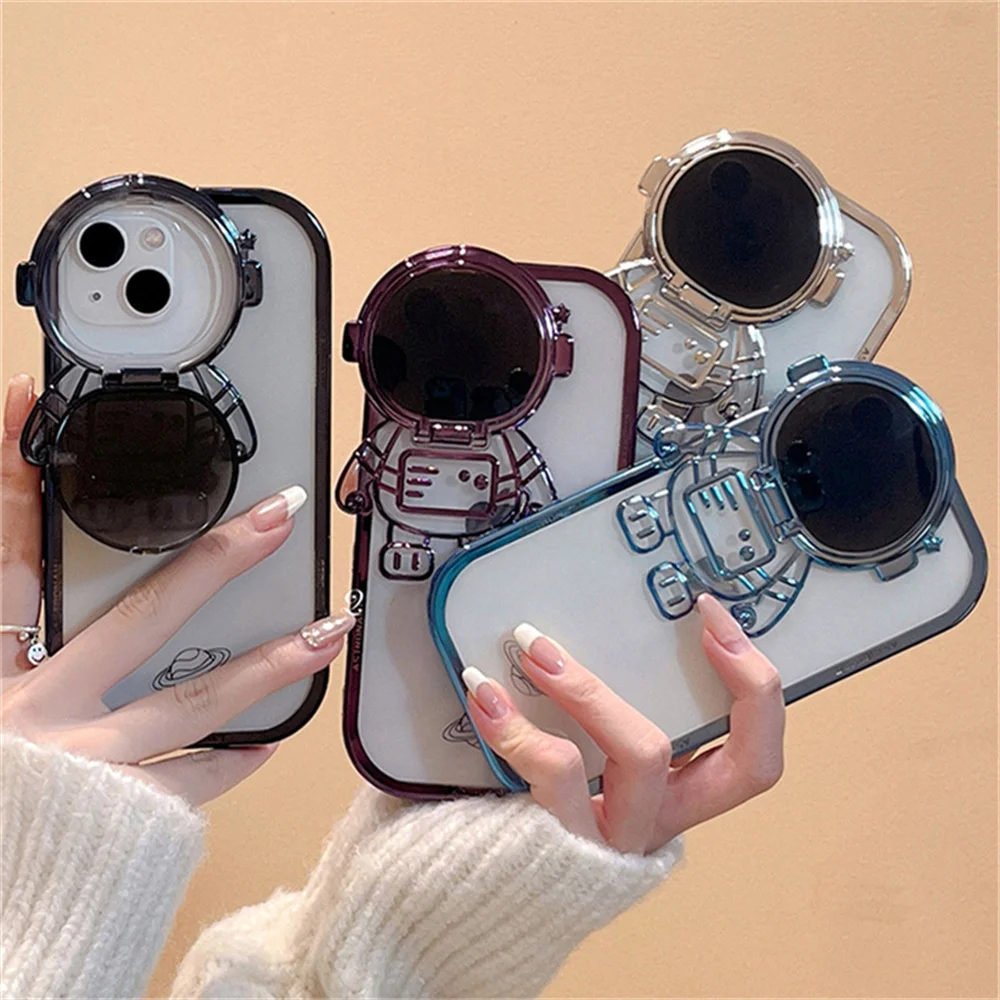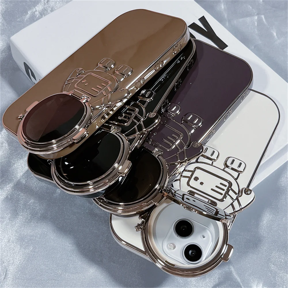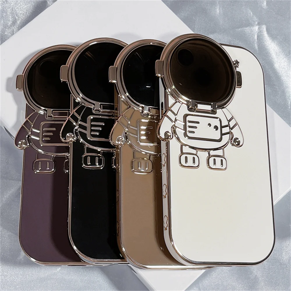 Electroplated Astronaut Bracket Camera Protection Case For iPhone 14 13 12 series