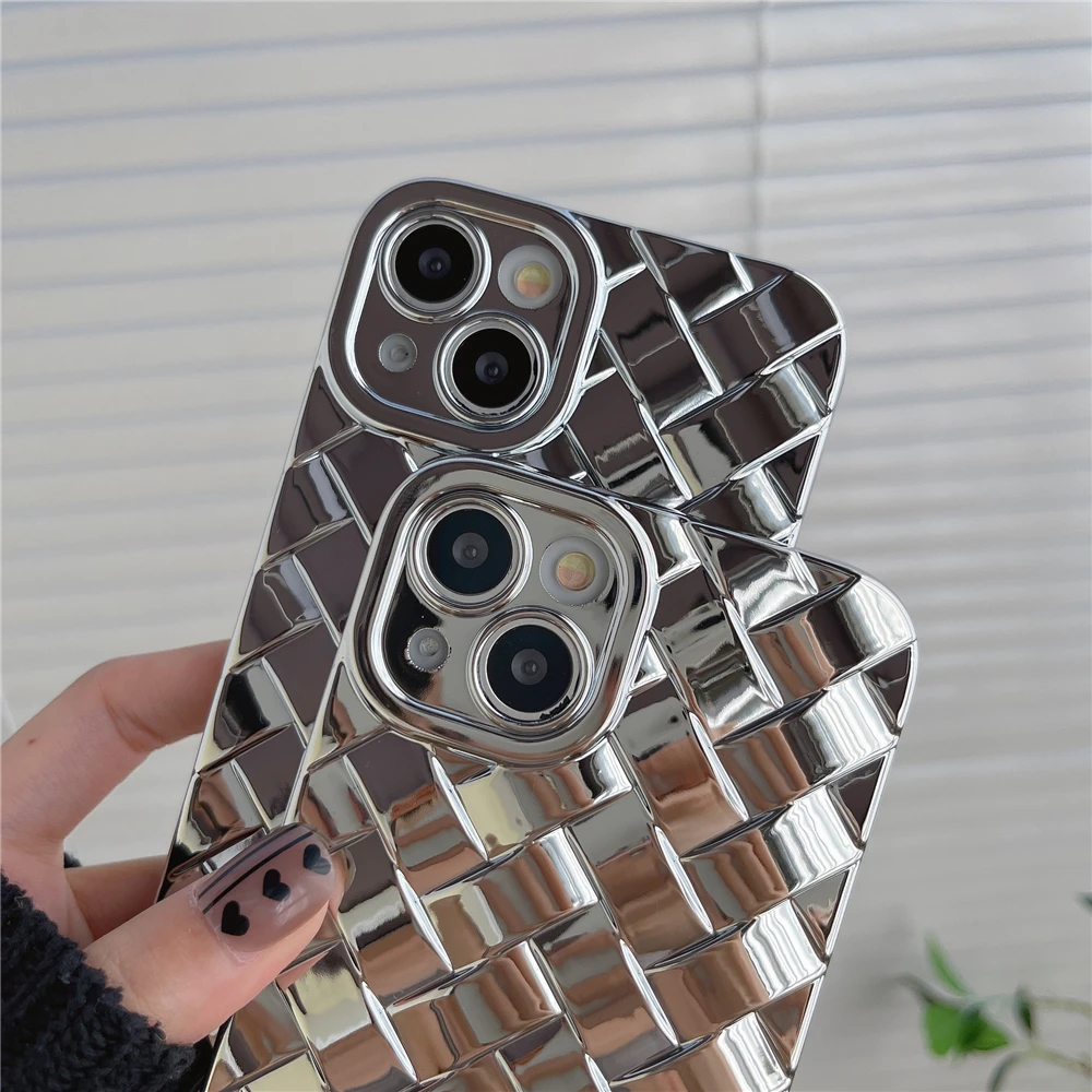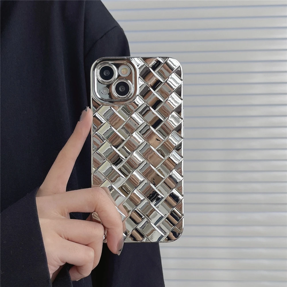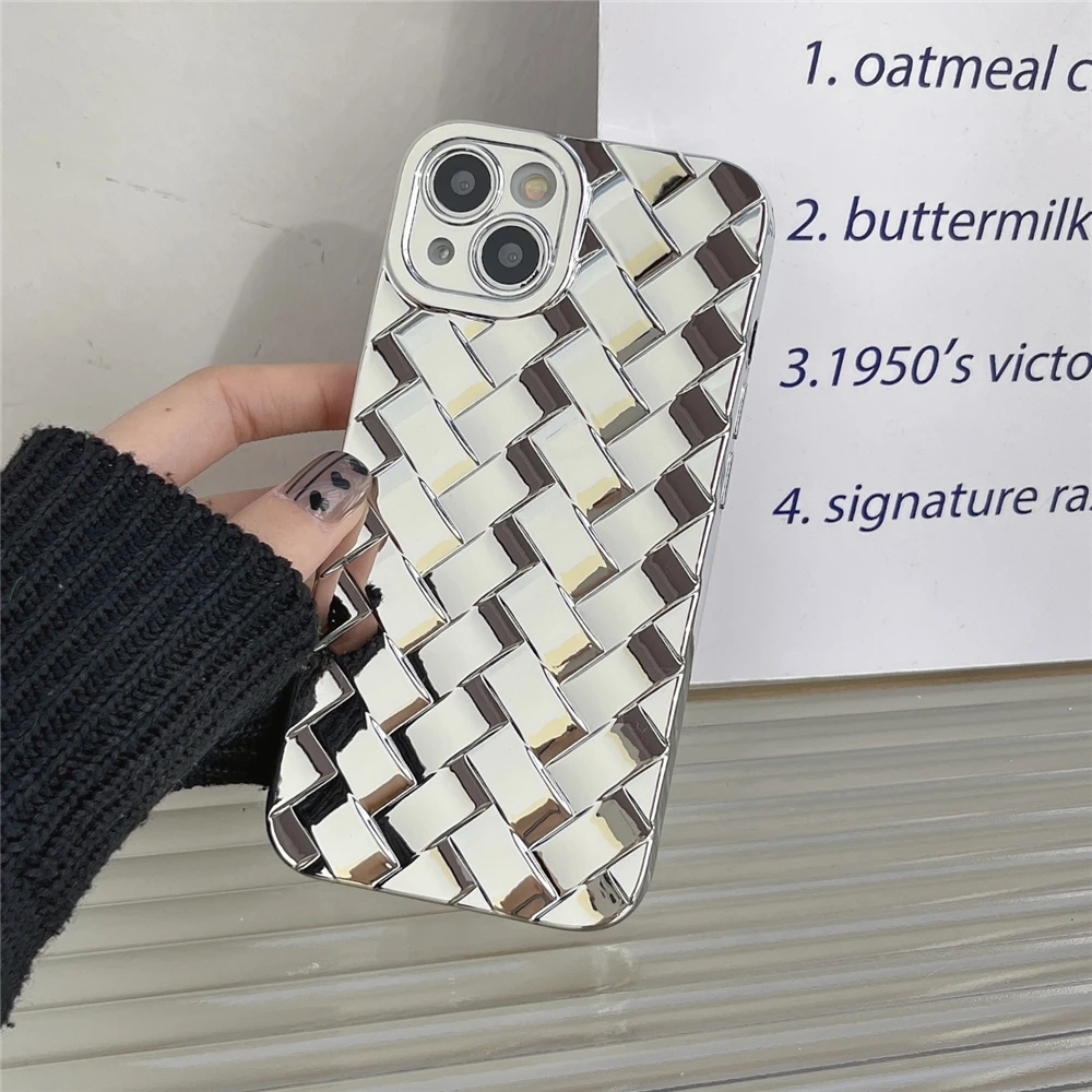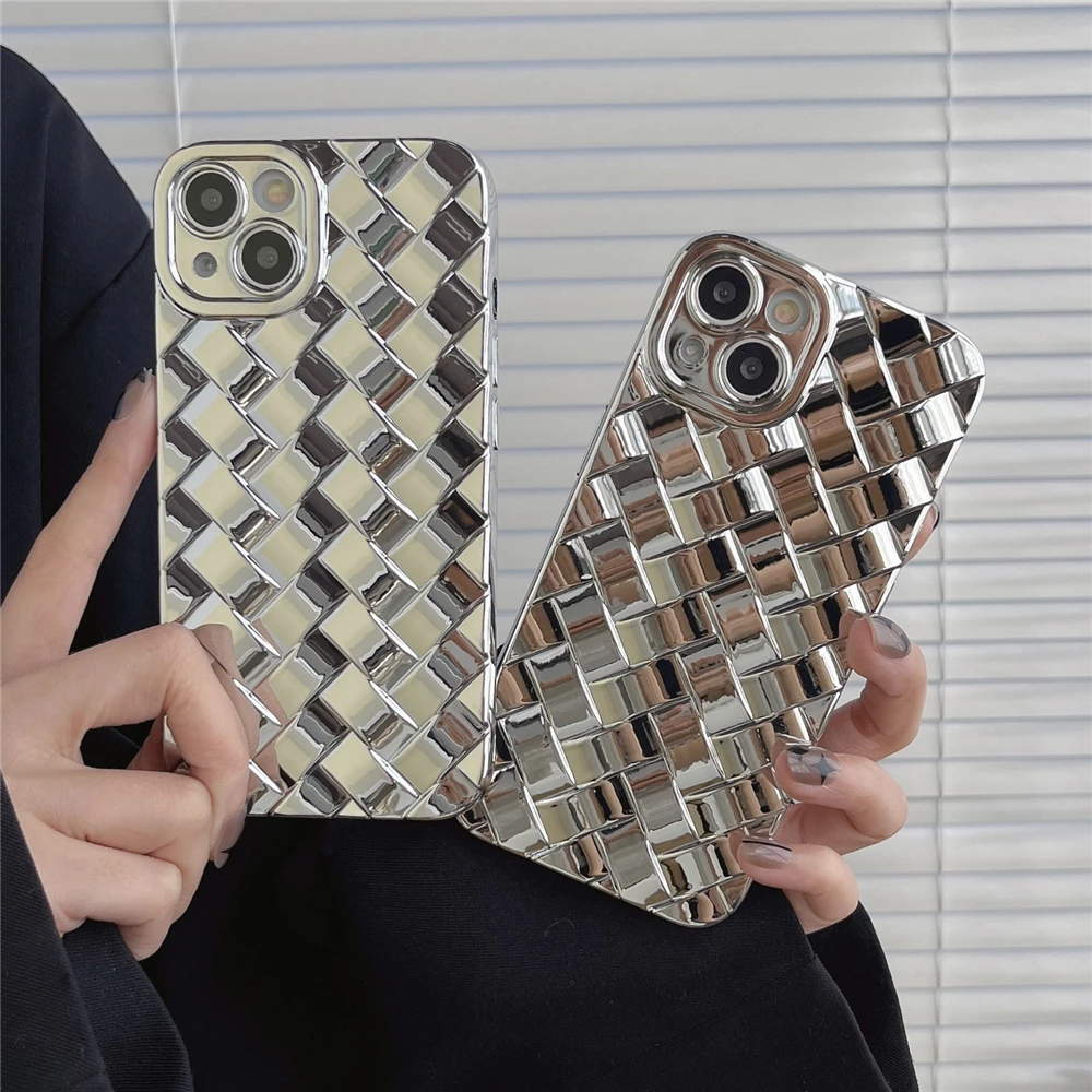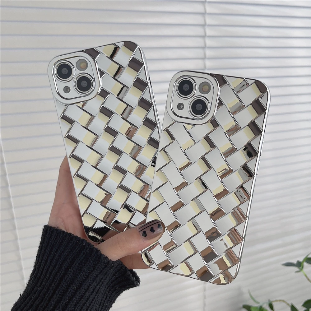 Electroplated Grid Weave Pattern Silicone Case for iPhone 14 13 12 series