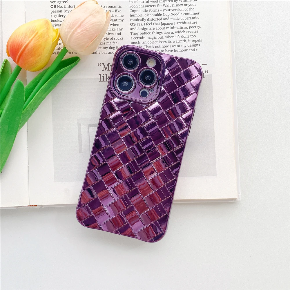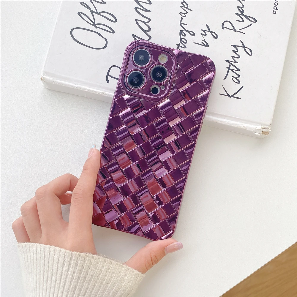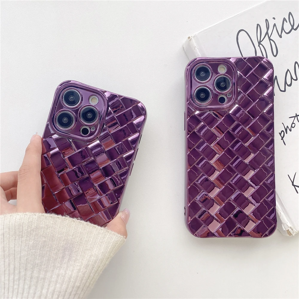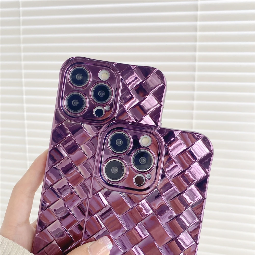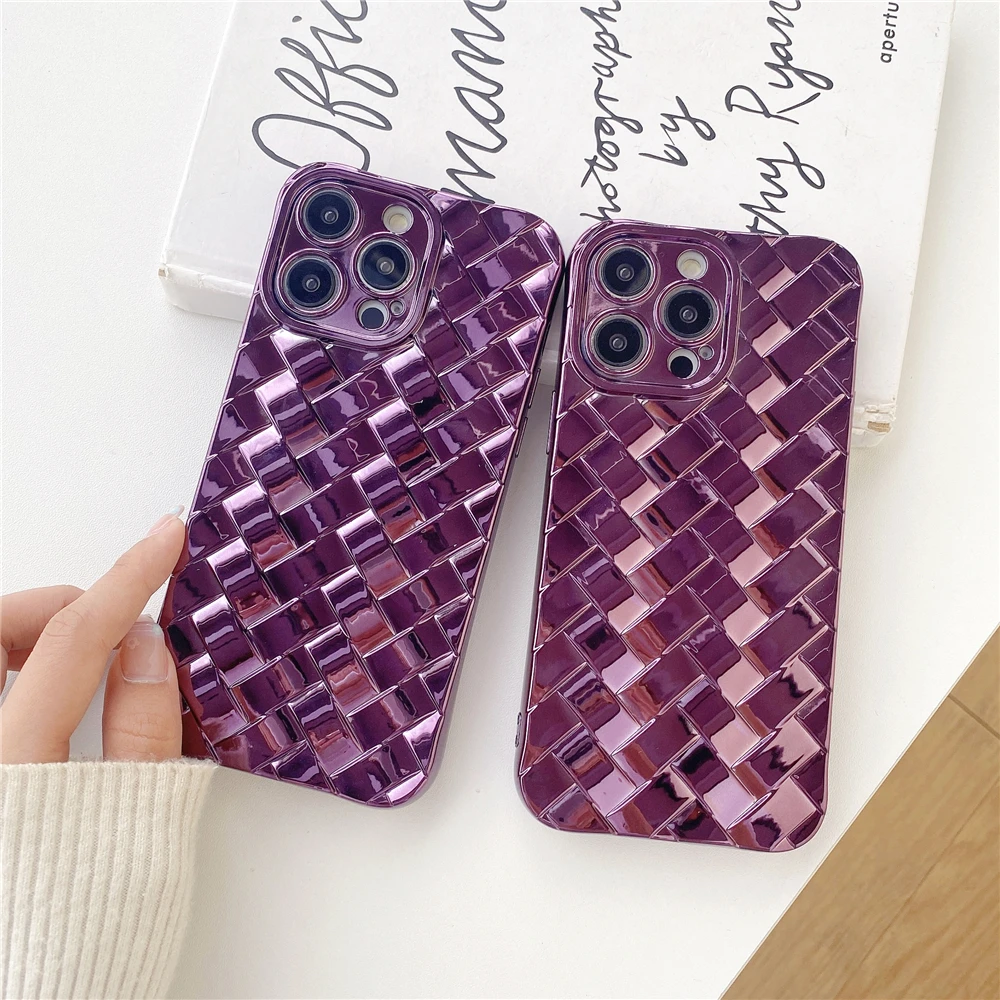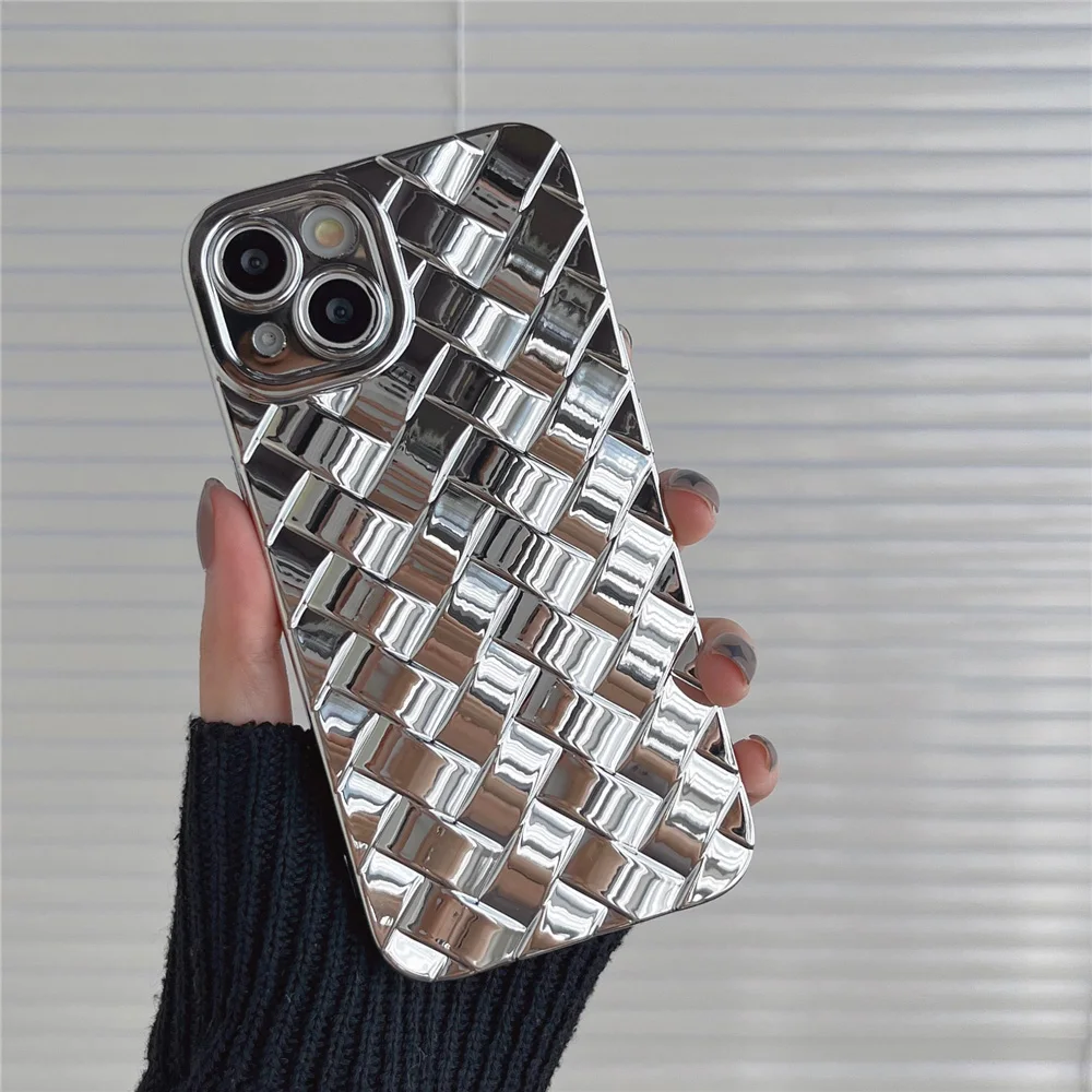 Electroplated Grid Weave Pattern Silicone Case for iPhone 14 13 12 series