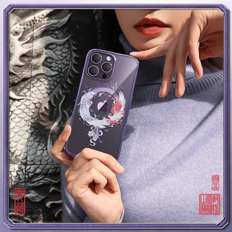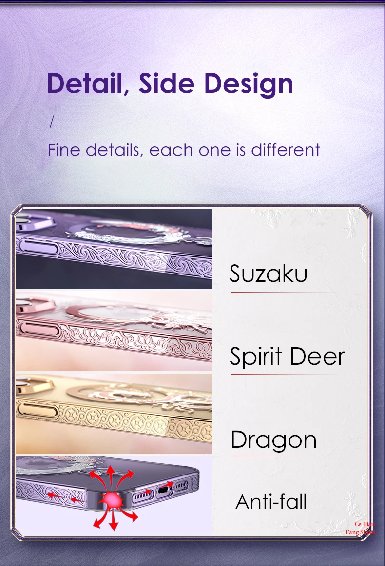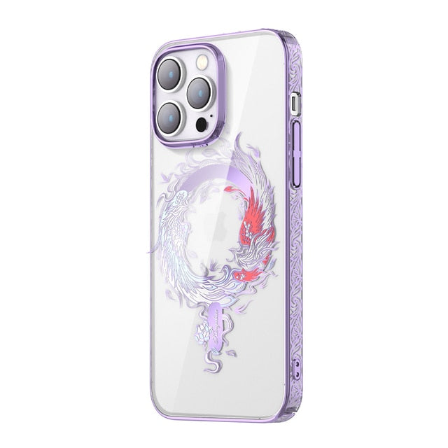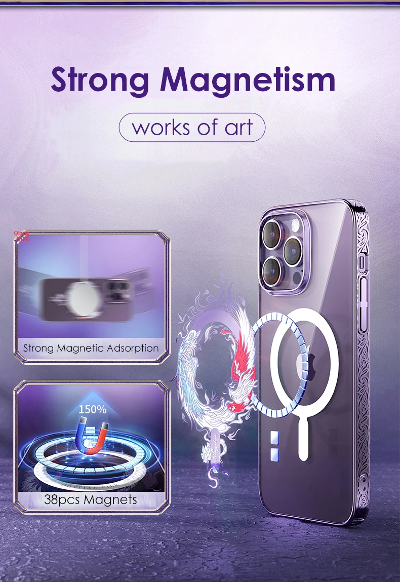 Electroplating Frame Dragon Phoenix Magsafe Wireless Charger Case For iPhone 14 series