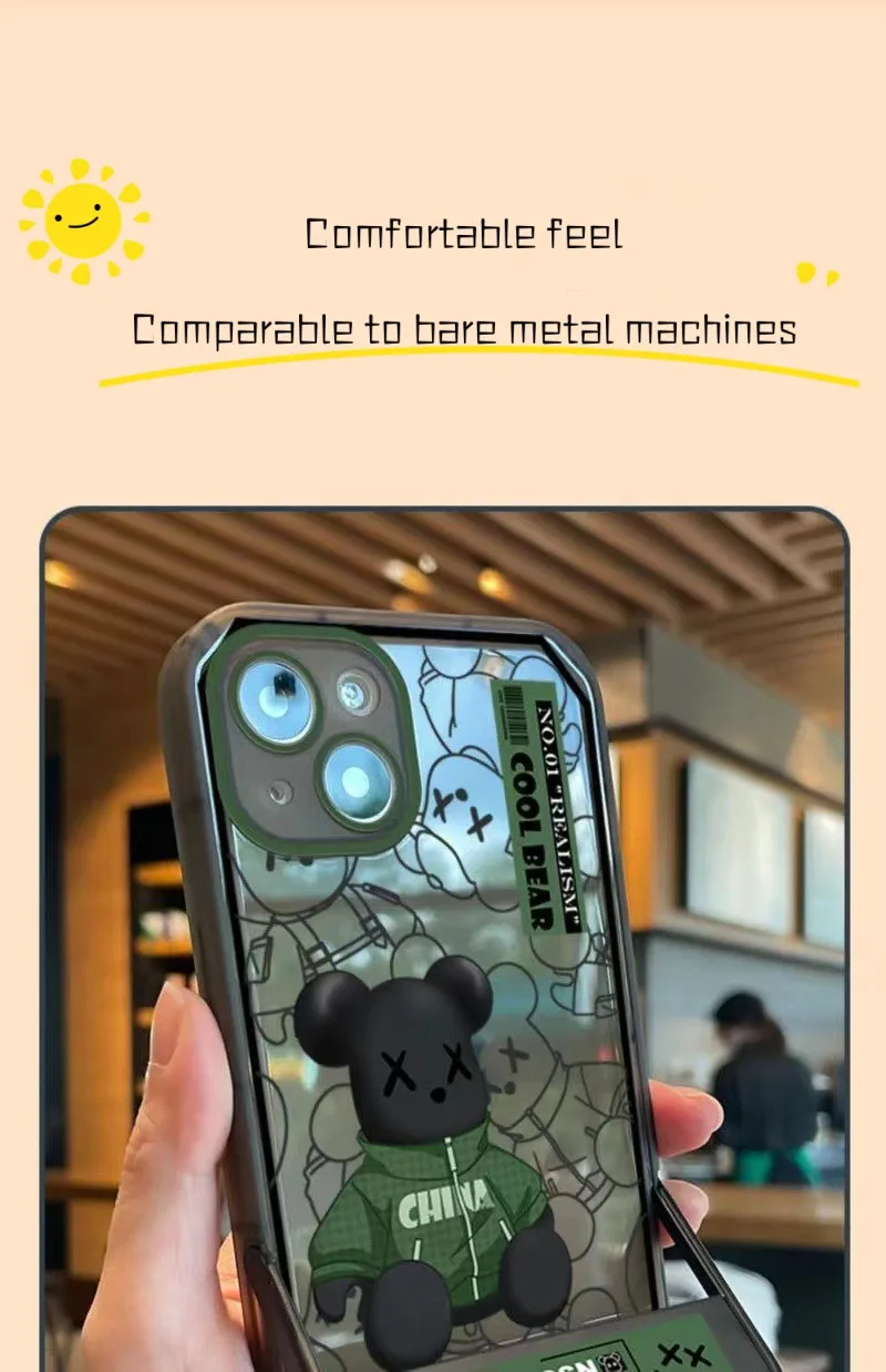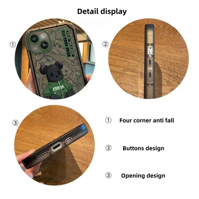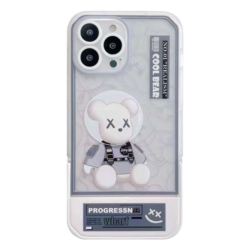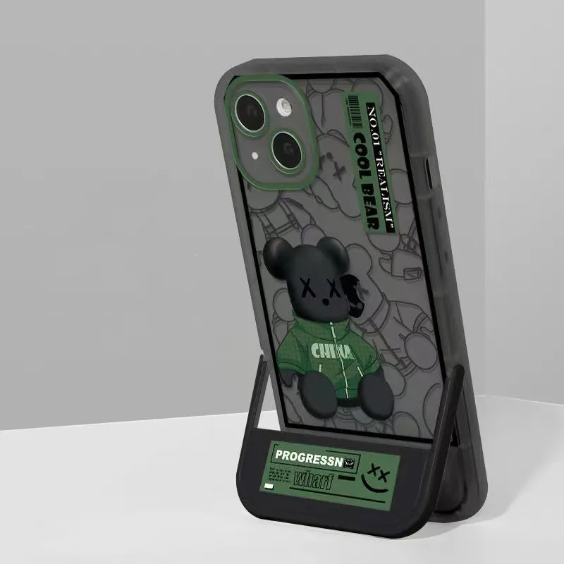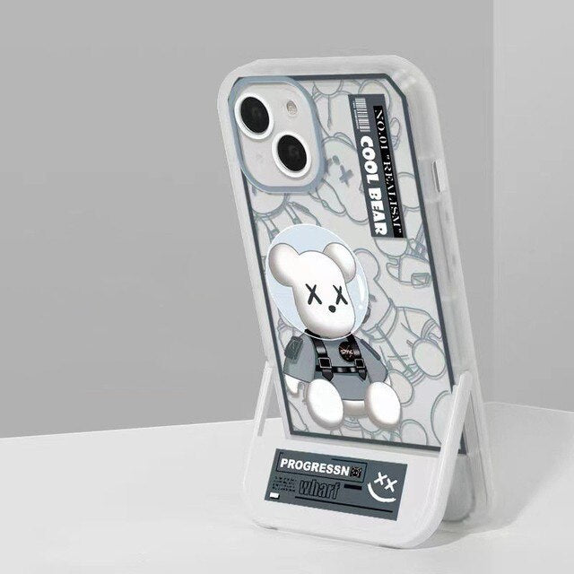 Fashion Bear Pattern Case With Invisible Holder For iPhone 14 13 12 series