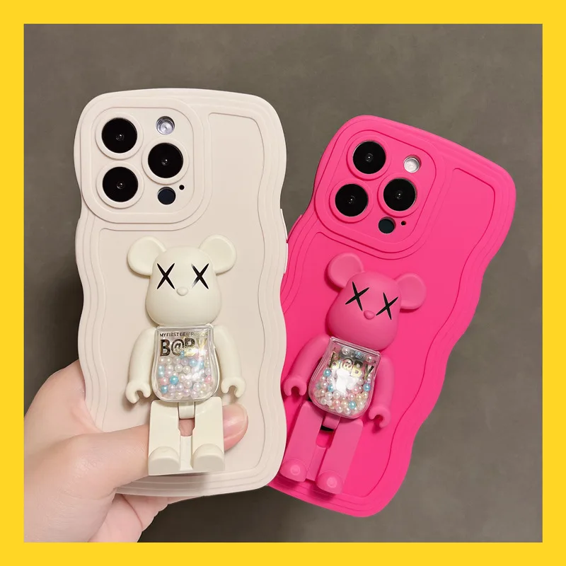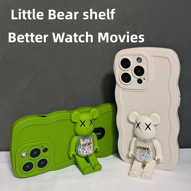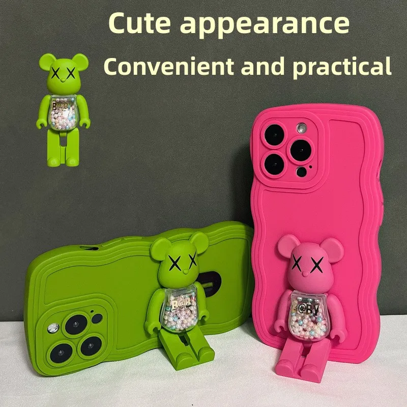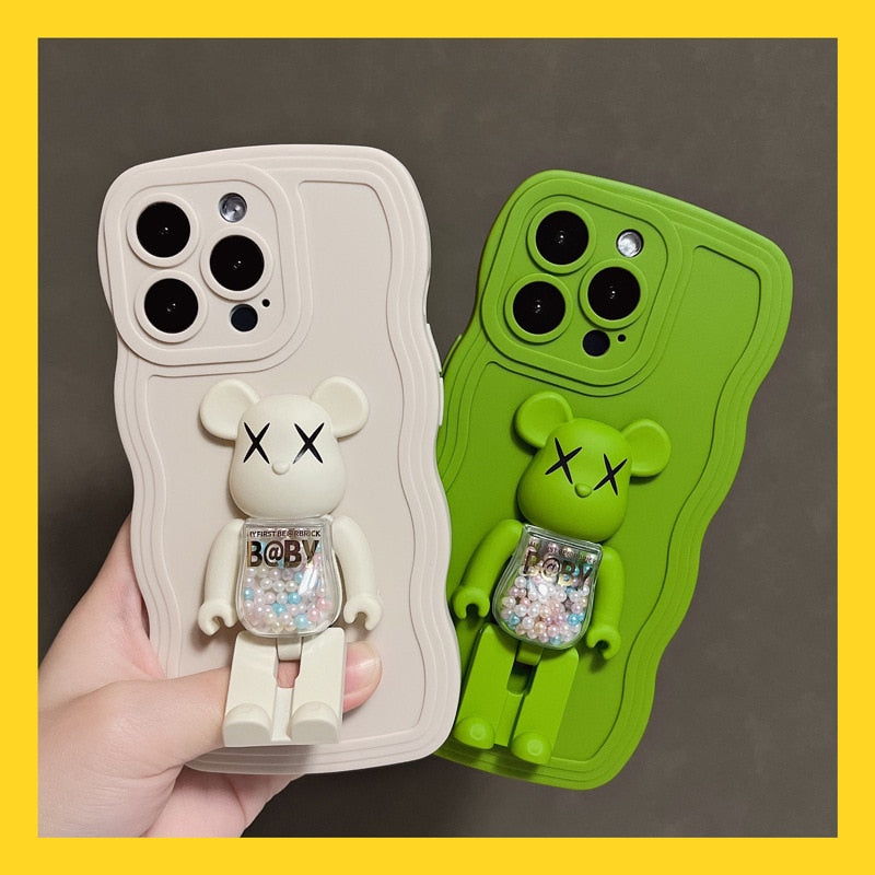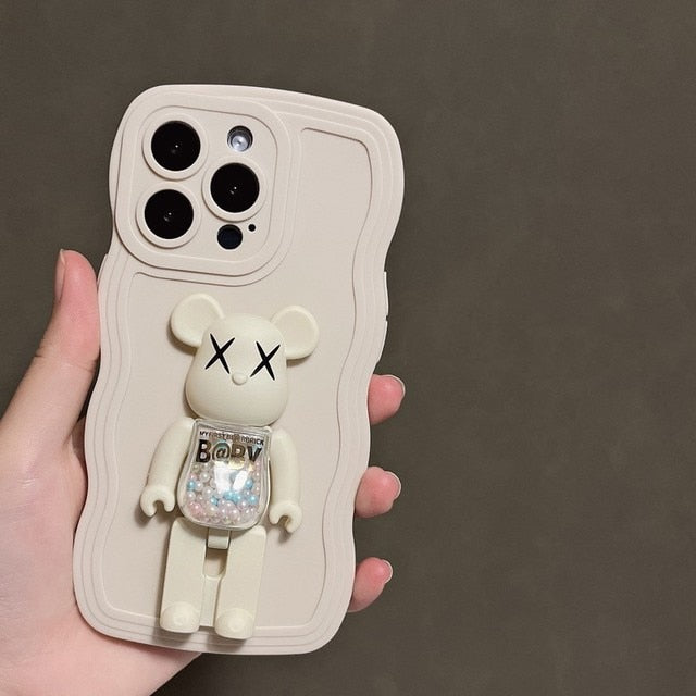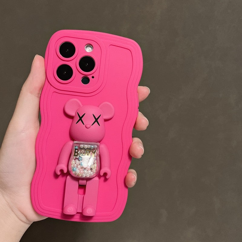 Fashion Color Soft Silicone With BearBrick Foldable Stand For iPhone 14 13 12 series
