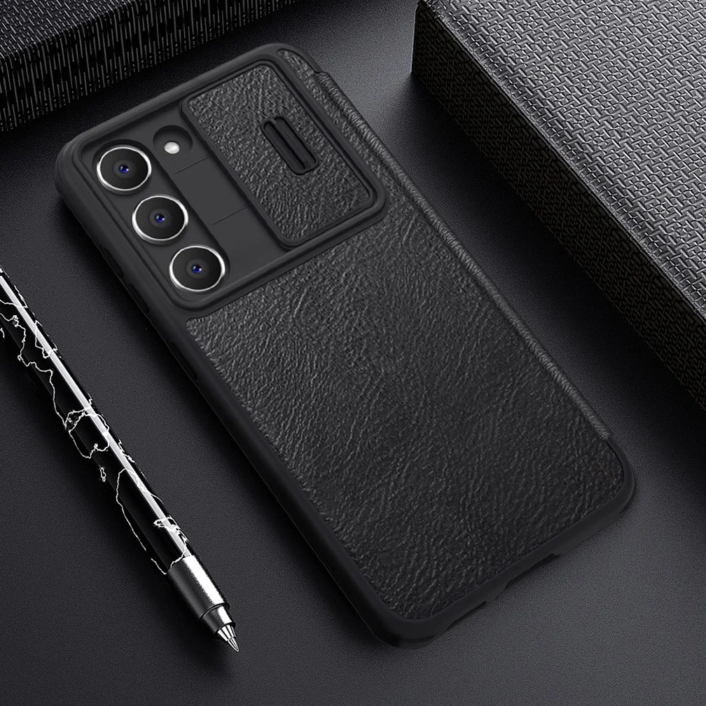 Flip Leather Card Slot Case with Slide Camera Cover For Samsung S23 Ultra Plus
