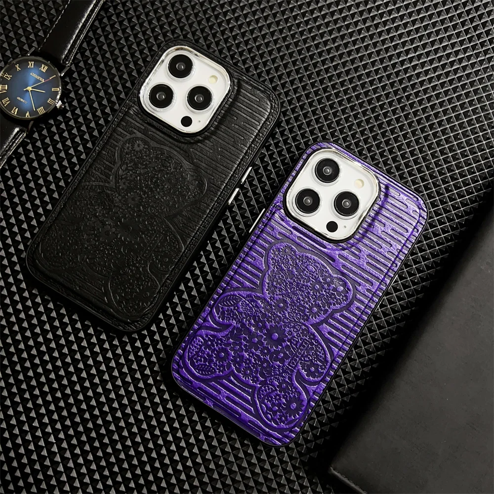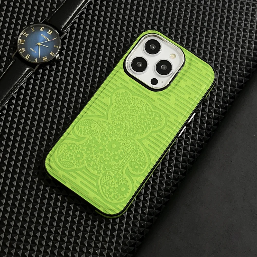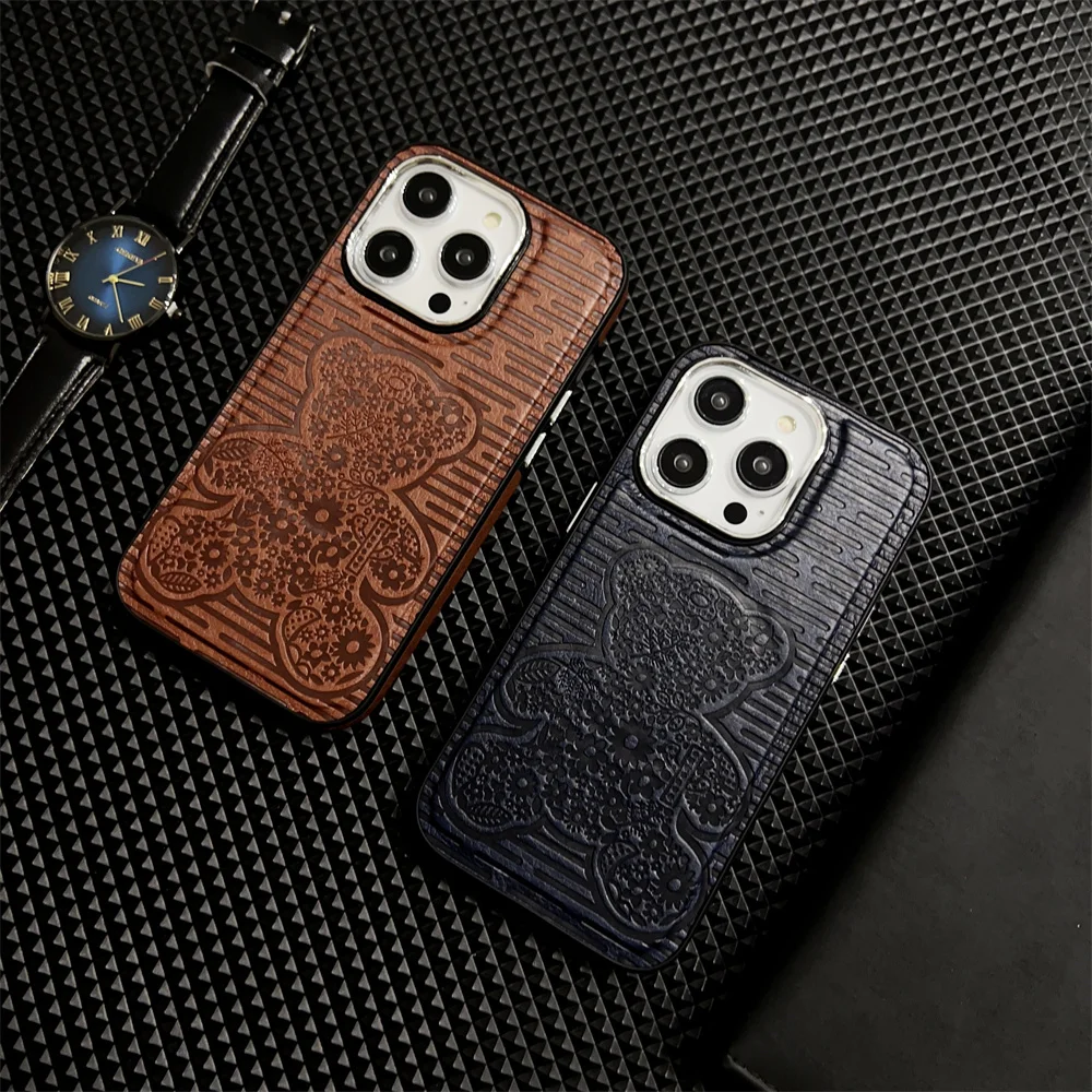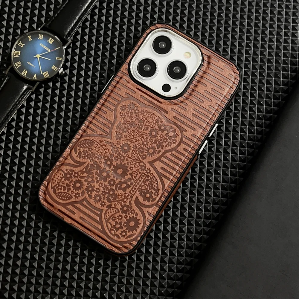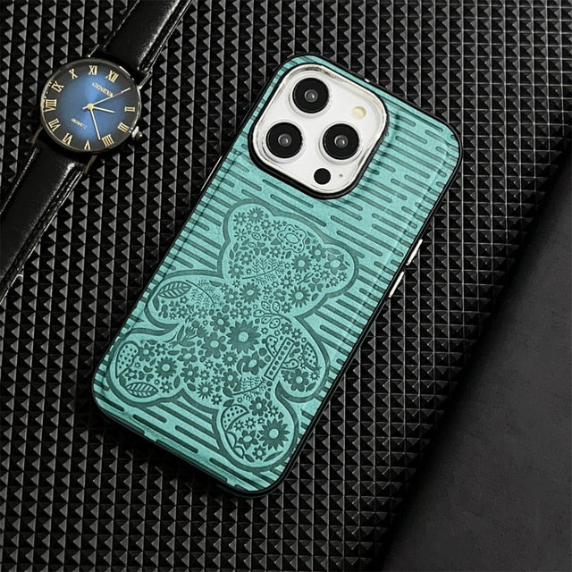 Flower Bear Leather Magsafe Wireless Charging Case For iPhone 14 13 12 series