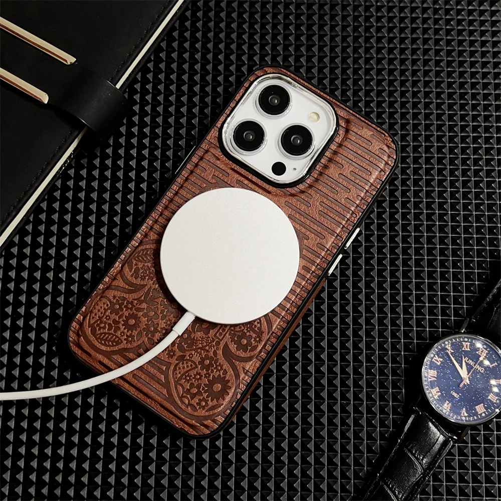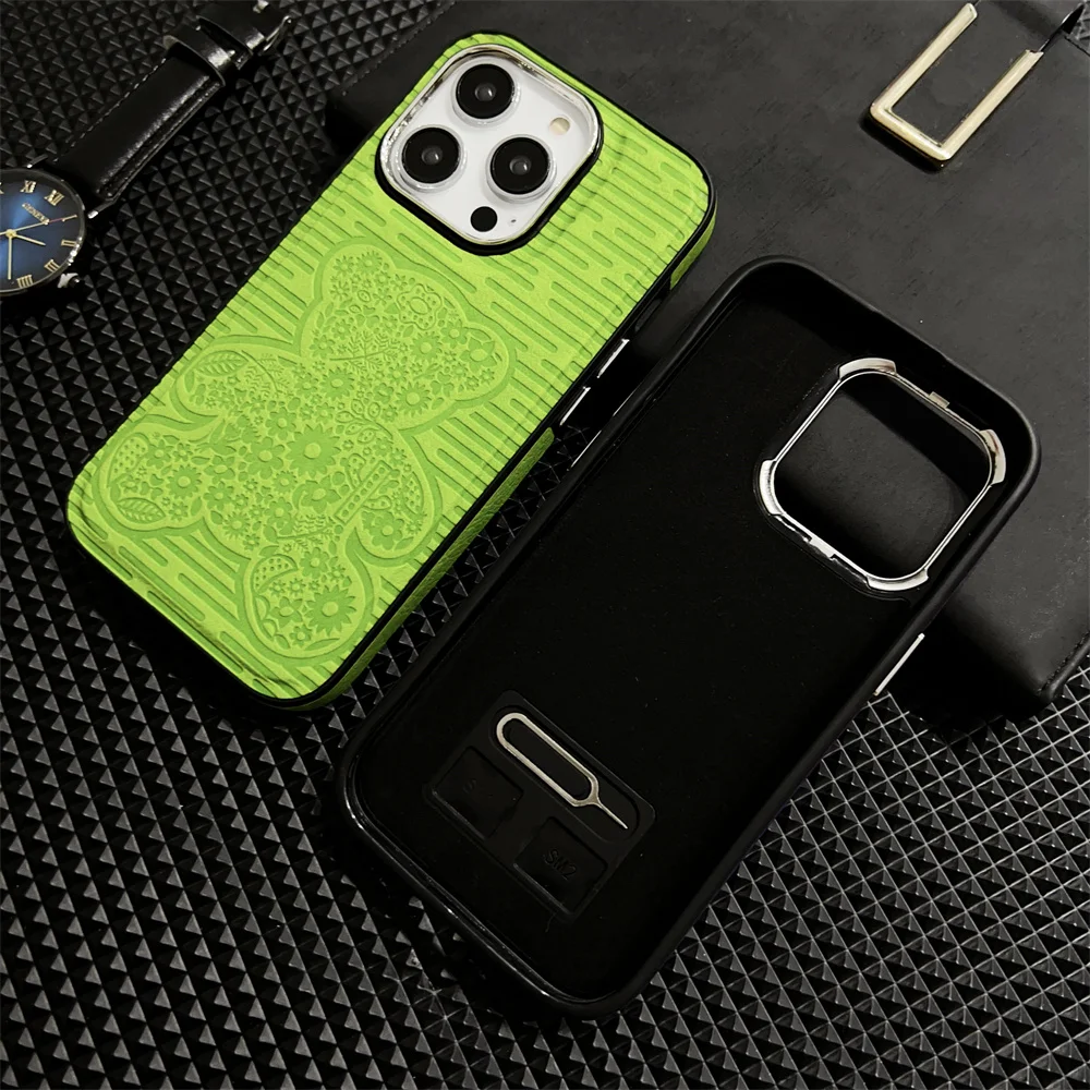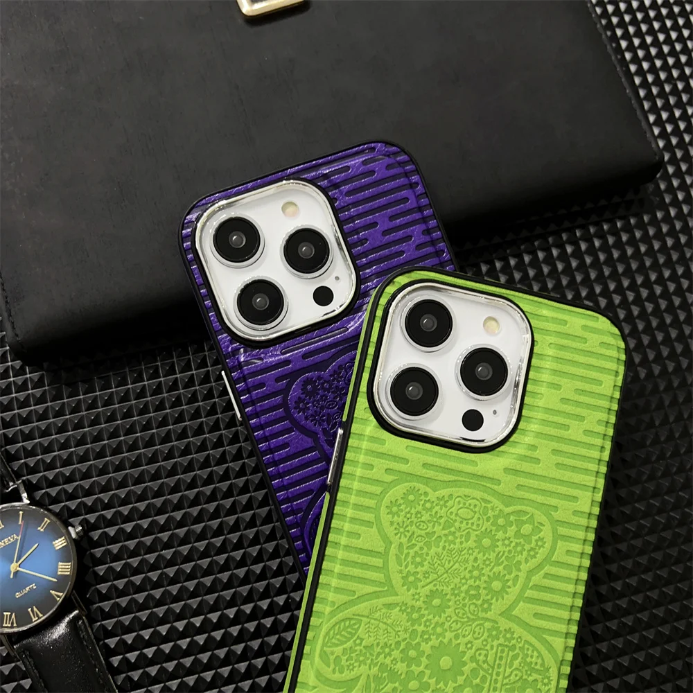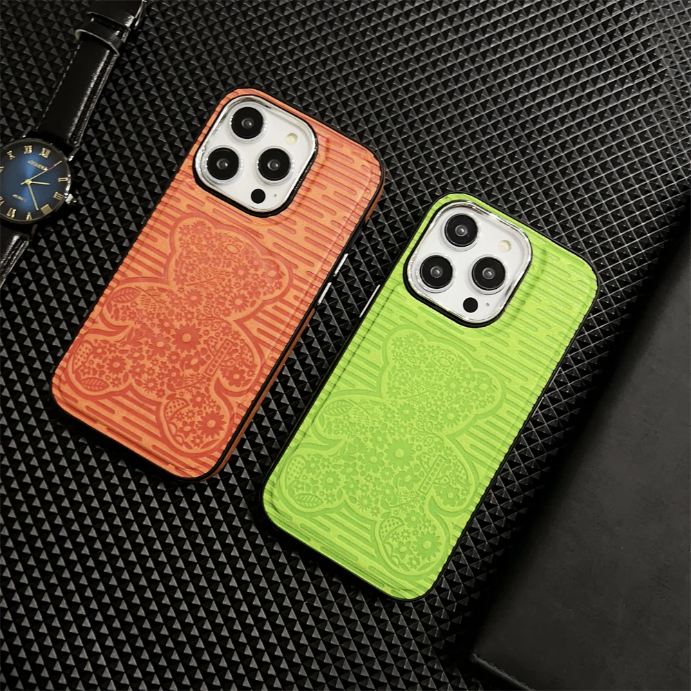 Flower Bear Leather Magsafe Wireless Charging Case For iPhone 14 13 12 series