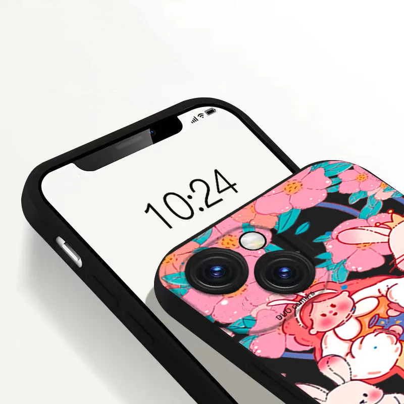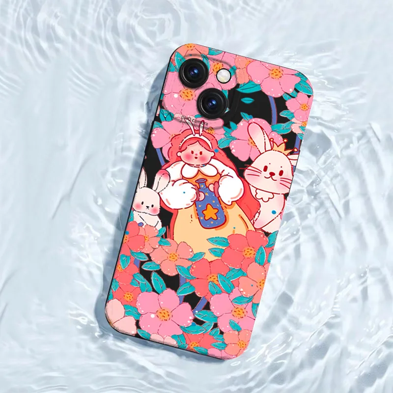 Flower Blossom Girl Shockproof Bumper Matte Silicone Case For iPhone 14 13 12 series