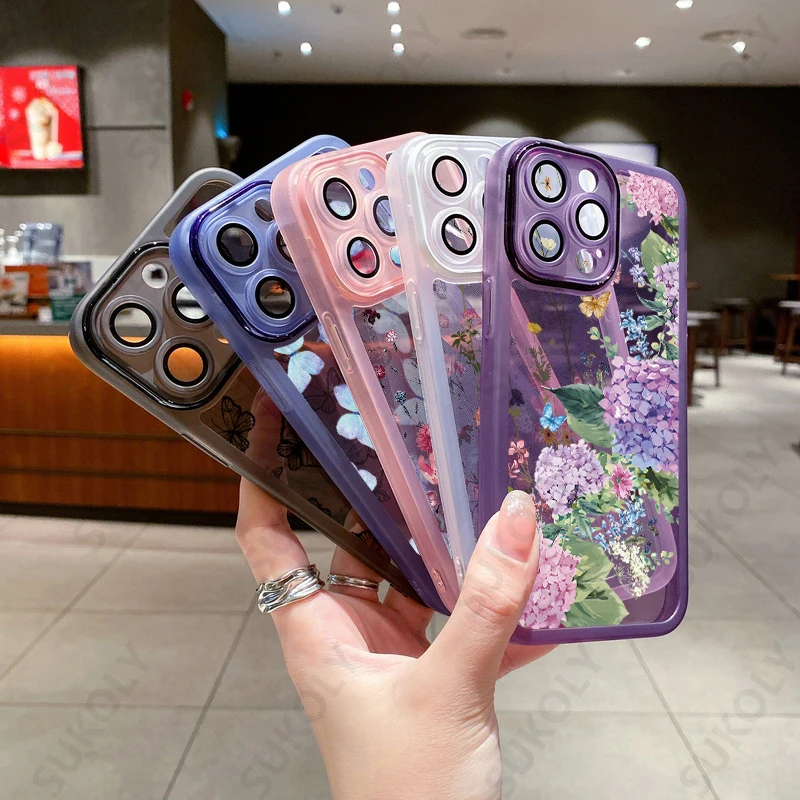 Flower Lens Camera Protection Shockproof Soft Silicone Case For iPhone 15 14 13 series