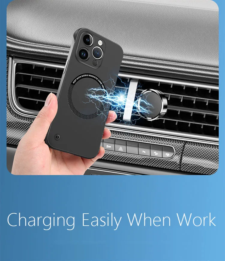 Frameless Magnetic Wireless Charging Magsafe Slim Hard Case For iPhone 15 14 13 12 series