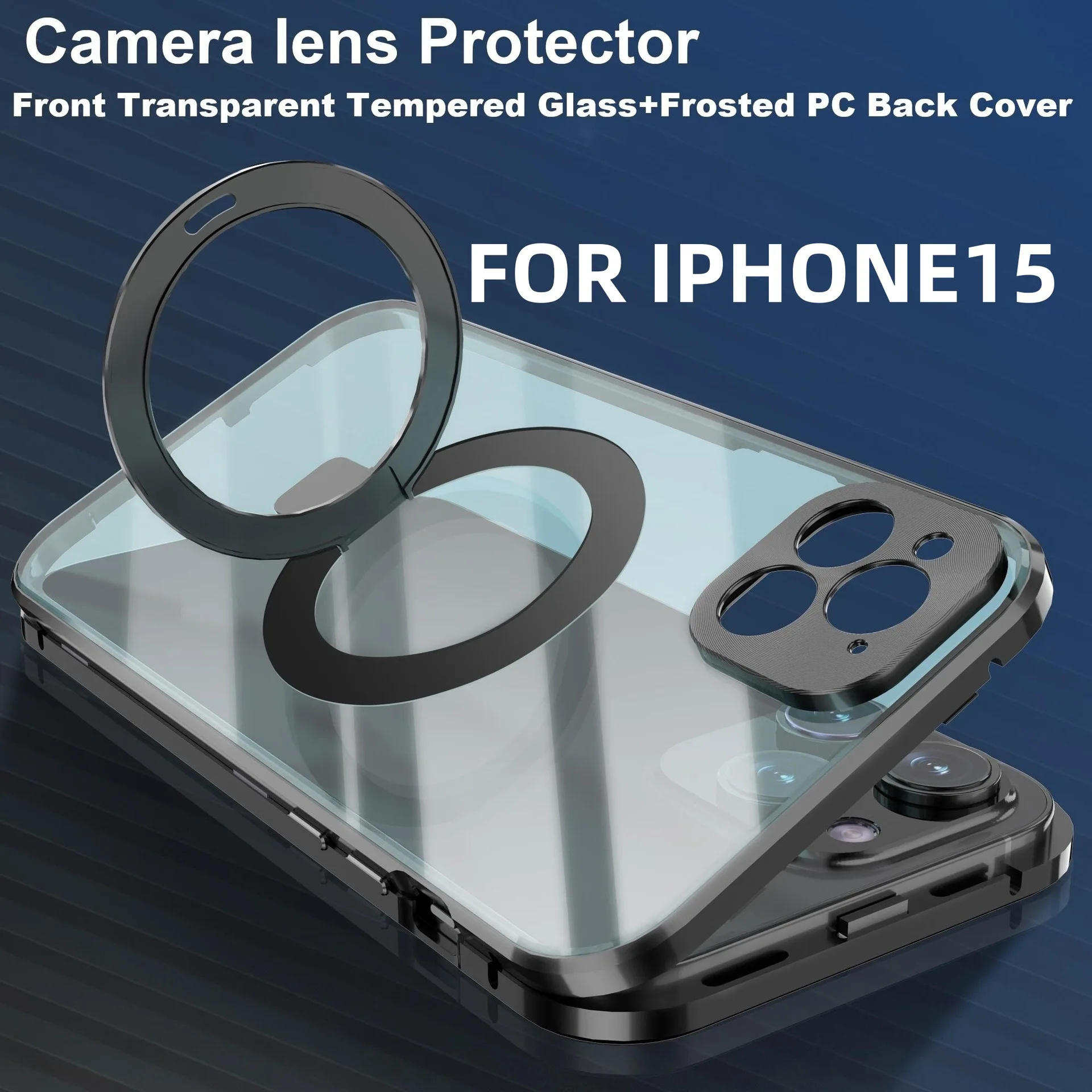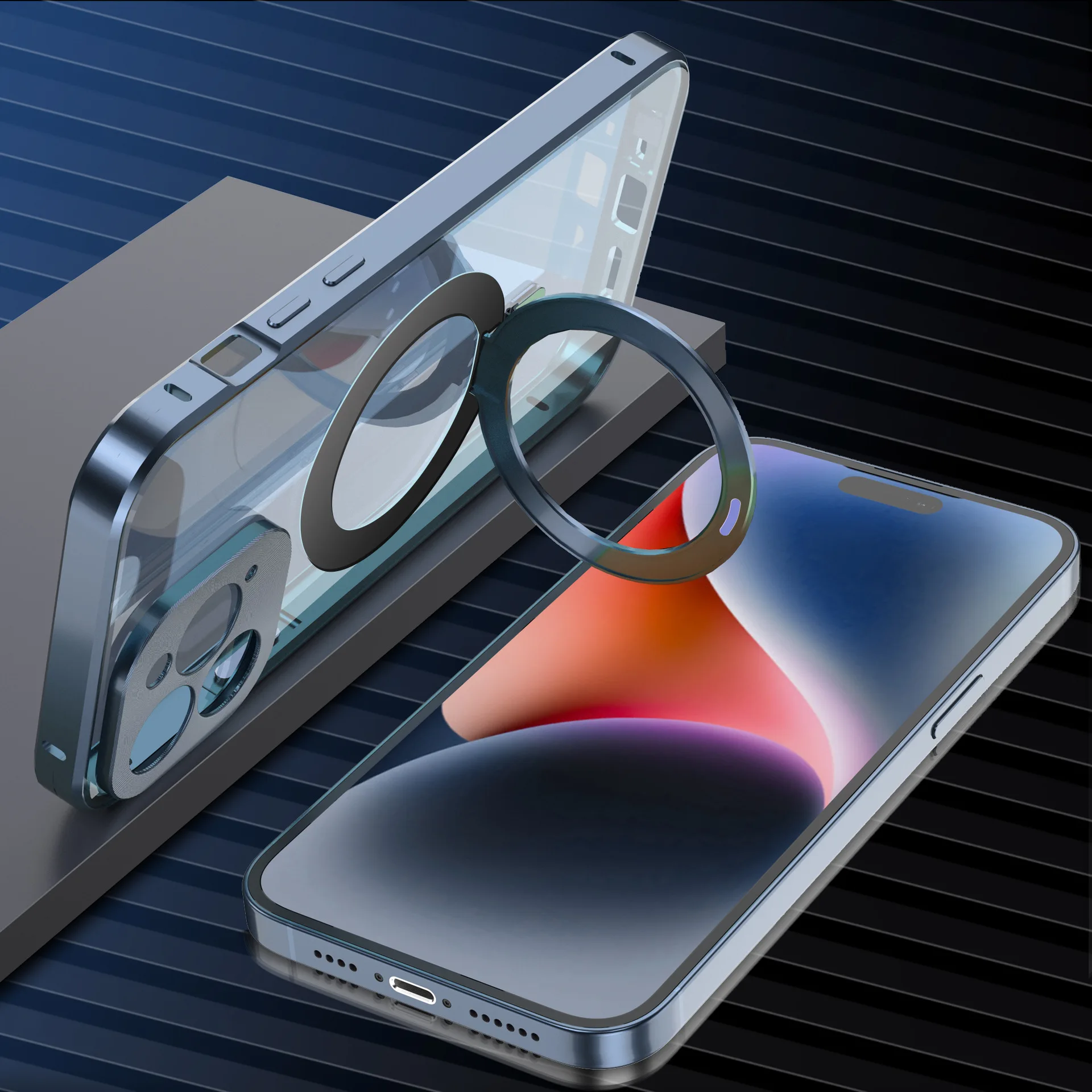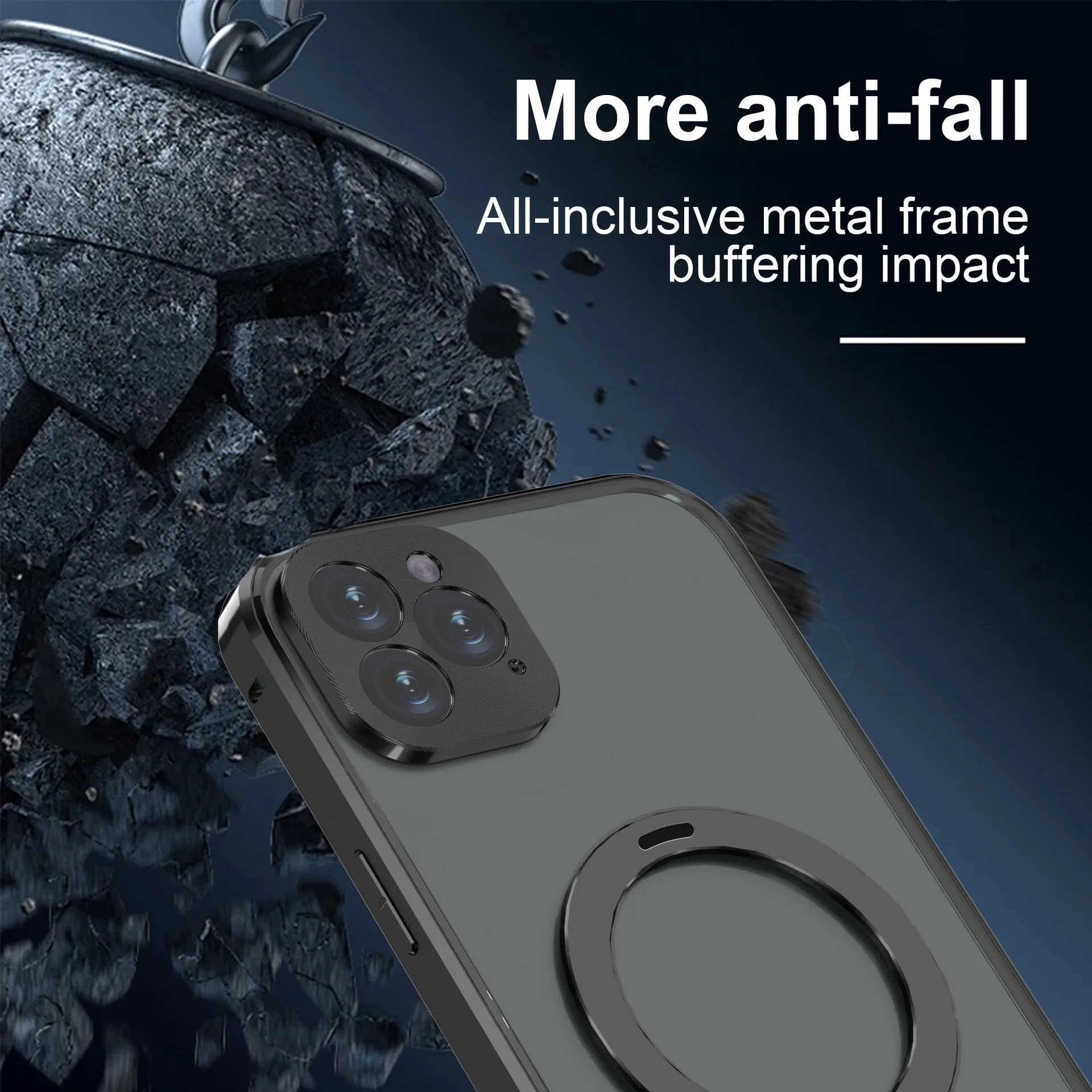 Full Screen Camera Protection Metal Rotate Kickstand Car Holder Charging Magsafe Case For iPhone 14 13 12 series