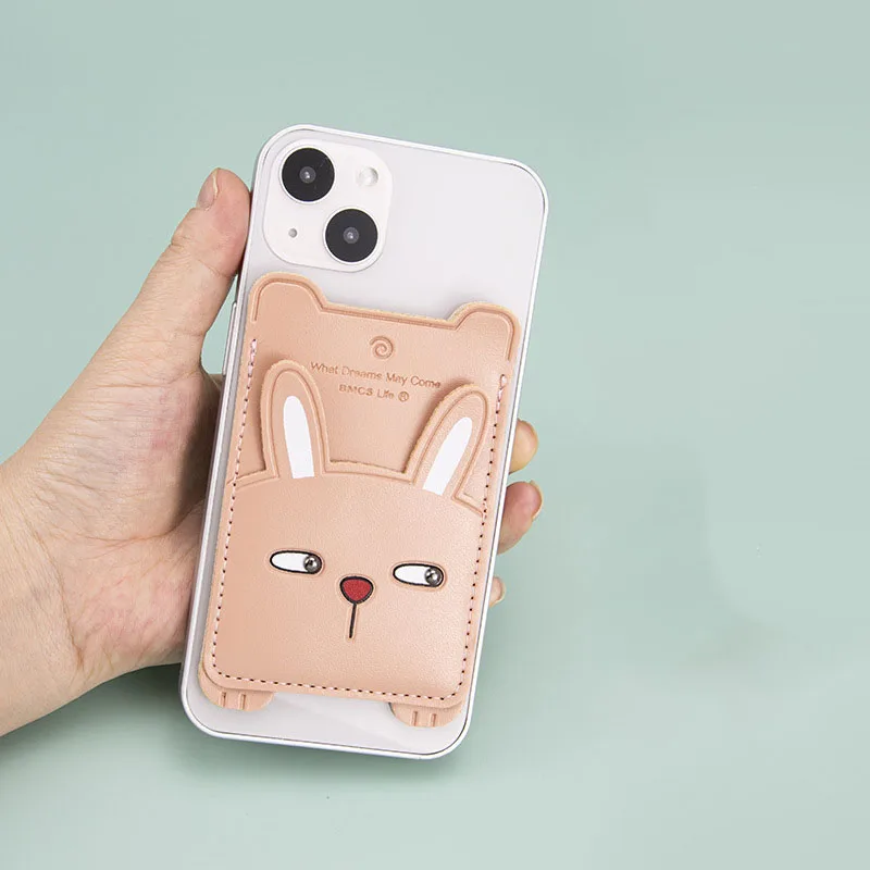 Fun Cute Animal Leather Back Portable Card Bag For iPhone 14 13 12 series