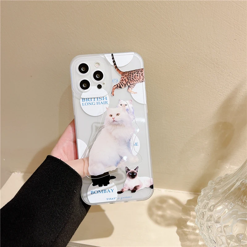Funny 3D Cat Stand Case for iPhone 13 12 11 Pro Max