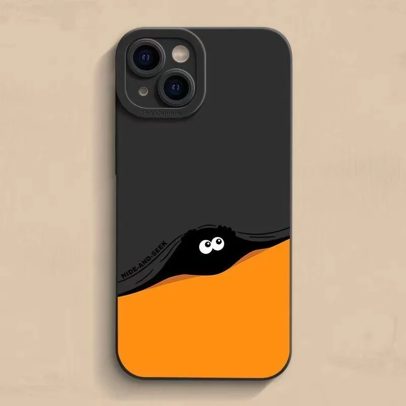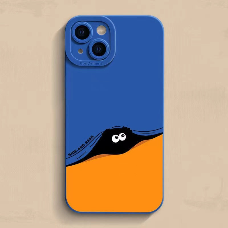 Funny Hide and Seek Color Block Silicone Soft Case For iPhone 14 13 12 series