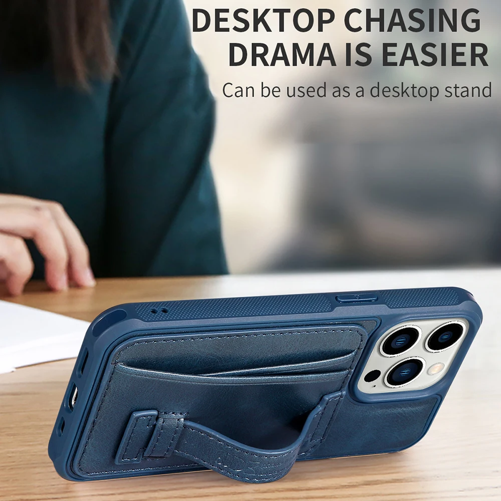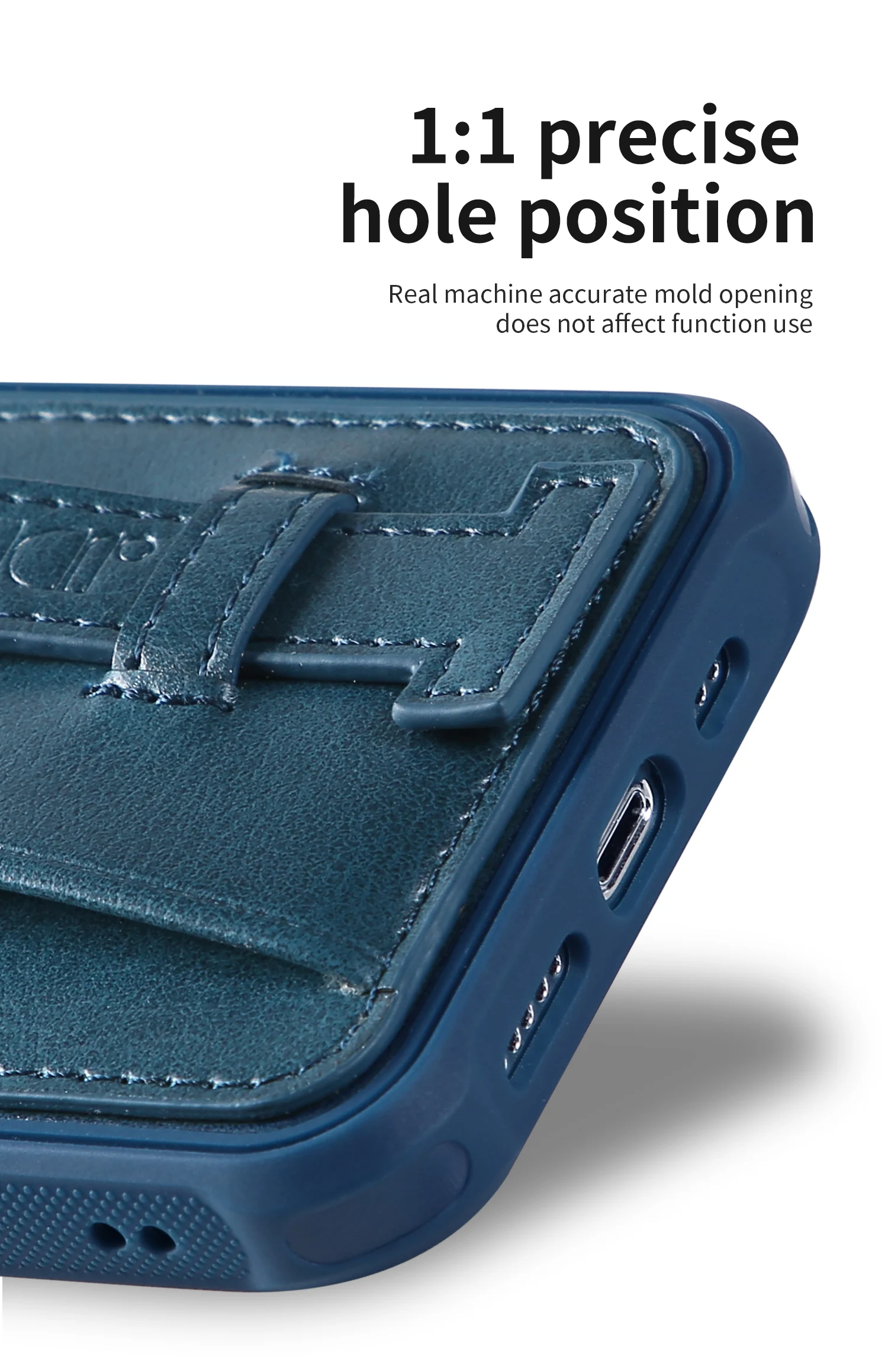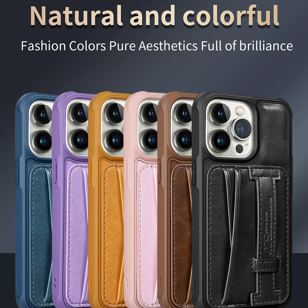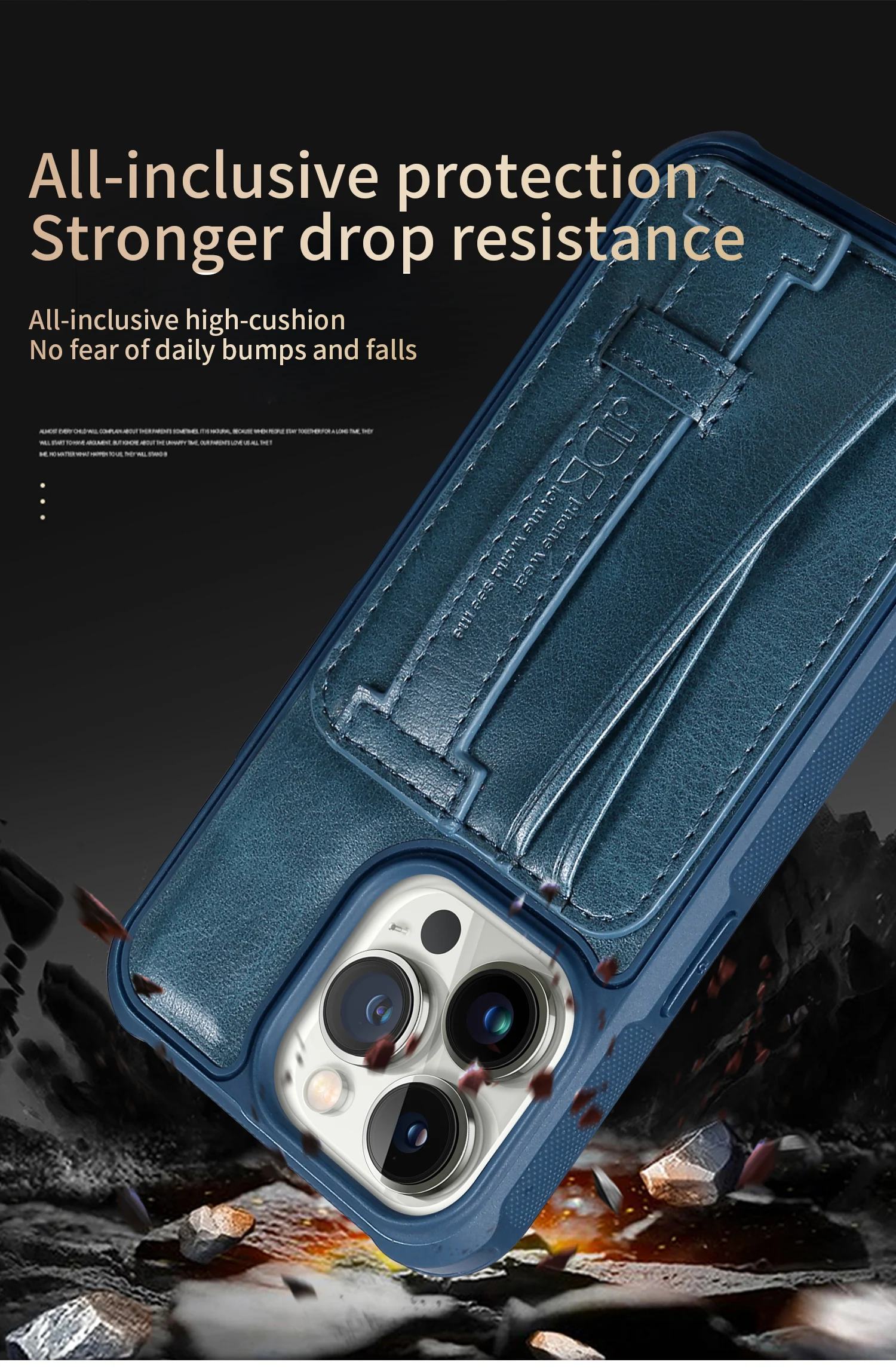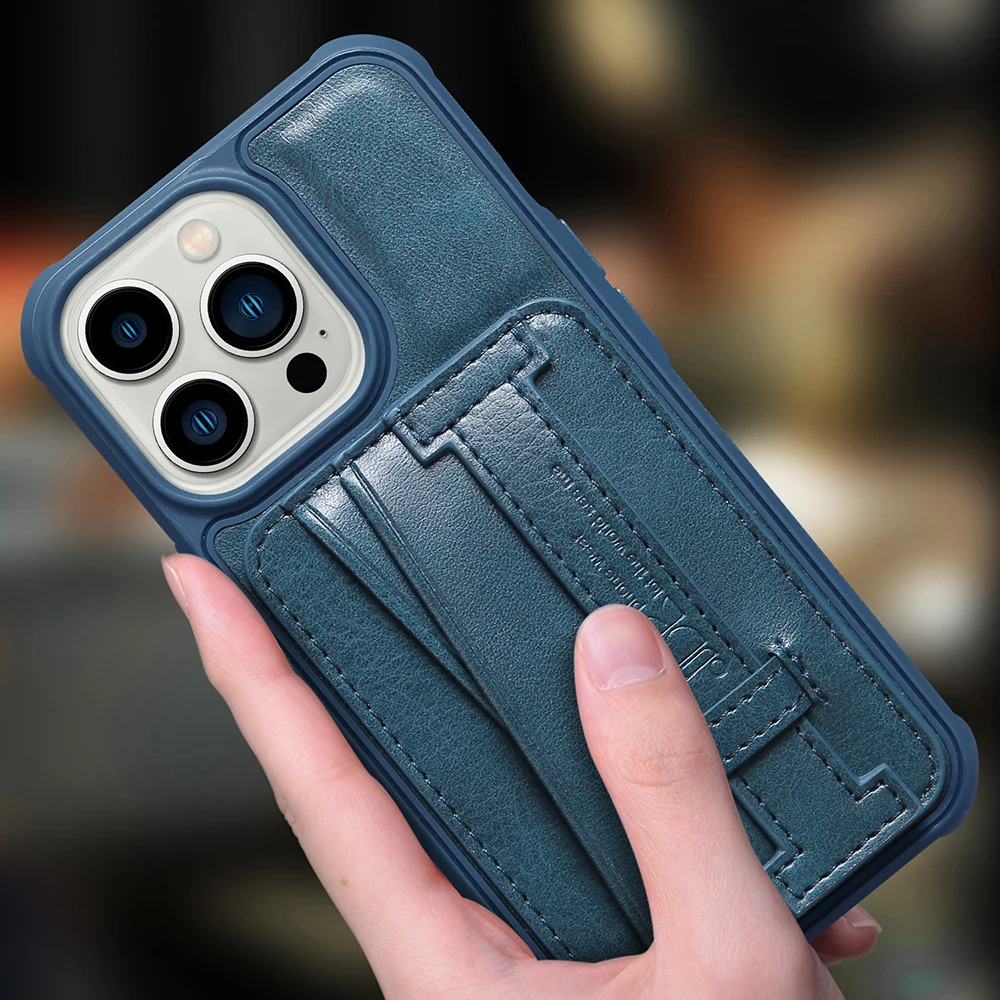 Genuine Leather Holder Ring Card Pocket Case for iPhone 13 12 11 Pro Max Mini