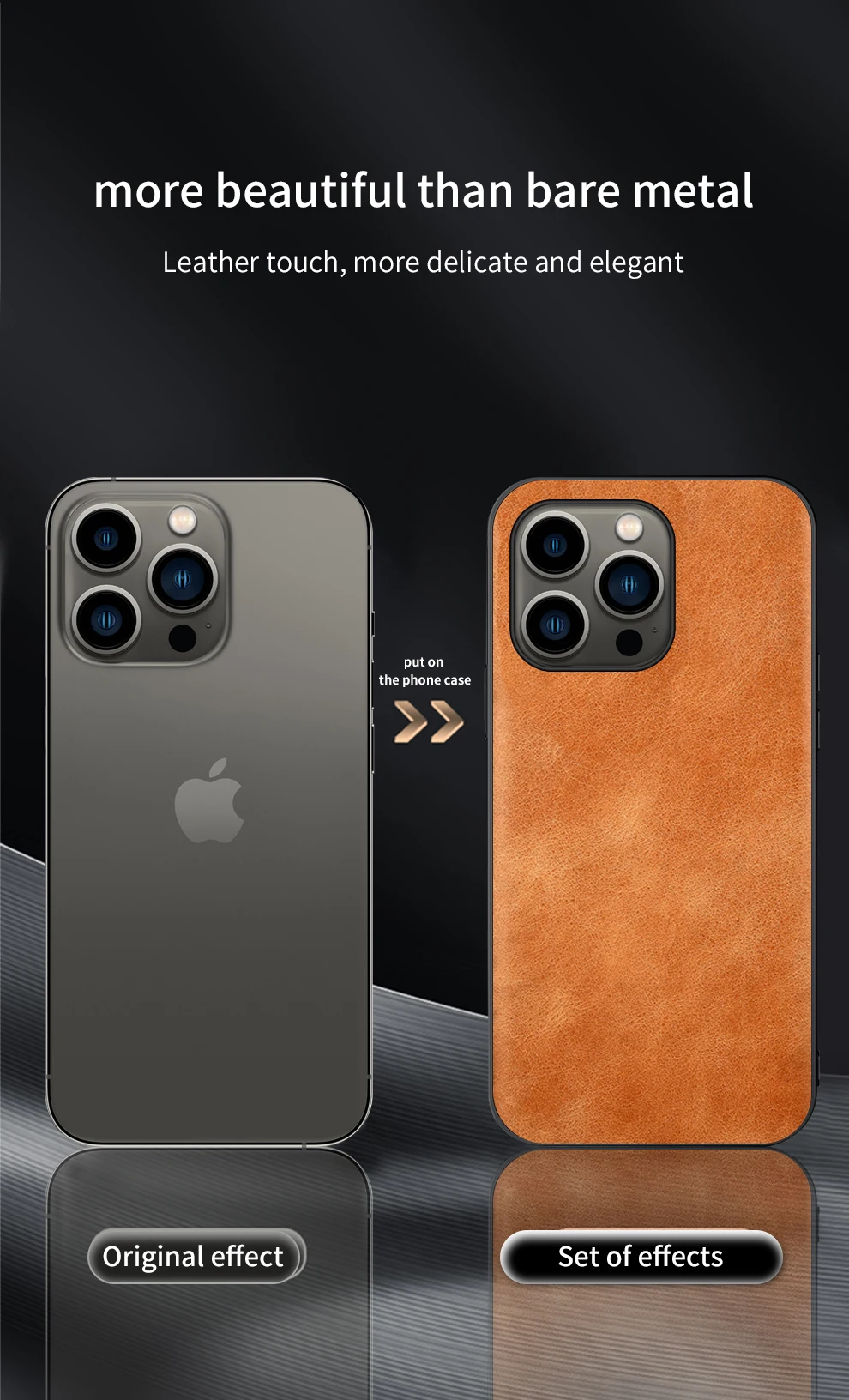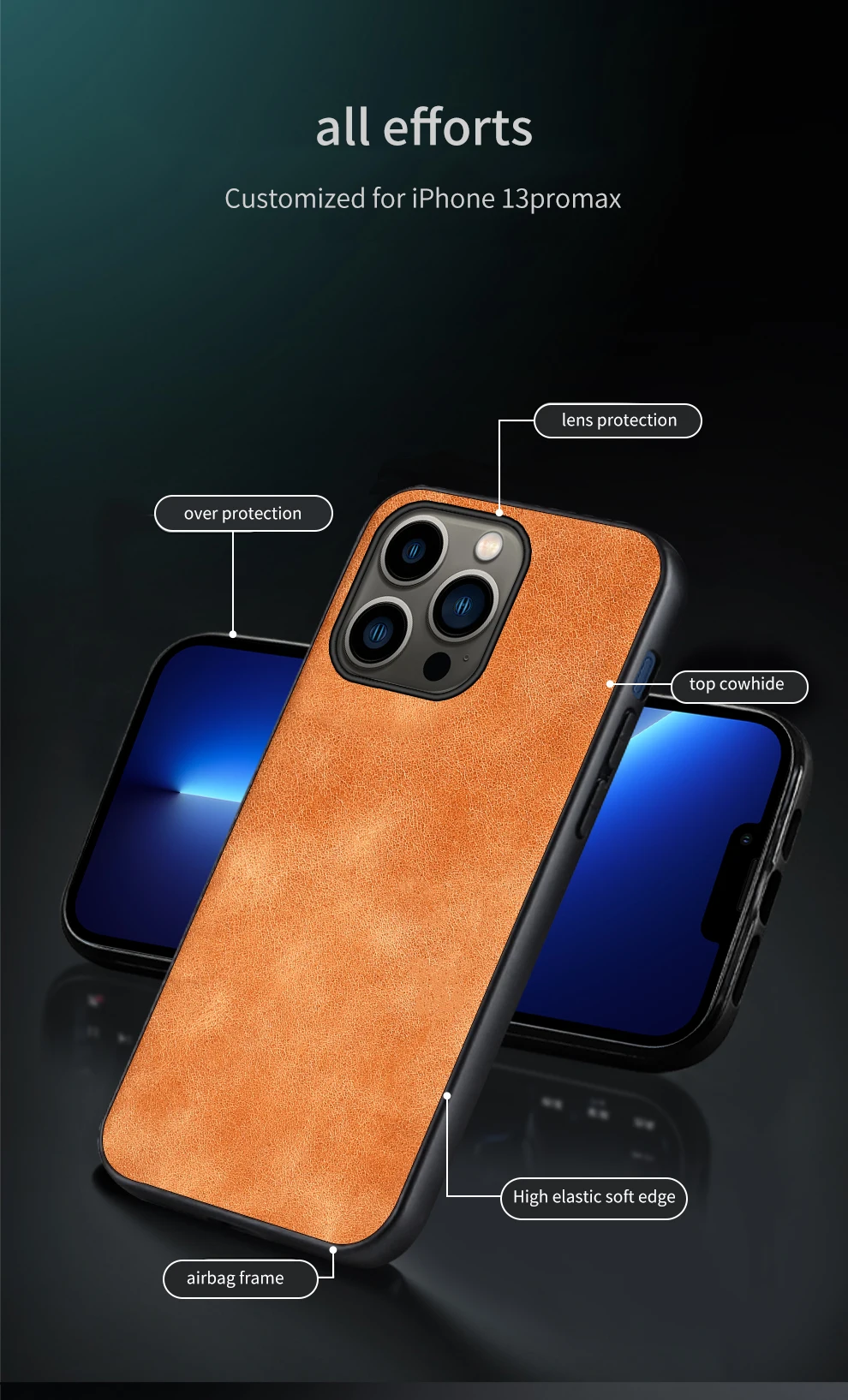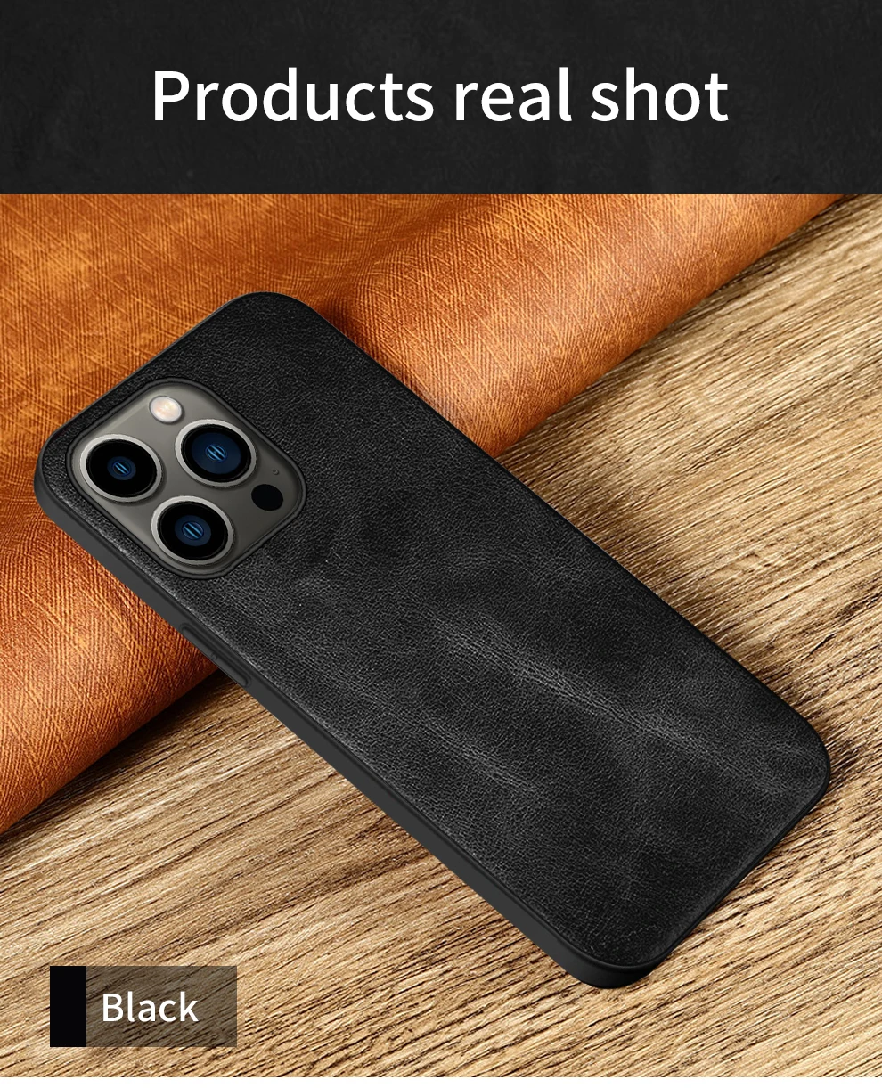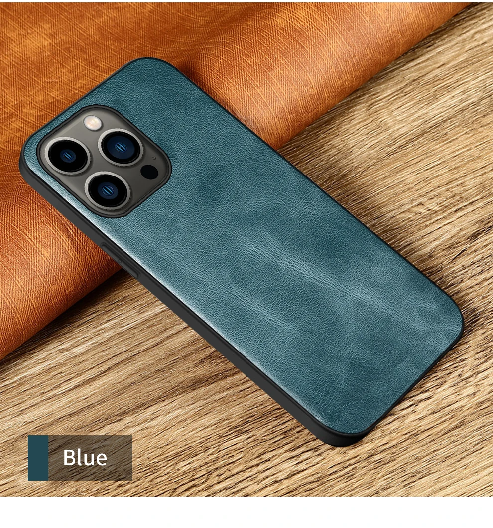 Genuine Oil Wax Leather Phone Case for iPhone 13 12 11 Pro Max Mini