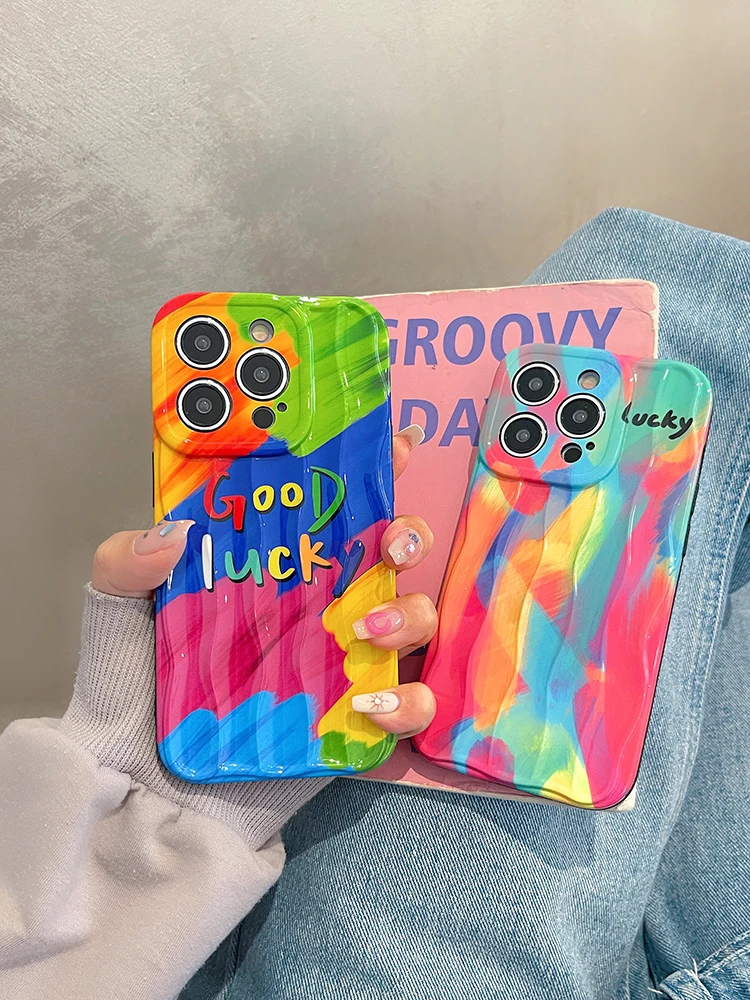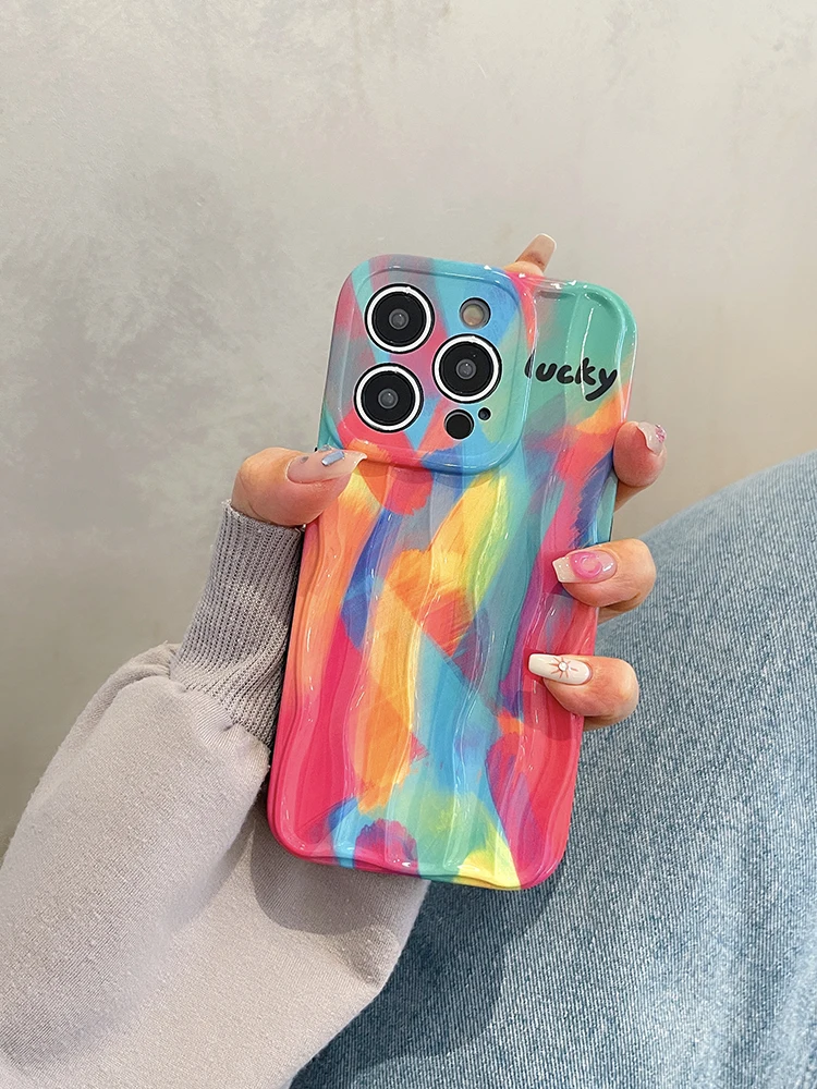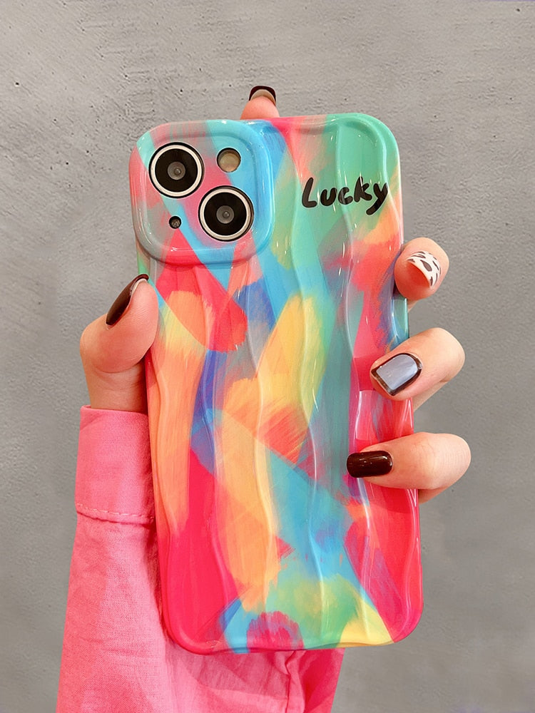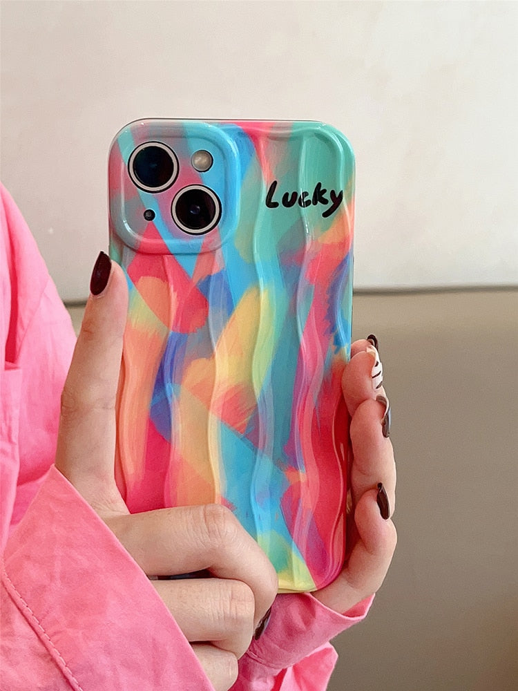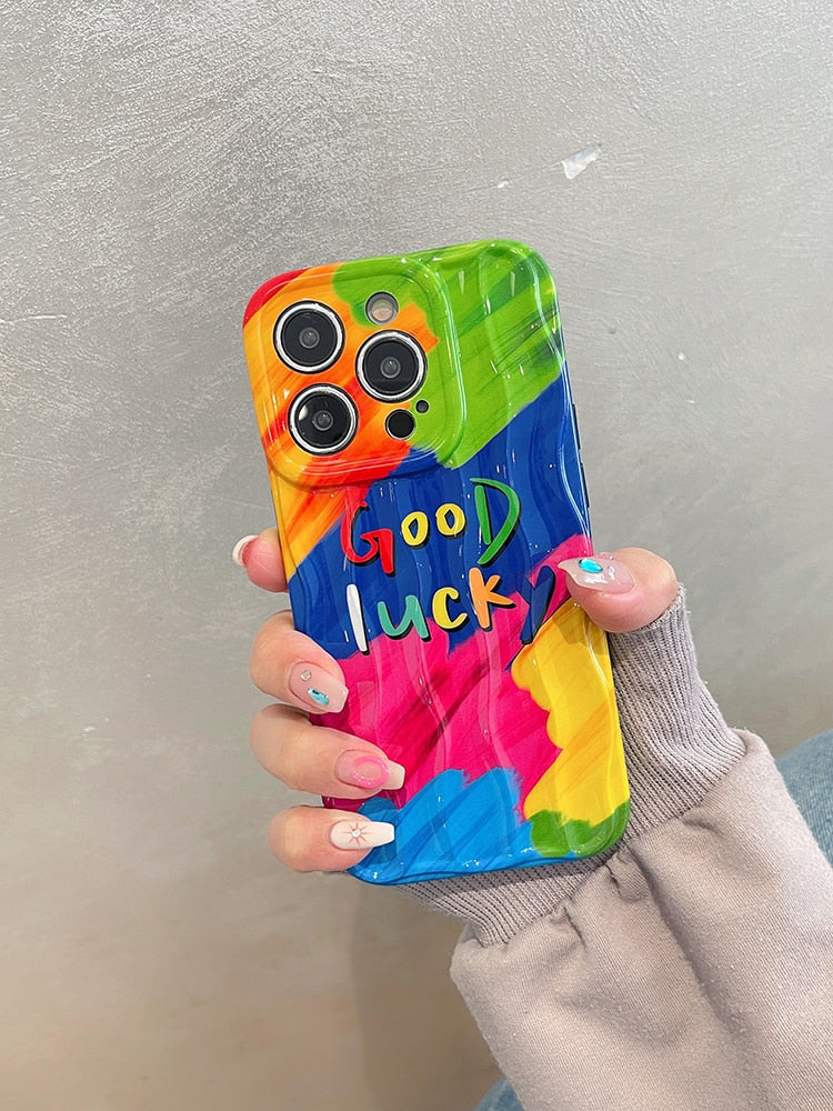 Good Lucky Colorful Rainbow Silicone Case For iPhone 14 13 12 series