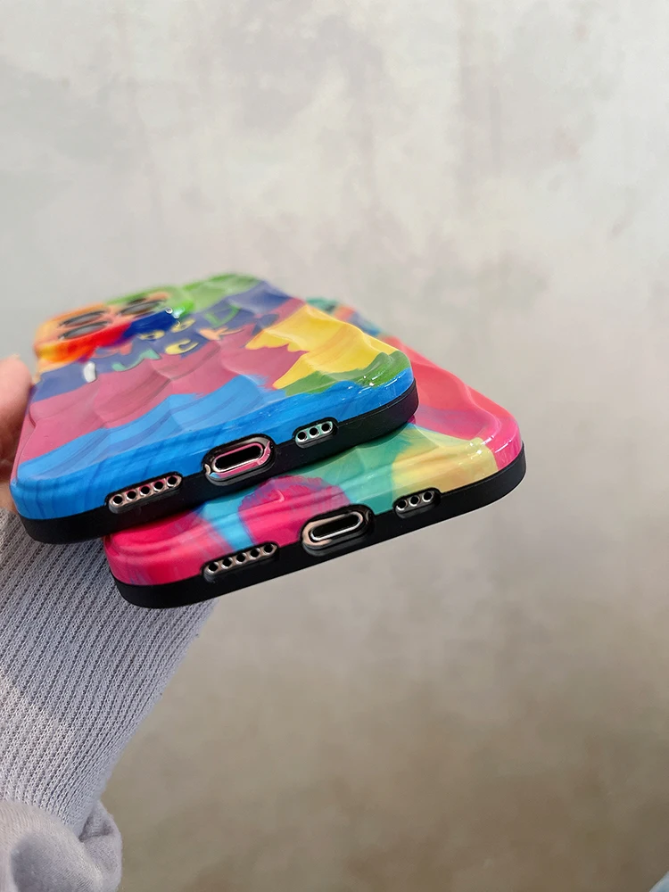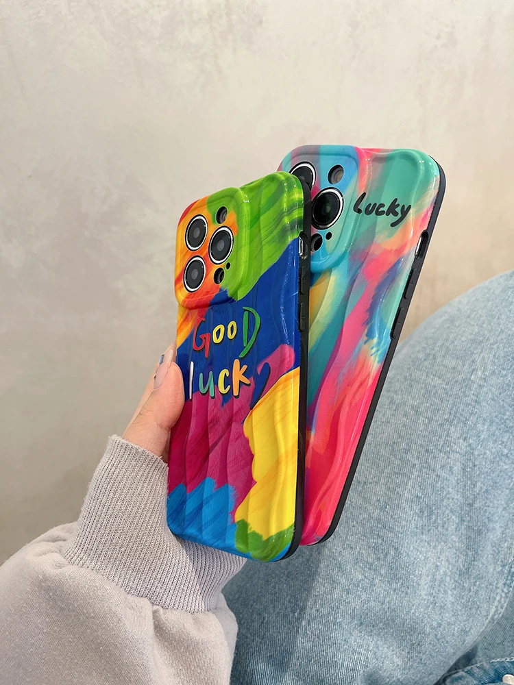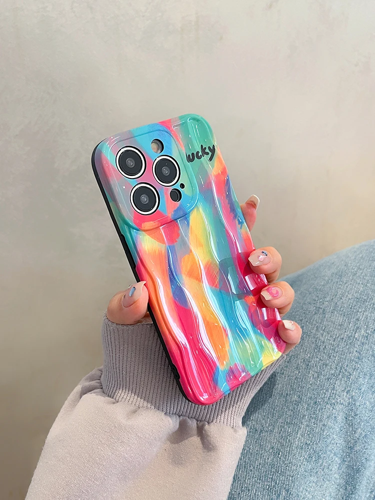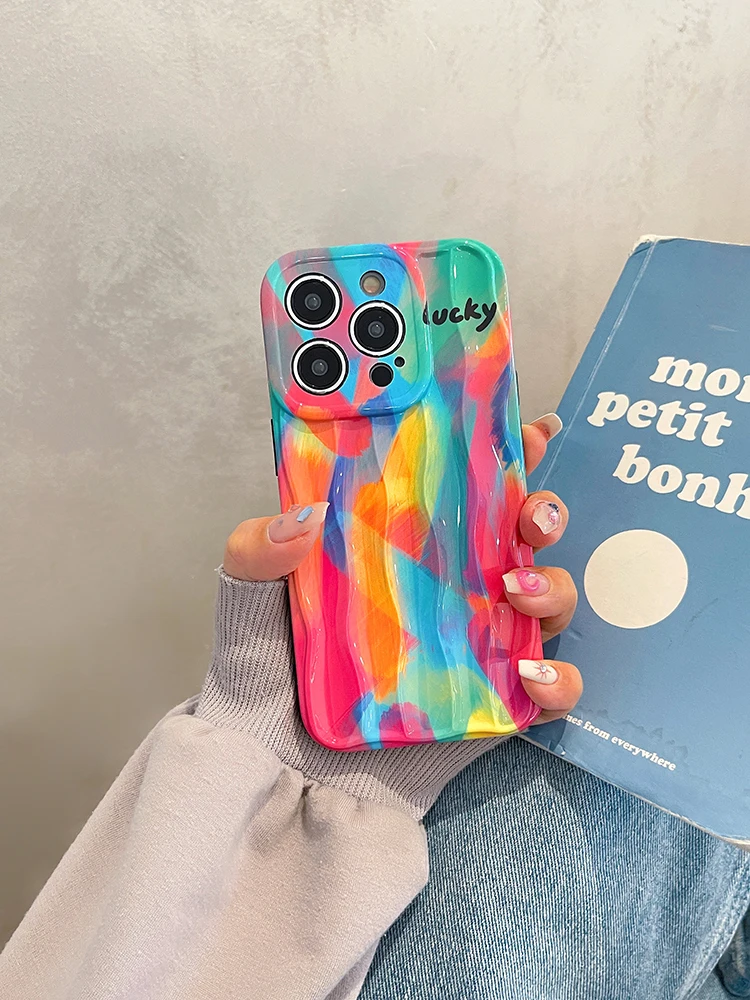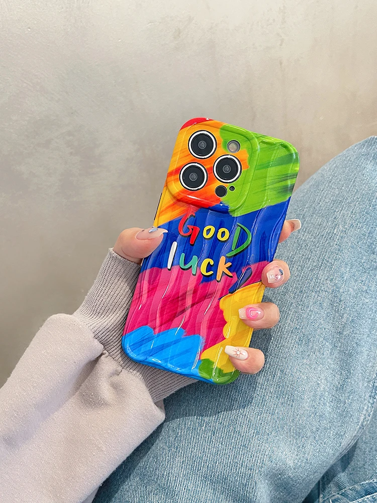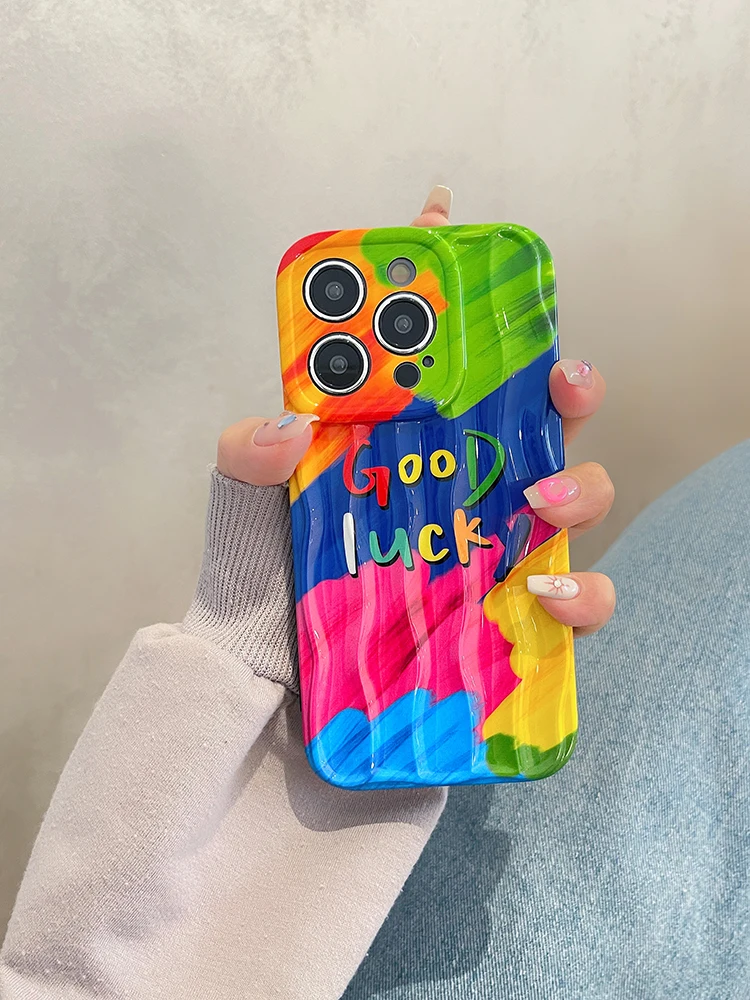 Good Lucky Colorful Rainbow Silicone Case For iPhone 14 13 12 series