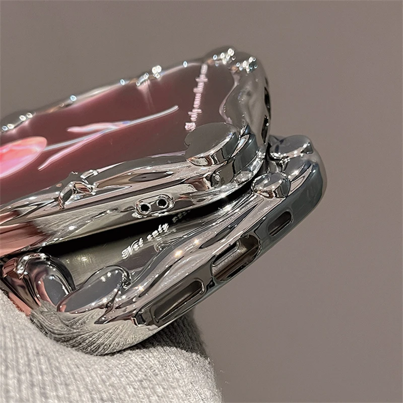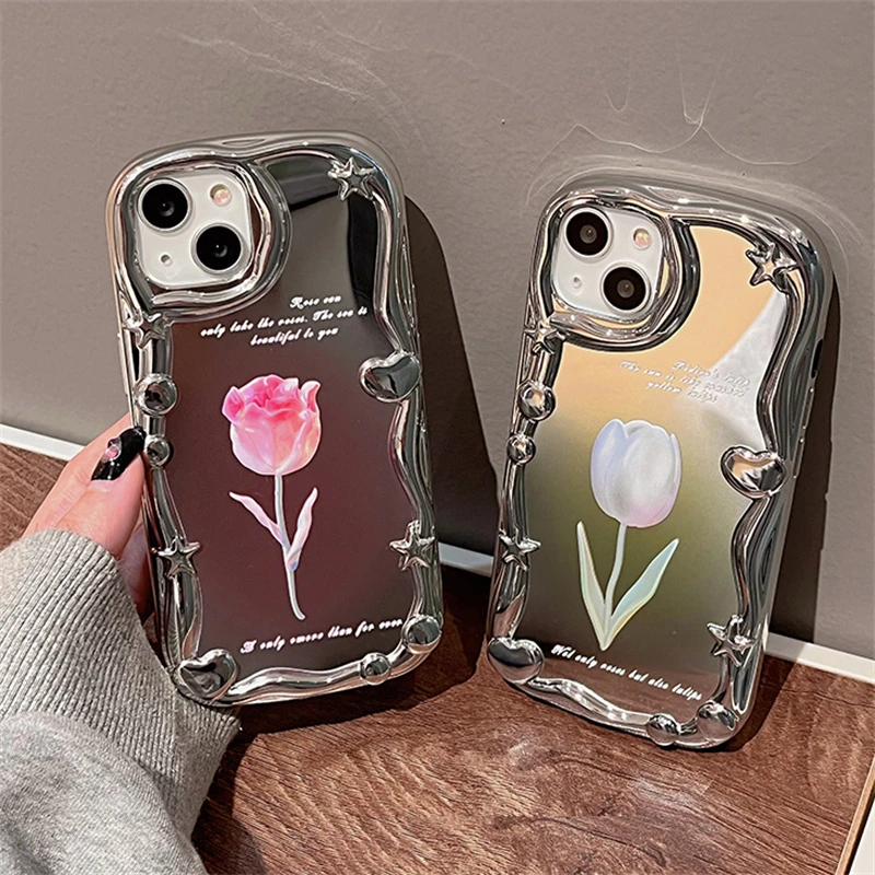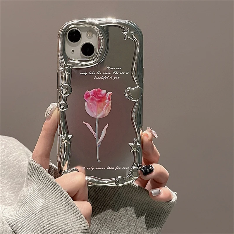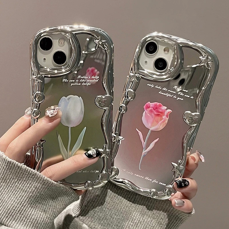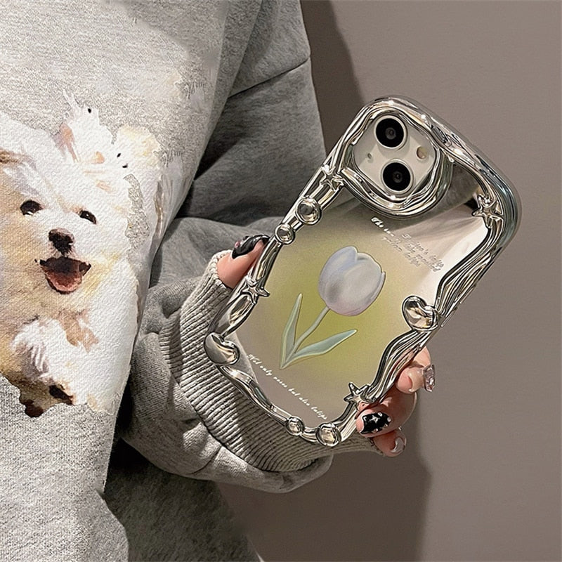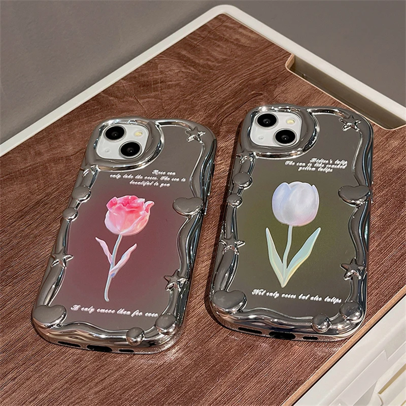 Gradient Rose Tulip Silver Soft Silicone Case For iPhone 14 13 12 series